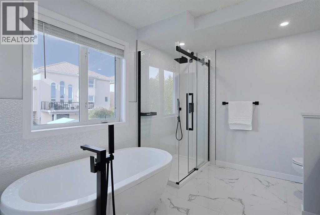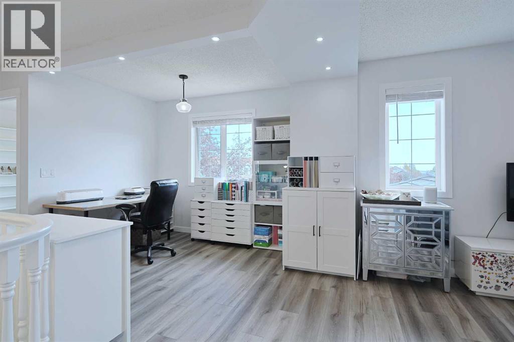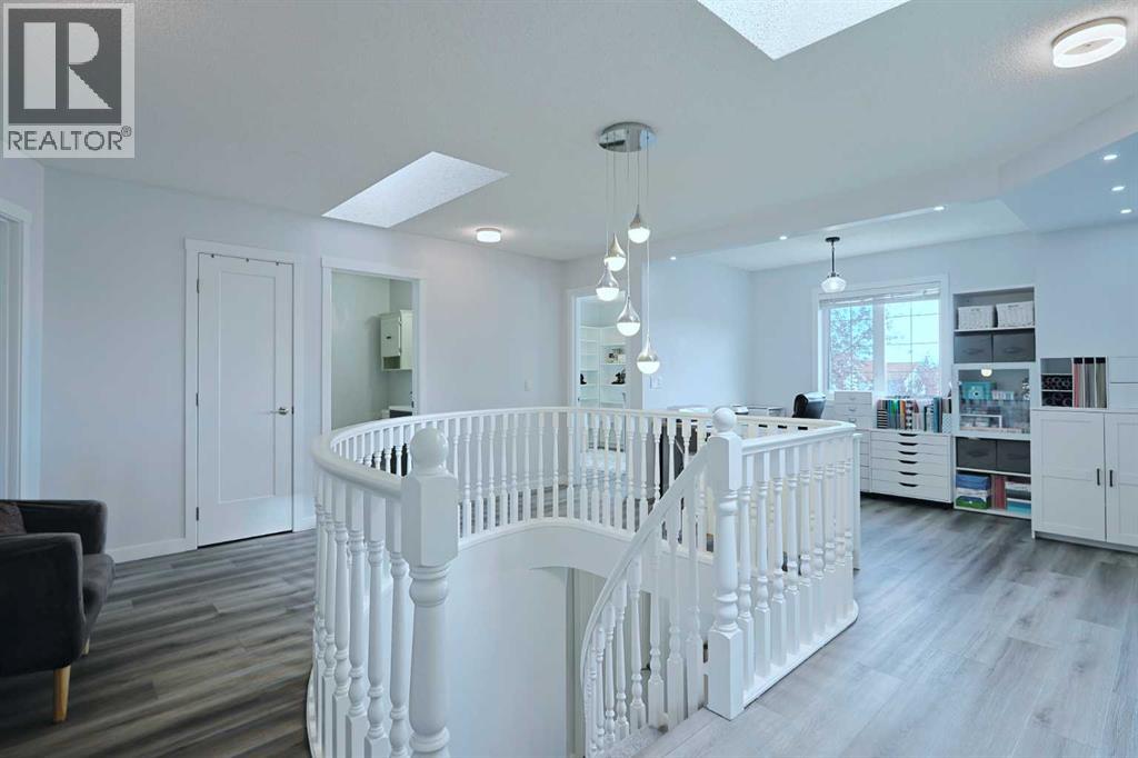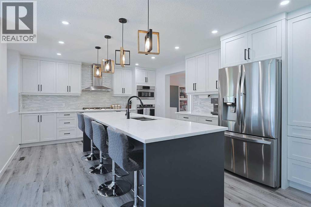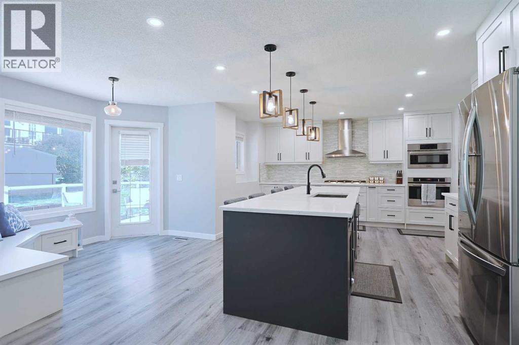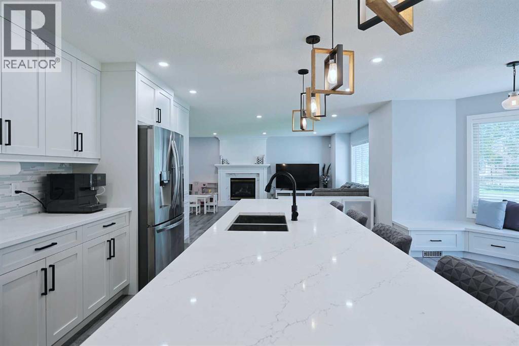 Knocking it out of the park is this beautifully renovated home tucked away in this quiet cul-de-sac in the highly-desirable golf course community of the Hamptons. Built by Sundance Homes, this extensively upgraded two storey enjoys vinyl plank floors & central air, total of 5 bedrooms + den, stunning designer kitchen with granite countertops & some of the improvements include interior paint & lighting, bathrooms, appliances & all polyB piping replaced with PEX. Wonderful family home featuring an expansive living room with gas fireplace & large picture window, separate formal dining room, breakfast nook with built-in seating & dedicated home office. The sleek new kitchen is a sight-to-behold, with its oversized central island & soft-close custom cabinetry, tile backsplash & stainless steel appliances including Fulgor Milano convection oven, Dacor gas cooktop & Bosch dishwasher. Upstairs on the 2nd floor are 3 terrific bedrooms & 2 full bathrooms, highlighted by the owners’ retreat with walk-in closet – complete with built-in organizers, & gorgeous ensuite with heated floors & free-standing soaker tub, granite-topped double vanities & oversized shower. Between the bedrooms is the open concept landing with 2 skylights & multi-purpose loft area…ideal as a lounge/sitting room, play area for the kids or study. The lower level – with high ceilings, is finished with 2 bedrooms, large rec room, storage room & renovated bathroom. Main floor laundry/mudroom with LG washer & dryer, built-in lockers, sink & granite countertops. Completed in the fall of 2021, among the extensive renovations: granite counters, kitchen & laundry room (including the appliances), interior paint & lighting, baseboards & interior doors, PEX piping, all the bathrooms & vinyl plank floors on the main & 2nd floors. Almost 8,000sqft pie lot…fully fenced & landscaped, complete with underground sprinklers, storage shed & deck with natural gas line for your BBQ. Truly incredible home here in this prime locati on within walking distance to the Hamptons School & bus stops, just minutes to the golf course & all neighbourhood amenities, shopping at the Hamptons Co-op & Edgemont Superstore plus quick easy access to schools & parks, major retail centers & hospitals, University of Calgary & downtown. (id:53676)