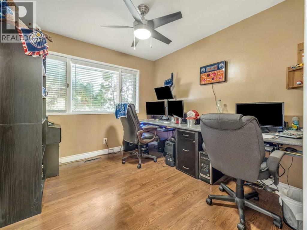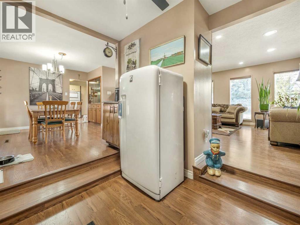 This beautifully maintained home in a sought-after South Lethbridge neighborhood offers five spacious bedrooms and two bathrooms, perfectly suited for families or anyone looking for space and style. Enjoy comfort and convenience with included appliances such as two fridges, stove, dishwasher, microwave, washer, dryer, and central air conditioning. The formal living room creates a welcoming focal point, complete with a cozy wood-burning fireplace that adds warmth and character, while the backyard fire pit sets the scene for relaxed evening gatherings. Recent upgrades shine throughout the property, including hot water on demand, underground sprinklers, fresh exterior paint, upgraded eaves troughs, and new shingles installed two years ago with a approximate 30-year lifespan. The garage door opener—with two remotes—was replaced two years ago for added peace of mind. With additional features included like window coverings, blinds, multiple ceiling fans, dual furnaces, water softener and a solar energy system for significant energy savings, this move-in ready gem blends practicality with polish in a welcoming community near parks, schools, and amenities (id:53676)