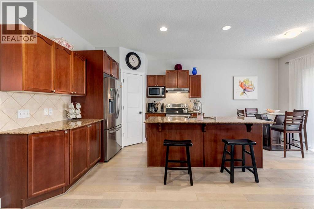 Immaculate Upgraded Home in the Prestigious Community of Cougar Ridge. Welcome to this turn-key, meticulously maintained 2-storey family home nestled in the highly sought-after community of Cougar Ridge. Exuding elegance and comfort, this 3-bedroom, 2.5-bathroom residence is the epitome of modern family living—boasting exceptional upgrades and an unbeatable location just steps from WinSport/C.O.P, scenic trails, parks, and top-rated schools. As you step inside, you’re greeted by a bright and airy open-concept layout, enhanced by soaring 9ft ceilings and stunning white oak engineered hardwood flooring that flows seamlessly throughout the main level. The upgraded knock-down textured ceiling, along with all new baseboards, casing, and carpeting throughout, further elevate the home’s refined aesthetic. Perfect for entertaining, the formal dining room is conveniently located at the front of the home, while the heart of the home lies in the spacious living room featuring a dramatic floor-to-ceiling brick fireplace. The gourmet kitchen is a chef’s dream, complete with stainless steel appliance package, upgraded granite countertops, and a generous nook that leads to your private outdoor oasis. Enjoy summer evenings on the expansive, upgraded deck—ideal for relaxing or hosting guests. Thoughtfully designed, the main floor also includes a stylish half-bathroom and a functional mudroom with direct access to the front-attached garage. Upstairs, a cozy bonus room—currently used as a fourth bedroom—adds valuable flexible space for your family’s needs. The luxurious primary retreat offers a spacious walk-in closet and a private ensuite with a walk-in shower. Two additional generously sized bedrooms and a well-appointed 3-piece bathroom complete the upper level. The basement remains undeveloped, providing endless possibilities for customization to suit your lifestyle. With recent roof shingles replaced and an array of thoughtful upgrades throughout, this exceptional home is move-in ready. (id:53676)