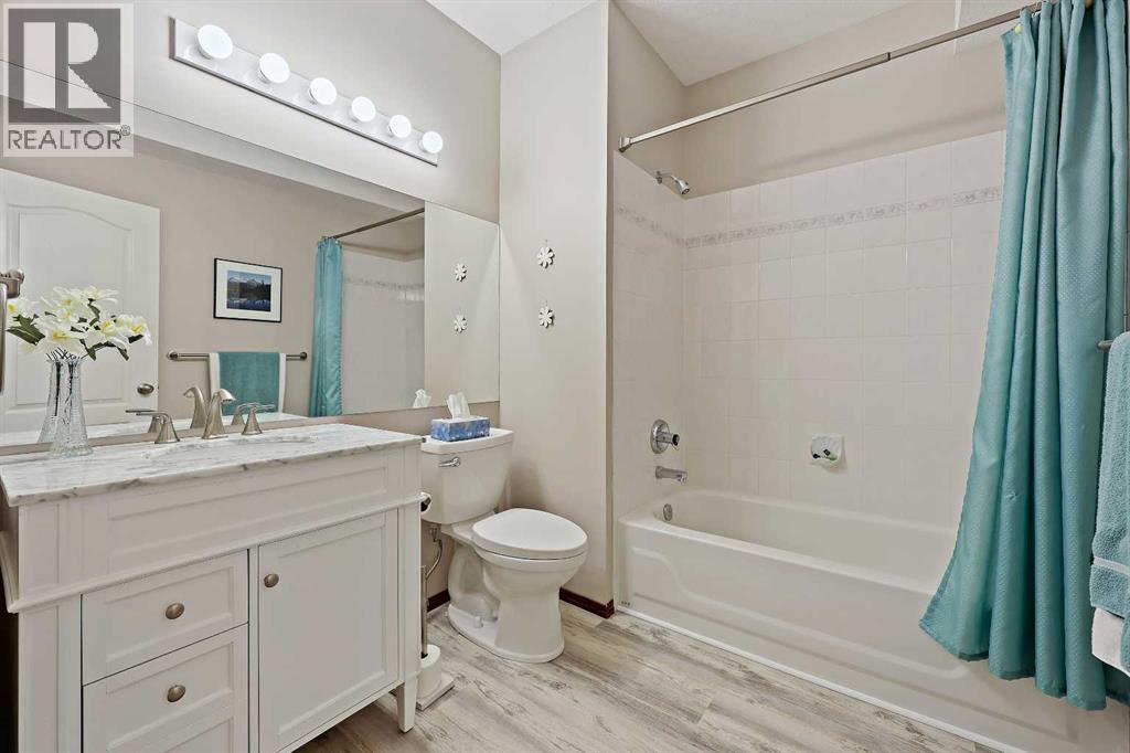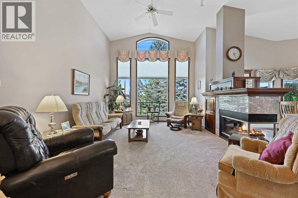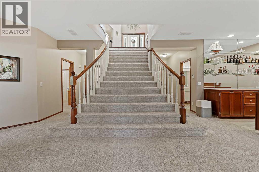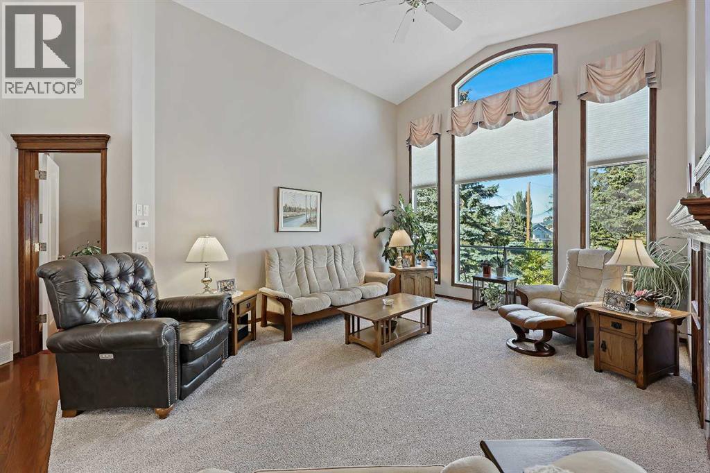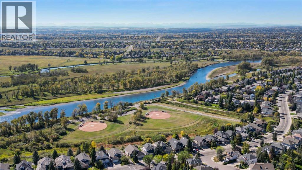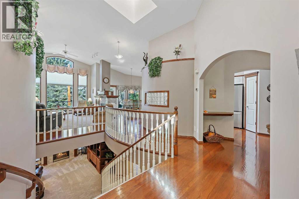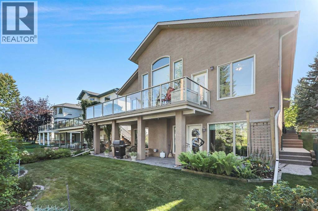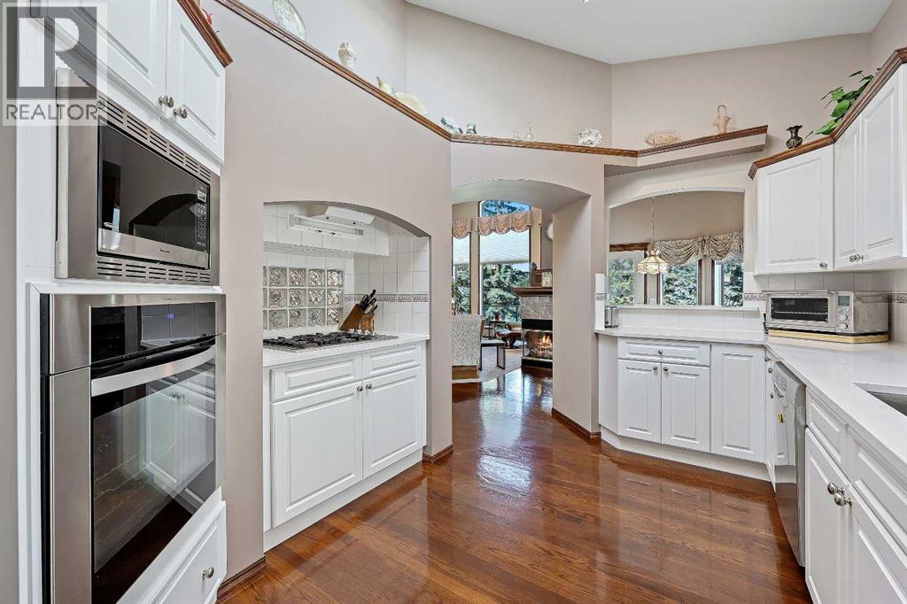 BEAUTIFULLY CURATED | AIR-CONDITIONED BUNGALOW | GOLF COURSE LOCATION | WALKOUT LOWER LEVEL | 3347+ SQ. FT. OF LUXURY LIVINGImmaculately maintained and thoughtfully designed, this custom-built Shane Home is one of the most desirable golf course bungalows in the highly sought-after community of Douglasdale. Perfectly situated on picturesque Douglasview Road—where pride of ownership shines—this fully finished home offers over 3347+ sq. ft. of refined living space.Step inside and be impressed by 14’ ceilings, vaulted family room ceilings, oversized windows, and raised skylight bays that flood the home with natural light. The heart of the home is the chef’s kitchen, featuring timeless raised-panel white cabinetry, white quartz counters, a gas cooktop, built-in wall oven, pantry, overhead skylight bay, and sleek stainless steel appliances. The kitchen flows into the dining room and breakfast nook, opening to the grand family room with soaring ceilings, a three-way fireplace, and expansive views of the private backyard. Gleaming hardwood floors and a flared staircase add a sense of elegance and warmth throughout.The spacious primary suite offers vaulted ceilings, a walk-in closet, and a spa-inspired ensuite with a jetted tub and dual vanities. The fully developed walkout lower level features in-floor heating, two additional bedrooms, a recreation room with wet bar, a dedicated office, a full bath, and an oversized utility/storage room—perfect for family living and entertaining.Step outside to your very own private oasis with an upper BBQ deck, lower concrete patio, large grassy area, and mature landscaping with trees offering beauty and privacy. The north-facing backyard is designed for relaxation and entertaining.Additional highlights include:• Central A/C for year-round comfort• Stone and stucco exterior with elegant curb appeal• Covered front porch for morning coffee moments• Resort-style outdoor living spacesThis is a rare offering in an outstanding go lf course community—luxury, lifestyle, and location all in one.Check & compare—this one is a must-see! Call your friendly REALTOR® today to book a private viewing. (id:53676)