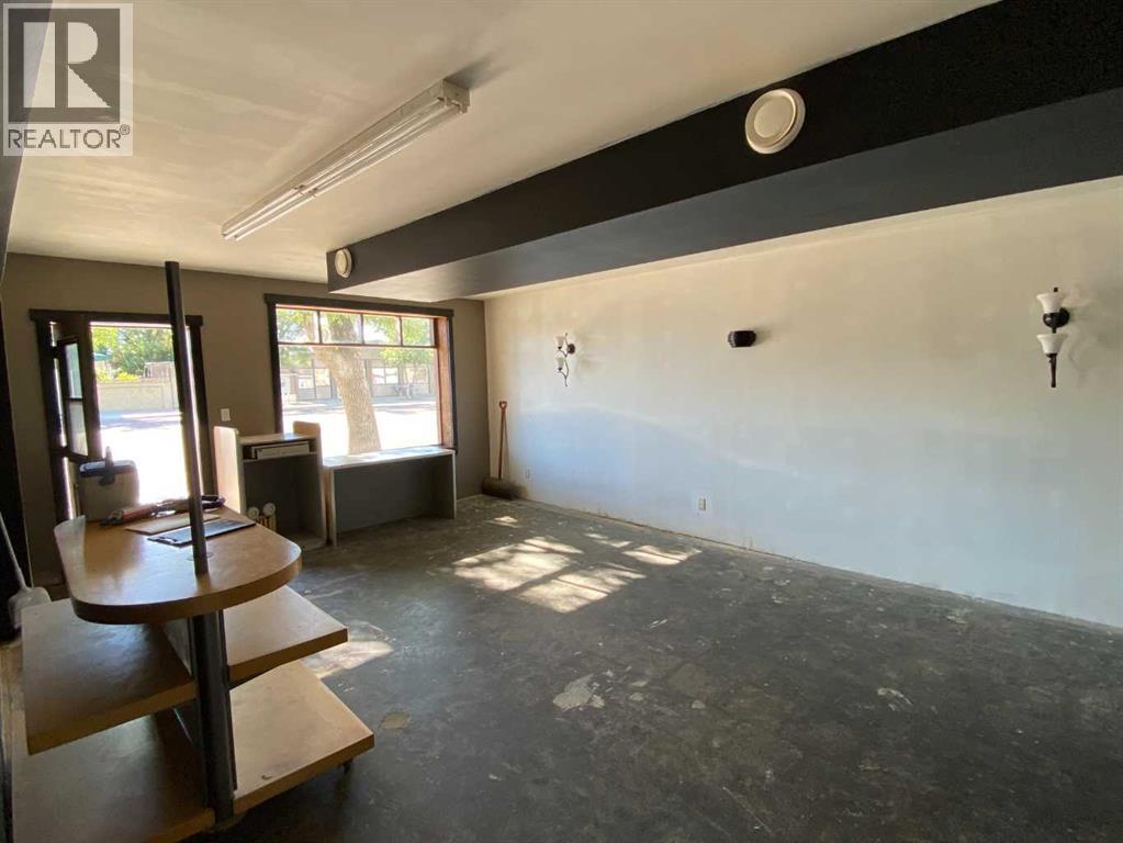 Great Building in the heart of Tilly AB. Located only 22km east of Brooks, this hamlet is a great community! The single story building is 3340 sqft . The commercial space is approx 1300 sqt, and has 2 separate areas with frontage and separate street entrances. A public washroom, with wheel chair accessibility. There a office space, a space previously used as a salon, and a work storage area. The residential has 2080 sqft, with 4 bedrooms, a 3 piece main bathroom. Primary has a walk in closet, and 4 piece ensuite. The property also has a basement with an additional 2240 sqft. The backyard features a 12x24 storage garage. (id:53676)
