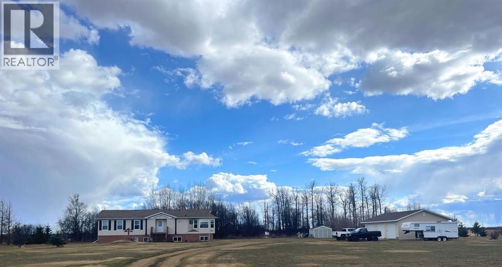 A charming 2008 - 1760 sq ft bungalow sits on a 6-acre lot with views of the South Heart River, offering the perfect blend of rural tranquillity and modern comfort. The home features three bedrooms and two bathrooms, which includes a light-filled ensuite with a luxurious four-piece bathroom complete with a stand-up shower and a deep soaker tub—ideal for unwinding after a long day. The open-concept kitchen and dining area are bathed in soft natural light from northeast-facing windows, eliminating harsh glare while creating a warm and inviting atmosphere. Convenient main-floor laundry makes everyday living effortless. Downstairs, the full basement is already wired and framed for future expansion, offering the potential for two additional bedrooms, a bathroom, and a family room—perfect for growing families or hosting guests. Outside, the property includes a detached three-car garage with a cement apron, a sturdy dog house, and a large dog run for pet owners. With central air conditioning ensuring year-round comfort and a peaceful location just 10 km from High Prairie, this home is a rare find for those seeking space, serenity, and endless possibilities. (id:53676)
