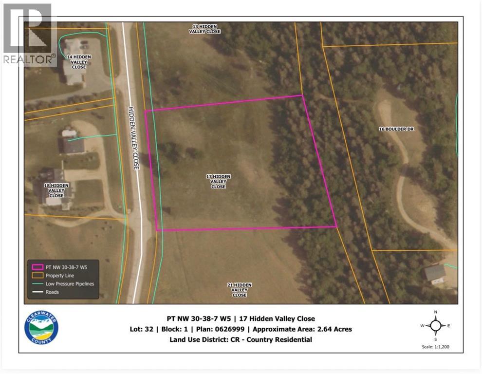 Welcome to 17 Hidden Valley Close, a beautiful bare parcel located in the sought-after Cougar Ridge Estates, less than 15 minutes southwest of Rocky Mountain House. This executive rural residential subdivision features paved road access right to the driveway, offering year-round convenience and a refined, upscale setting.Ideally situated just off Highway 752, the property provides an easy commute into town while placing you minutes from Cow Lake and the endless recreation opportunities of the West Country. Whether you’re envisioning a custom country home or a peaceful retreat, this location offers the perfect blend of privacy, scenery, and accessibility.Services including power and natural gas are available at the property line, helping to simplify the building process. Enjoy the freedom to design your ideal home in a quiet, well-planned subdivision surrounded by nature, yet still close to town amenities.An excellent opportunity to build in one of the area’s most desirable rural communities. (id:53676)