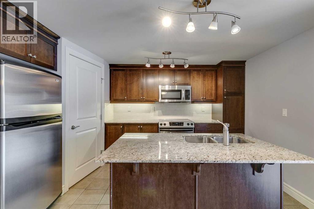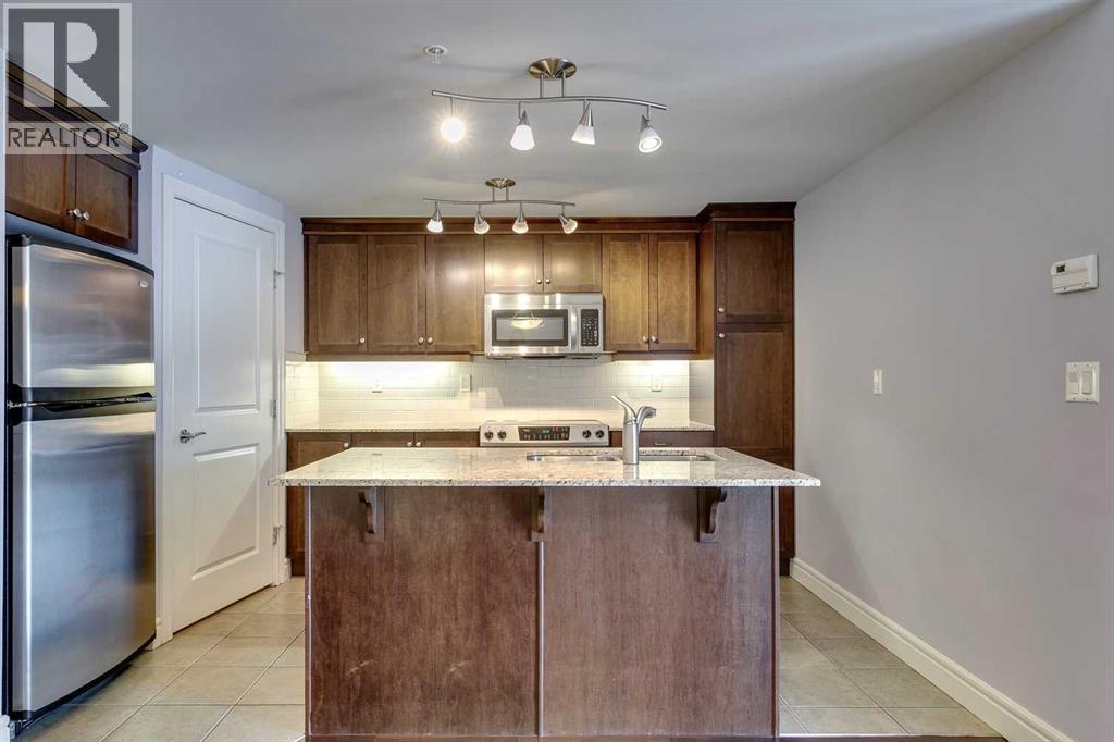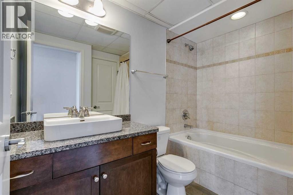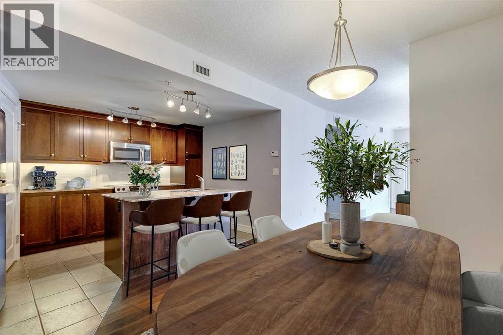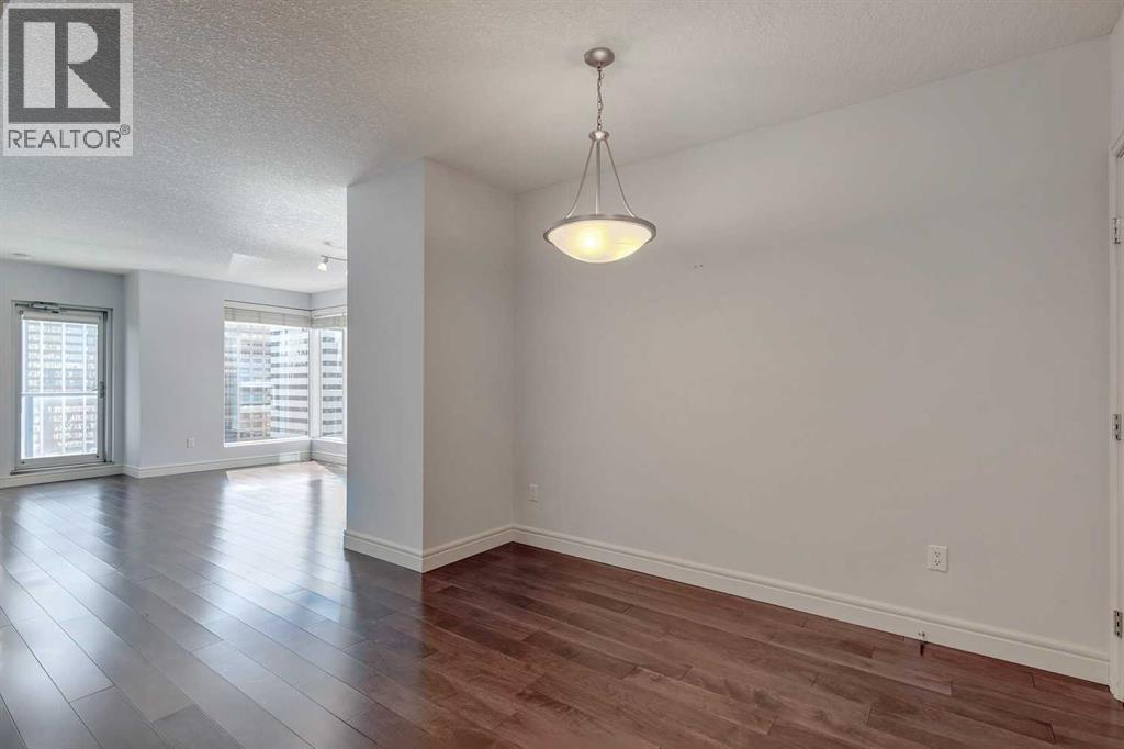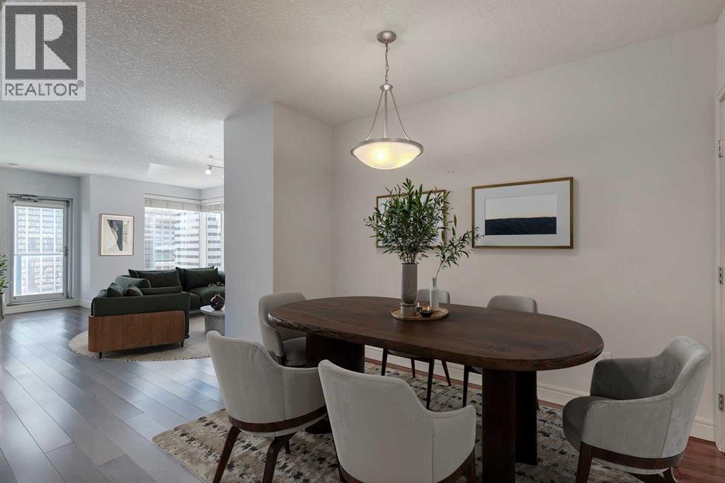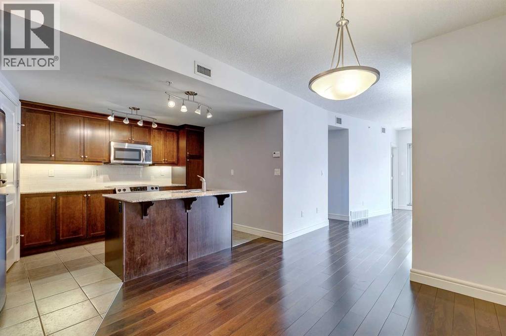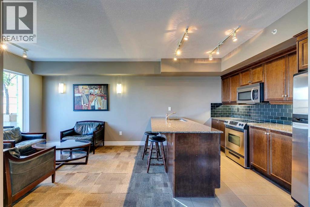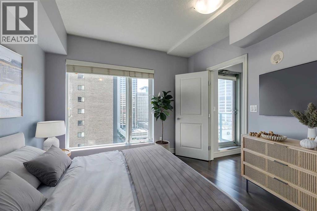 Experience luxury living in the sought after Five West II Tower. Nestled in an unbeatable location in the heart of downtown, this executive 1 bedroom / 1 bathroom condo offers a convenient lifestyle for those wanting to enjoy everything inner city living has to offer. As you step inside, you’ll be captivated by an abundance of natural light, gleaming hardwood floors and a modern open concept floorplan. The elegant kitchen overlooks a spacious dining area (or flex space) and boasts a large island with breakfast bar, stainless steel appliances, granite countertops, and an abundance of storage including a built in pantry. As you enter the living room you can't help but notice the floor to ceiling windows with expansive views of downtown, and a cozy gas fireplace….the perfect place to relax after a long day. The primary bedroom offers plenty of space for a kingsize bed, double closets, and private access to the 4pc bathroom. This unit is fully equipped with insuite laundry, 1 titled underground parking stall and an assigned storage locker. Indulge in the best that Calgary has to offer just steps away, from restaurants, shopping, entertainment districts, Prince’s Island Park, the Bow River Pathway, and beyond. Close to all amenities and easy access to the LRT, bike paths, and more. Five West II is a highly sought after residential complex, offering concierge service, secured underground parking, visitor parking, a complimentary car wash, bicycle storage, residents’ lounge with games area, and a state-of-the-art residents terrace. Don’t miss the opportunity to call this beautiful property home!Please note – some photo’s have been virtually staged. (id:53676)