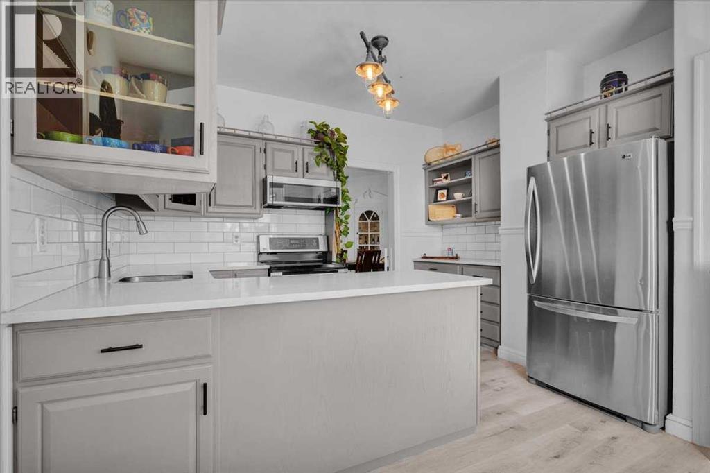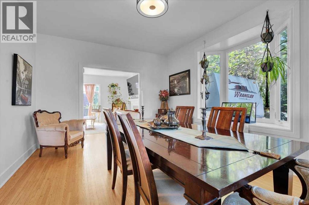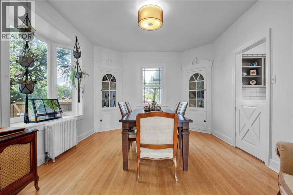 Once upon a time in 1940 this property was an Estate Ranch Home. City of Edmonton has grown around this charming character home! 4-LARGE BDRMS | 2-FULL BATH | ORIG. HARDWOOD FLOORS | 10ft CEILINGS | TRIPLE-PANE WINDOWS |SPACIOUS DINING ROOM & VINTAGE BUILT-IN CABINETRY | DUTCH & FRENCH DOORS | HEATED DOUBLE GARAGE |PIE-LOT. With over 1800 + sq ft. this home over the years has been loved and very well-maintained. The entrance has vinyl flooring extending into the basement. Hardwood flooring on main and upper level as well as the staircase. Beautiful cabinetry in the kitchen, quartz countertops and stainless-steel appliances. Dutch doors to and from the kitchen. A spacious dining room for hosting family and friends or your favourite Realtors for all occasions! Relax or entertain in the living room. Large windows with beaming sunlight or cozy up next to the fireplace. The upper-level bathroom has been renovated STUNNING! Large bedrooms with walk-in closets. The Primary room is massive with a walk-in closet and patio doors. This ranch home is very spacious with the large bedrooms unlike most homes build in this era. The lower level has an endless amount of storage. Large laundry room. BRAND NEW BOILER SYSTEM INSTALLED in August 2025 ($20K). Another large bedroom with 3-piece bathroom and a cozy flex or den room. A LARGE HEATED GARAGE with a driveway that can accommodate many visitors. Enjoy a garden Party with this enormous backyard on the deck off to the side or sit under the Pergola. Summer fun or Winter Wonderland! RV Parking, if needed. This pie-shaped offers you loads of space for flower beds or vegetable gardens with a shed for garden tools. It is an incredibly unique home with lots of history and character. The original entrance to the home faces the backyard. Close to all amenities and easy access in and out of the community. YOUR NEW HOME! (id:53676)