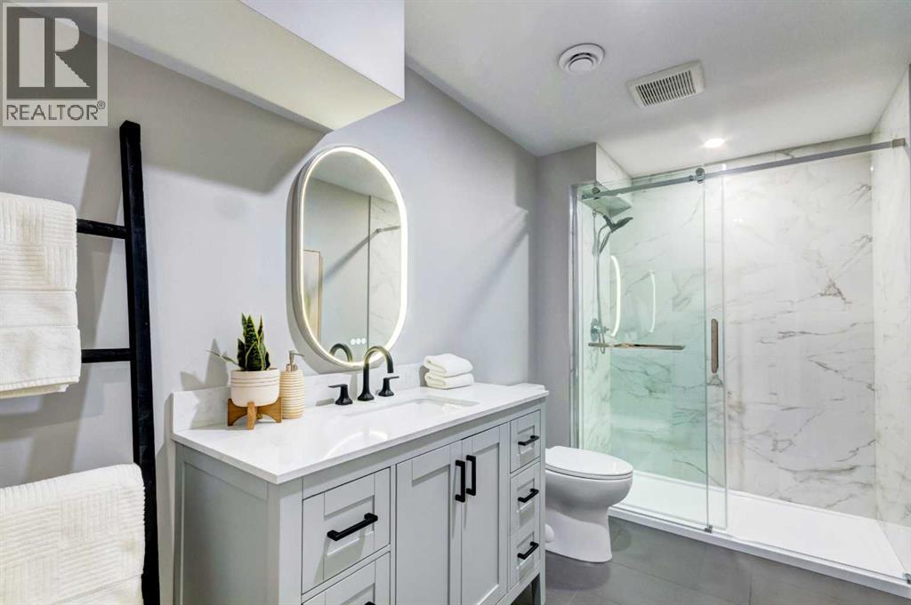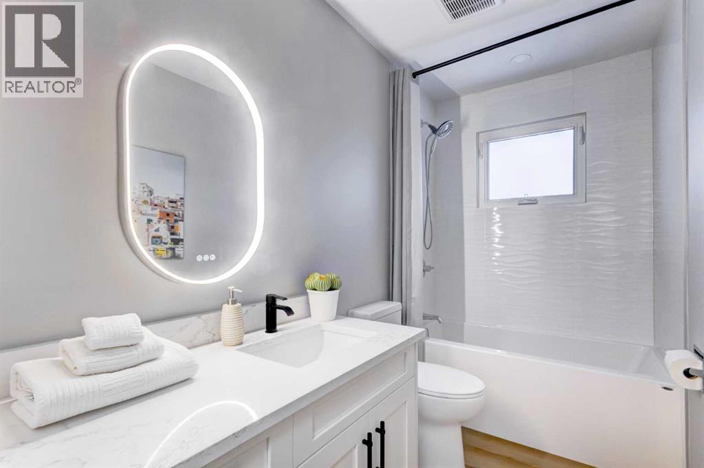 Welcome to this stunning, fully renovated bungalow; every detail has been thoughtfully reimagined for modern living. With designer finishings throughout, including new luxury vinyl plank flooring on the main level and brand-new carpet on the fully finished lower level. Fresh paint, updated trim, and south-facing windows enhance the home’s bright, inviting feel. This stunning designer kitchen is bright, beautifully curated showcasing micro-shaker cabinetry, sleek, expansive quartz countertops, and spacious eat-up centre island with additional storage, the perfect blend of style and function for everyday living or entertaining. Flooded with natural light from the oversized picture window, framing peaceful backyard views and creating an airy, inviting atmosphere. Finished with matte-black hardware, stainless steel appliances, elegant beveled subway tile backsplash, this kitchen offers a sophisticated modern aesthetic with undeniable warmth and luxury. Flows effortlessly into the adjoining living areas, making it ideal for both everyday living and memorable hosting. The front living room and adjoining dining room are filled with natural light and showcase stunning downtown views, creating an elevated and welcoming space to relax or entertain. The main floor offers a generous primary bedroom along with two well-appointed front bedrooms, each designed with comfort and versatility. The fully renovated bathroom impresses with a quartz-countertop vanity, stylish black faucets and hardware, a designer LED backlit mirror, and a tub with upgraded shower fixture set against textured contemporary tile. The fully finished basement provides exceptional additional living space with brand-new windows, a legal spacious 4th bedroom, a versatile flex room ideal for a home gym or office, and a large recreation area perfect for movie nights or a kids' play space. The beautifully redesigned bathroom feels like a boutique hotel spa, showcasing a luxurious walk-in shower with floor-to-ce iling marble-style tile, sleek glass doors, and premium fixtures. The quartz-countertop vanity pairs perfectly with matte-black hardware and a striking LED backlit mirror, creating a sophisticated, modern retreat with effortless style. The impressively clean mechanical room reflects the extensive renovation throughout the home, featuring updated plumbing, electrical, and HVAC systems. The brand-new high-efficiency furnace, 50-gallon hot water tank, and clear utility access, provides peace of mind and long-term reliability. One of the property’s standout features is the private backyard oasis—a generously sized yard with a clean, open layout ideal for families, pets, or anyone wanting room to relax and enjoy the outdoors. Enjoy peace of mind with a comprehensive renovation from top to bottom. This exceptional bungalow is truly move-in ready, offering modern luxury, thoughtful upgrades, and a serene outdoor setting. Don’t miss your opportunity to make this beautiful home your own. (id:53676)