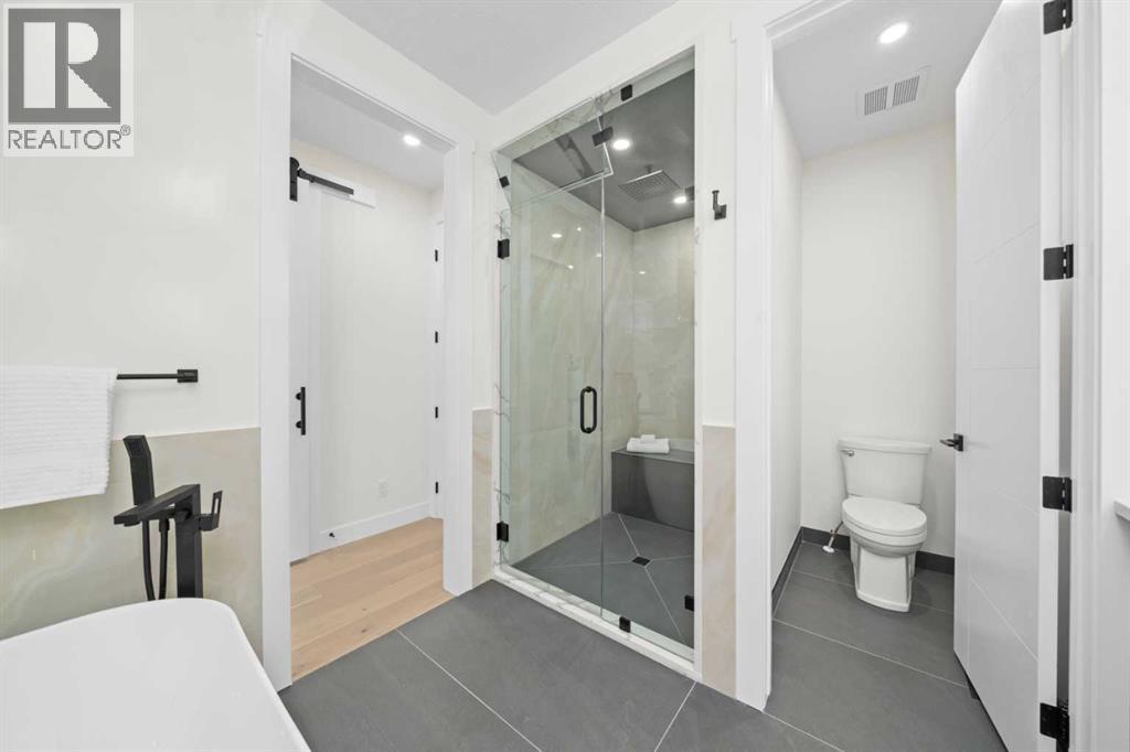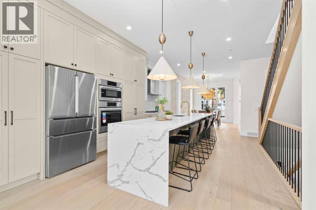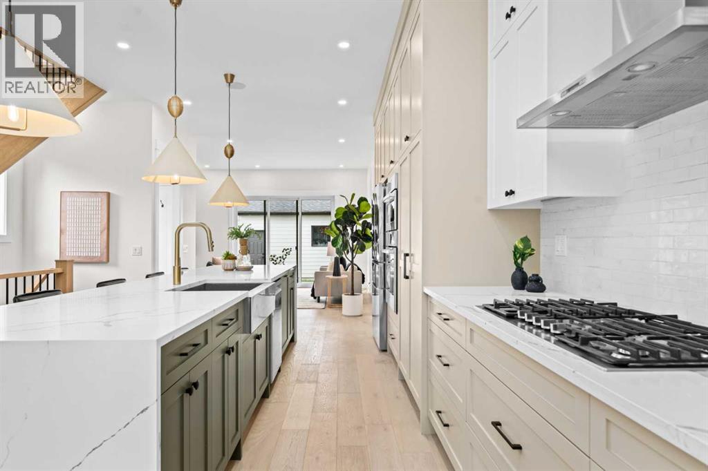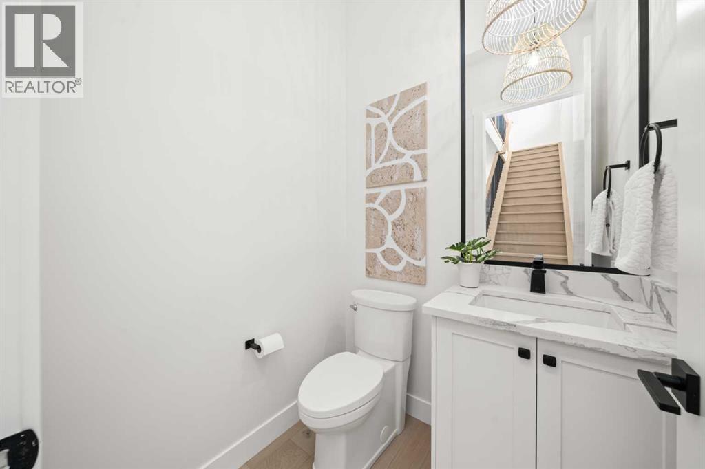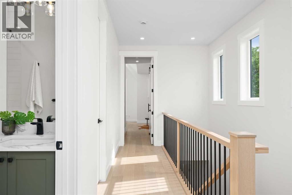 ** OPEN HOUSE: Saturday, October 18th 11-pm ** Experience elevated inner-city living in this stunning brand-new infill, located in the vibrant community of Capitol Hill and over 2600 sq ft of developed living space. Just steps from 16th Ave, you're minutes from downtown, Confederation Park, schools, restaurants, and everyday amenities—offering the perfect blend of lifestyle and convenience.From the moment you arrive, the home’s striking curb appeal and modern exterior make a bold impression. Inside, a bright and airy layout welcomes you with stylish finishes and thoughtful design throughout. The front dining area flows seamlessly into a chef-inspired kitchen featuring a waterfall-style island, custom cabinetry, sleek hardware, and brand-new appliances. The cozy living room is anchored by a gas fireplace, while oversized sliding doors lead to a private composite deck and landscaped backyard—perfect for summer entertaining.Upstairs, enjoy a spacious laundry room, two generous bedrooms, and a luxurious primary retreat complete with a built-in walk-in closet and a spa-like 6-piece ensuite with heated floors. Indulge in the double vanity, elegant soaker tub, glass shower with steam rough-in, and refined finishes that create a peaceful sanctuary.The fully finished basement offers even more versatility with a large rec area, full bathroom, and an additional bedroom—ideal for guests, a home gym, or office. Upgrades are truly endless in this home: composite decking, durable Hardie board siding, concrete aggregate walkways, upgraded metal-clad windows, and premium finishes throughout—all combining quality craftsmanship with modern functionality. Roughed-in with in floor heat, central vac, and AC.Timeless in design and unmatched in location, this Capitol Hill gem is ready to welcome you home. (id:53676)
