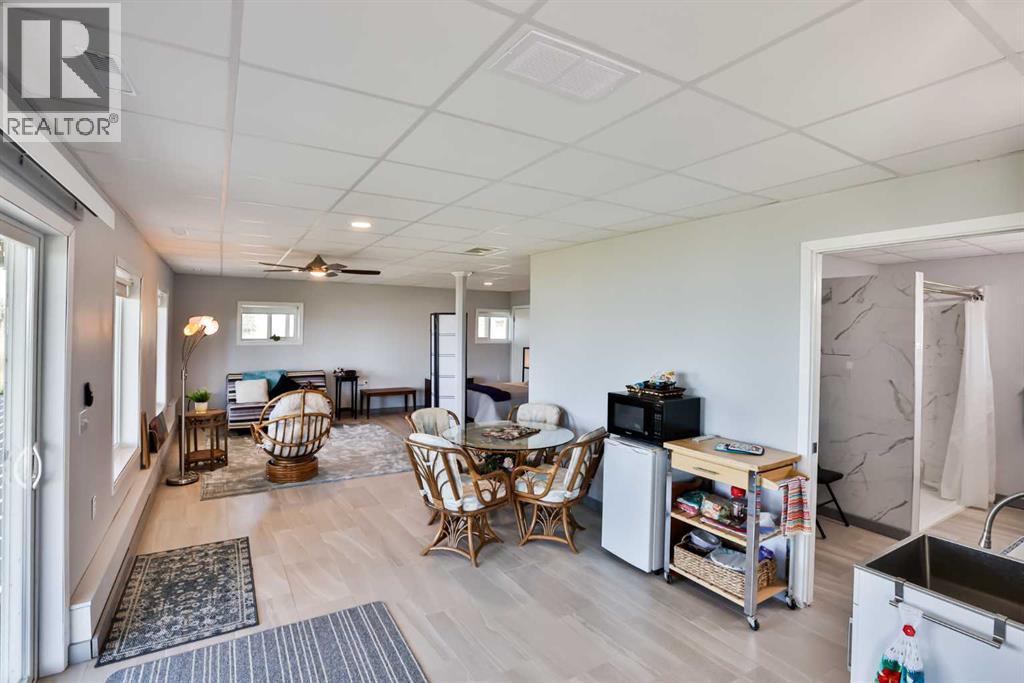 *Welcome to Your Ideal Recreational Getaway on Lake McGregor**Discover the perfect recreational property just over an hour from Calgary at Sunset Marks on Lake McGregor. This stunning lakefront home provides an exceptional setting to entertain friends and enjoy various activities both on and off the water. Whether you prefer paddleboarding, kayaking, kiteboarding, motorboating, or even ice fishing in the winter, this location has it all.Set on just under 7 acres, the charming 1956 home boasts 960 square feet of living space, which was thoughtfully brought in and placed on a new concrete walkout foundation in 2004. The property features 3 comfortable bedrooms, 2.5 bathrooms, and a fully developed basement with an abundance of windows, allowing natural light to flood the space.The main floor showcases huge windows that offer breathtaking views of the lake, complemented by a fully wraparound deck —perfect for enjoying those beautiful summer evenings. The home is equipped with two potable water tanks, each holding 1,250 gallons. Recent upgrades include a new air conditioning system installed in 2023, and the kitchen was modernized in 2009. The furnace and hot water tank were also replaced when the house was placed on its foundation in 2004.Additional features of this property include in-floor heating in the basement, a spacious 34 x 52 workshop with RV parking and propane heat, and 2 X 12' x 14' doors for easy access. A rainwater collection system is in place, providing 1,250 gallons of stored rainwater for watering the lawn.An additional outbuilding with its own electricity, shower, and toilet is conveniently hooked up to the septic system, enhancing the property's functionality. The home runs on propane, with two tanks located on the property.For water enthusiasts, there's a boat launch just down the road. The roof and siding were replaced in 2009, ensuring a well-maintained exterior. The closest town is Milo, which offers various amenities for your conven ience.Don't miss out on this unique opportunity to own a piece of paradise that combines relaxation, recreation, and the beauty of lakefront living. (id:53676)