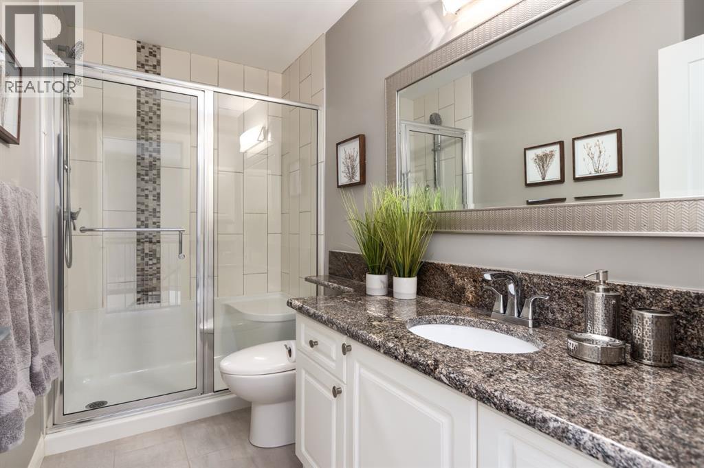 OPEN HOUSE CANCELLED! Lovingly cared for by the same owner for the past 27 years, the home reflects a true pride of ownership, evident in its exceptional upkeep and thoughtful attention to detail throughout. Perfectly positioned on a quiet street just one block from the 48-kilometre Bow River pathway system, this beautifully maintained residence offers an exceptional blend of serenity, natural light, and thoughtful design. A bright south-facing backyard captures sun throughout the day, creating an inviting outdoor retreat framed by mature landscaping, a professionally finished patio, and a low-maintenance composite deck with modern railings completed in 2021. The exterior has been meticulously cared for over the years, including routine fence upkeep and a treated shake roof professionally serviced on a consistent three-year schedule.Upon entry, you are welcomed by a striking custom staircase set beneath dramatic open foyer, softened by plush carpeting and an immediate sense of warmth and scale. The main floor unfolds gracefully with gorgeous hardwood floors from the elegant front sitting room into a formal dining area, continuing into the beautifully renovated kitchen and breakfast nook before opening to a second inviting living space. A thoughtfully positioned main floor office and functional mudroom complete the level, all framed by refined nine-foot ceilings and cohesive design elements introduced during the comprehensive 2016 renovation. The custom kitchen serves as the heart of the home, showcasing granite countertops, a quartz island, and floor-to-ceiling cabinetry, seamlessly connected to the living room where a gas fireplace creates architectural presence and comfort. Updated flooring, railings, ceilings, and designer lighting further enhance the timeless aesthetic throughout.Upstairs, the home transitions into a true retreat. The expansive primary suite offers a luxurious escape with its own lounging area and custom walk-in closet, leading to a stunning five-piece ensuite featuring dual sinks, a deep soaker tub, and a custom glass-enclosed shower. Two additional generously sized bedrooms and custom 3pc bathroom complete the upper level, all bathed in abundant natural light and designed with the same attention to detail and quality craftsmanship found throughout the home.Mechanical upgrades offer both comfort and peace of mind, including a high-efficiency furnace, central air conditioning, and a newer hot water tank. Additional features such as a Culligan water softener and an app-controlled smart garage door opener (2021) add everyday convenience. The expansive sunshine basement remains untouched, already equipped with a bathroom rough-in and ready for future customization.Quietly located yet exceptionally connected to Calgary’s premier pathway network, this home delivers a rare combination of mindful upkeep, modern upgrades, and long-term potential — an ideal setting for comfortable living today and effortless growth into tomorrow. L (id:53676)