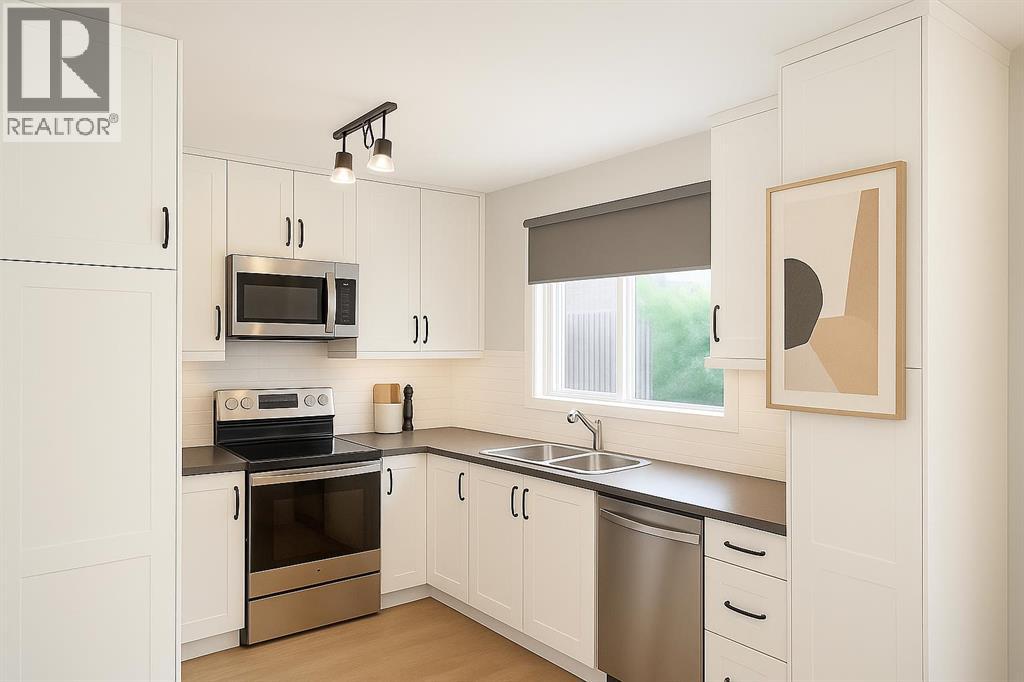 *LOW condo fee* *Immediate Possession* *GREAT LOCATION!* Just STEPS to the Outdoor Skating Rink, Happy Trails Walking Paths AND the Community Gardens!! Welcome to this recently updated 3 bedroom and 2-bathroom townhome. You can easily move right in to this home due to the extensive upgrades including New carpets, newer stove & microwave, newer windows, paint, flooring and modern updates to the kitchen & bathrooms Plus there is a High Efficiency Furnace. The bright & open layout is ideal for your family not to mention the fully fenced backyard with an included storage shed is fantastic for kids and pets. The main level offers a spacious living room which includes dining area(if needed), a 3 piece bathroom, a bright, white kitchen with plenty of cabinets and counter space, and a dining area with patio doors leading to your own private rear yard. The upper level has 3 bedrooms including the large primary bedroom with a huge walk-in closet, and a second full 3-piece bathroom. The developed basement(NEW carpets scheduled for October)has a large family room, a flex room that could be used as an office or gym and a huge laundry room with a laundry sink and a very spacious storage area. This property is conveniently located just STEPS to the Outdoor Skating Rink, Happy Trails Walking Paths, Community Gardens, a playground and just minutes to downtown High River. (id:53676)
