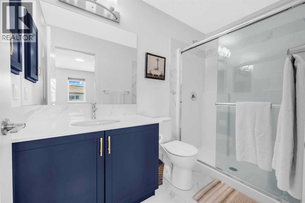 Welcome to this stunning, upgraded Jayman Built home located on a quiet street in the desirable and family-friendly community of Wolf Willow, just a short walk from the Bow River pathway system, Fish Creek Park, and the Blue Devil Golf Course. Offering 1,790 sq ft of beautifully designed living space, this 3-bedroom, 2.5-bath home has been meticulously maintained and showcases thoughtful upgrades throughout, including elegant vinyl plank flooring, 9’ ceilings, designer lighting and custom-fit window coverings. The open-concept main floor welcomes you with a spacious front office, a bright and airy living room bathed in natural light, and a generous dining area perfect for entertaining. The show-stopping kitchen is truly the heart of the home, featuring navy blue and white ceiling-height shaker cabinets with upgraded hardware, sleek quartz countertops, a full-height textured white tile backsplash, a large eat-up island, stainless steel appliances, and a massive walk-in pantry. A mud room with access to the backyard and a stylish 2-piece bathroom complete the main floor. Upstairs, you'll find a large central bonus room ideal for a playroom or second living space, a stunning primary bedroom with a walk-in closet and a spa-inspired ensuite featuring an oversized tiled shower with bench seating and built-in cubbies, two more spacious bedrooms with built-in closets, a full 4-piece bathroom, and a convenient upper-floor laundry room with storage shelving. The full-height, undeveloped basement with 9’ ceilings offers endless potential for future development to suit your needs. Step outside to a professionally landscaped, fully fenced backyard featuring a beautiful stone patio, and an oversized rear parking pad, offering plenty of room to build your dream garage. This remarkable home sits in a nature-rich setting with quick access to parks, ponds, river paths, and newly developed retail amenities, including a daycare, coffee shop, barber, liquor store, and one of Calgary’s n ewest off-leash dog parks. With easy access to Macleod Trail, Stoney Trail, and all major amenities in the surrounding communities, this home truly combines comfort, style, and an unbeatable location. (id:53676)