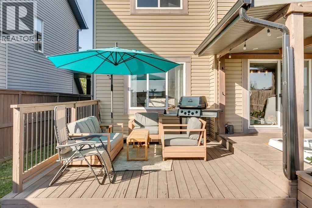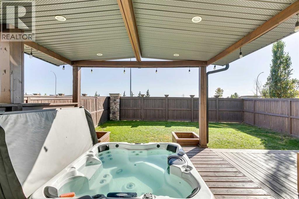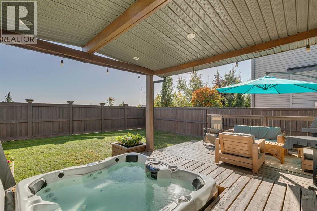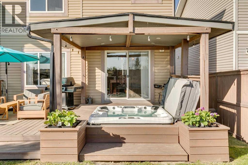 Meet “CLARA” - OPEN HOUSE: Sunday, Oct 19 (12-2 PM) - CENTRAL A/C, NEW HOT TUB, GEMSTONE LIGHTS, HEATED GARAGE - Step inside this beautifully maintained home featuring hardwood floors and a functional main floor layout designed for everyday living. The kitchen offers an eating bar, corner pantry, and GAS RANGE—perfect for cooking and gathering. The living room invites relaxation with a cozy gas fireplace and built-in ceiling speakers, while CENTRAL A/C keeps the entire home comfortable year-round.Upstairs, you’ll find three spacious bedrooms and a convenient laundry room. The primary suite impresses with its large size, a 4-piece ensuite, and a walk-in closet. The second bedroom features a charming BAY WINDOW and its own walk-in closet, while the third bedroom is generously sized. These bedrooms share access to a full 4-piece bathroom.The newly & professionally finished basement (completed in 2022) adds even more living space, with sleek vinyl flooring, pot lights, and a stylish 3-piece bathroom featuring classic subway tile.The HEATED GARAGE—complete with its own furnace—ensures comfort and practicality through Calgary winters. Outside, enjoy GEMSTONE lights surrounding the home, a bright south-facing backyard, and a two-tier deck ideal for entertaining. The new 2024 HOT TUB (still under warranty) sits beneath a beautifully lit PERGOLA, creating a perfect evening retreat.Located just steps from Sobeys, local pubs, banks, and schools, and only five minutes from the South Health Campus and all the amenities of Seton, this home combines convenience, comfort, and thoughtful upgrades throughout. (id:53676)
