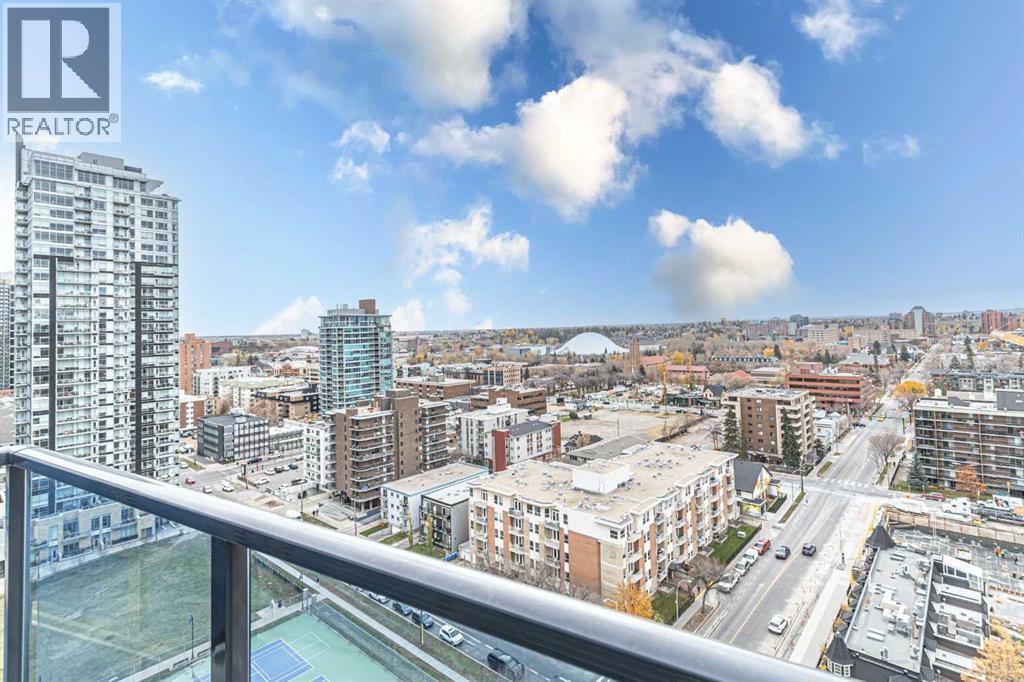 Location doesn't get any better than this! South-west facing, very bright floor to ceiling windows, 18th-floor sub-penthouse condo overlooking Downtown Calgary Tower and also with Rocky Mountain view. Steps to downtown, 17th Ave, 4th Street entertainment districts, and the Stampede Grounds. Good school district, Western Canada HS. Many daycares in the area. Walk to work. One block to the Hospital. This stunning 2 bed, 2 bath + office unit boasts mountain views, a modern kitchen, and two private balconies with BBQ hookup. It has a wow factor. Enjoy luxury living with a rec room, resident lounge, guest suite, and electric car charging. Prime parking spot included! Schedule your showing today! Experience unparalleled urban living , enjoy breathtaking views of the mountains, Stampede fireworks, and the iconic Calgary Tower. Over looking Central Memorial Park, where many civic entertainment activities are held in the park. Unit features a fully upgraded interior with stainless steel appliances, quartz countertops, and sleek tile flooring. Step onto your private balcony with gas BBQ hookup and soak in the vibrant city atmosphere. Just a short stroll away from downtown office districts, 17th Ave entertainment, and convenient access to the LRT, Talisman Centre, and river pathways. Building amenities include a rec room, bike storage, resident lounge, guest suite, and 16 visitor parking stalls with electric car charging. Parking is an oversized parking spot conveniently located near the exit. This is more than just a condo; it's a lifestyle. Concierge service during office hours. (id:53676)