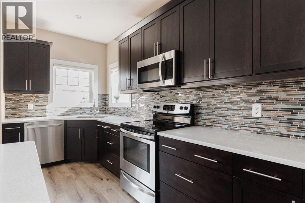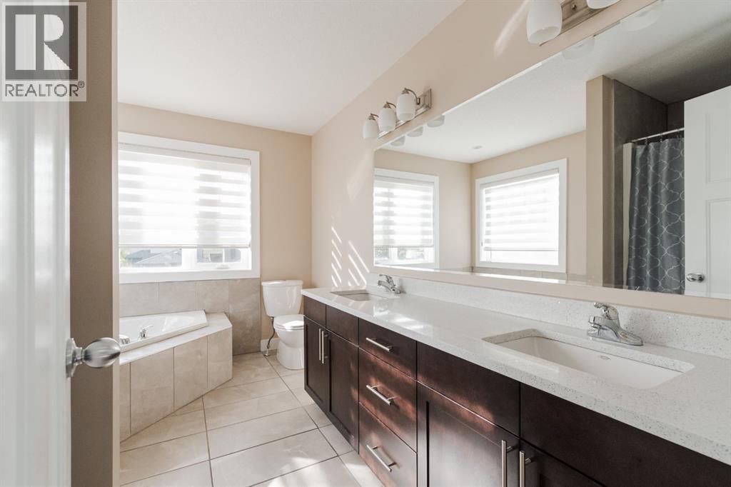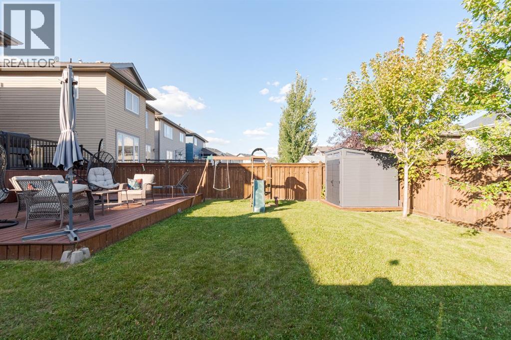 Welcome to 181 Diamondstone Ridge: A beautifully maintained Stonecreek home offering an ideal blend of thoughtful upgrades, functional space, and long-term flexibility for families. Pride of ownership is evident throughout, with a layout designed for everyday living while still feeling polished and intentional. The bright main floor features newer vinyl plank flooring and warm wooden feature walls that add character and depth. A dedicated main floor den provides the perfect space for a home office, playroom, or quiet retreat, while the open living areas create a comfortable flow for both daily living and entertaining. The living room centres around a cozy gas fireplace with a stone surround and connects seamlessly to the kitchen and dining area. The kitchen is generously sized and thoughtfully laid out, with espresso-coloured cabinetry, stainless steel appliances, quartz countertops, and a walk-in pantry. A convenient two-piece bathroom completes this level. Upstairs, you will find four generously sized bedrooms, a layout that is increasingly hard to find. The primary bedroom offers a spacious retreat with a walk-in closet and a five-piece ensuite featuring double sinks, a soaker tub, and a standalone shower. Upper-floor laundry adds everyday convenience, and newer vinyl plank flooring extends throughout the upper level for a cohesive look. The fully developed basement expands the living space even further and is designed with versatility in mind. A full bar with a water hookup makes it ideal for entertaining or movie nights. With a separate entrance, plumbing in place for a secondary laundry, and a layout that allows for the addition of a fifth bedroom, the basement offers excellent potential for extended family living. Outside, the home continues to impress with a low-maintenance yard and a location close to schools, walking trails, parks, and amenities. The backyard features a large two-tier deck perfect for seating, dining, and summer barbecues, along with a ful ly fenced yard complete with a shed, offering plenty of space for kids, pets, and outdoor enjoyment. Every detail reflects meticulous upkeep and thoughtful planning, making this a truly move-in-ready property. Schedule your private viewing today. (id:53676)