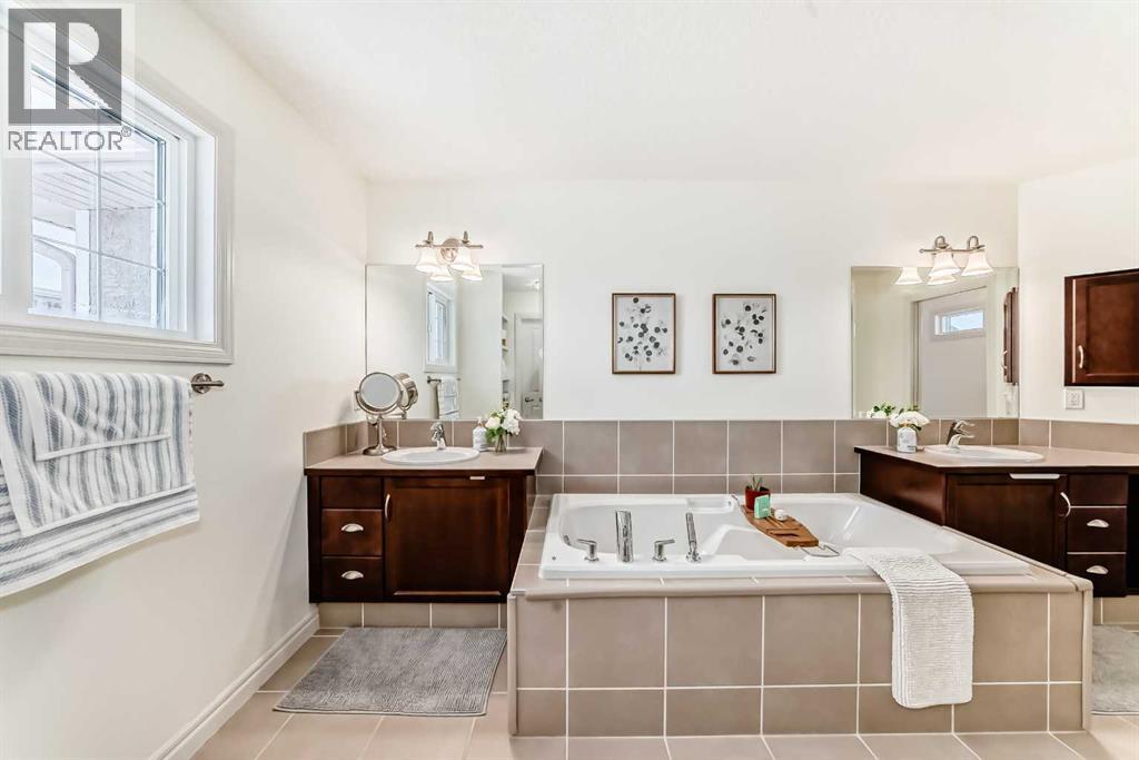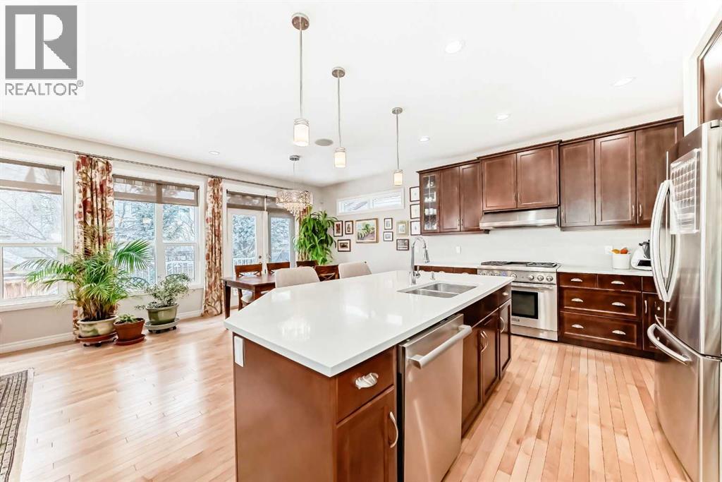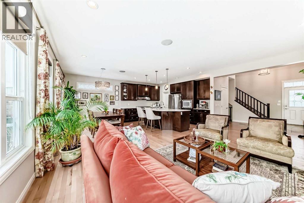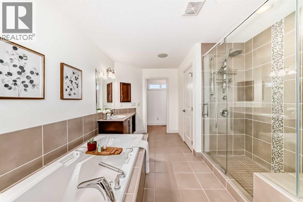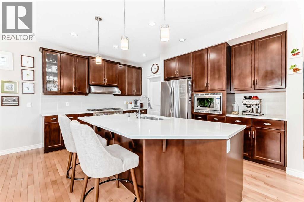When you DREAM, do you dream of pulling up to an ESTATE class home, with feature oozing opulence and upgrades, from it's exposed aggregate driveway, stucco, and rock? WELCOME home. The heart of the home, the kitchen, is the star of the main level, with it's spacious central island which allows for guests to easily gather around, oodles of cupboard and countertop, stainless steel appliances and walk-THROUGH pantry (w/ built-ins), and quartz countertops. The party gets to flow from the kitchen into the adjacent family/great room, or spill over, through the patio doors onto the rear deck (sun shade included), and down onto the west facing back yard, with irrigation system. Returning inside and going upstairs, you'll find an amazing floor plan, with the bonus room between the kid bedrooms and the HUGE decadent master, complete with ensuite featuring custom tiled shower and a soaker tub. The laundry is conveniently located on the top level. The BUILDER finished the "sunshine" basement, ensuring top and consistent quality; featuring a 3rd family area, 4th bathroom, and another bedroom. With schools as close as 250m (kindergarten to Grade 6 ; 5 total schools in Cranston), local shopping, including Sobey's, under 1/2 mile away, and with the South Campus Hospital plus more shopping just on the other side of Deerfoot, it's a challenge to find a better location. You can rest easy knowing you are a short 22 minutes to downtown, and when it's time to enjoy, only 35 minutes from Bragg Creek, and a short 4min walk from the limitless potential of the Bow Valley Pathway system. This home has it ALL. Great upgrades, amazing location with Bragg Creek / Bow Valley pathway / downtown, a fully BUILDER finished basement, and the ultimate yard. What more could you hope for? Call today for your private viewing. (id:53676)