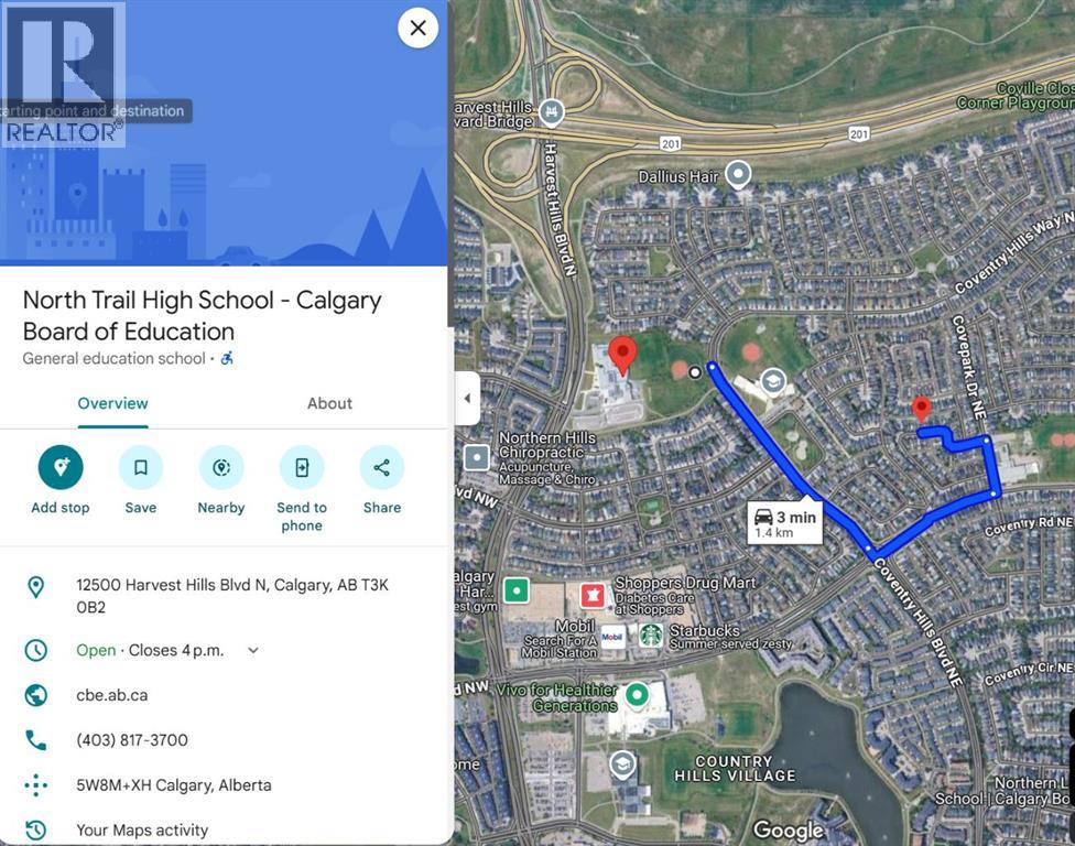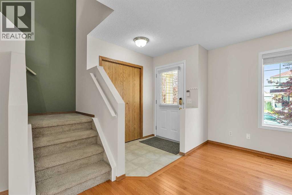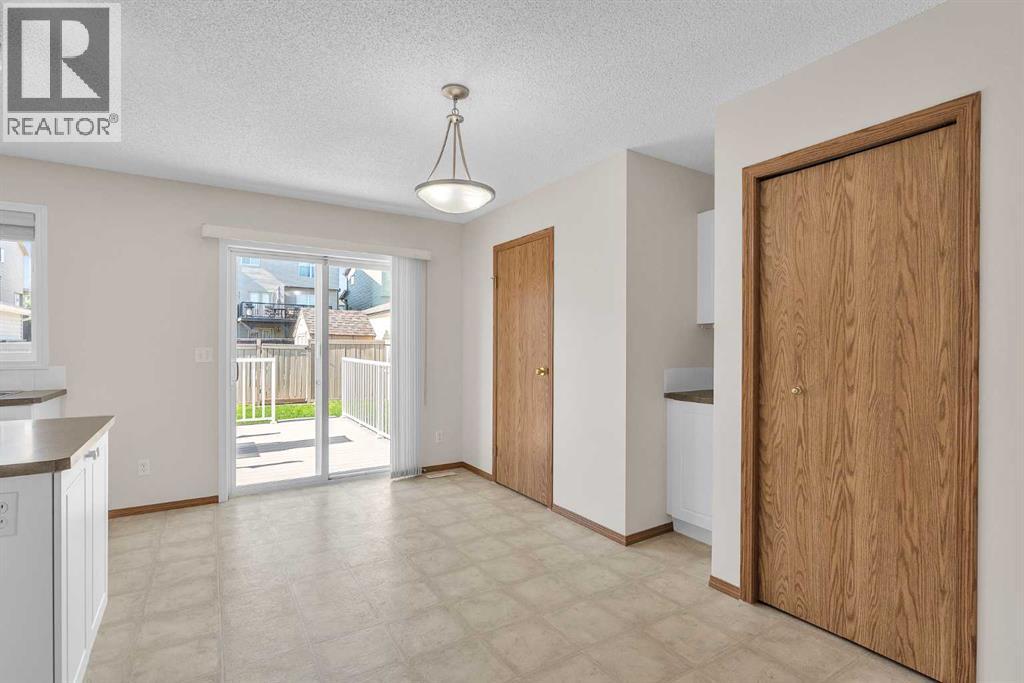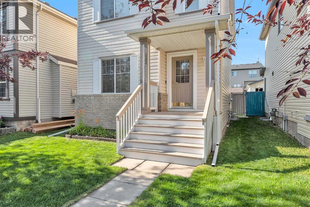 Welcome to this affordable 2-storey detached home nestled on a quiet street in the family-friendly community of Coventry Hills. Quick possession available for this bright and open, well-maintained home! Offering 3 bedrooms, 1.5 bathrooms, and a spacious layout, this home is ideal for first-time buyers or investors. The main level features a bright living room with large windows and beautiful hardwood flooring, fresh paint throughout. A functional kitchen with ample cabinetry, plus a dining nook that opens onto the freshly painted large rear deck—perfect for summer BBQs. A 2-pc bath completes the main floor. Upstairs, you'll find a generously sized primary bedroom with a walk-in closet, two additional bedrooms with ample storage, and a full 4-pc bathroom. The large, fully landscaped backyard is perfect for outdoor enjoyment, and the paved back lane adds convenience with rear access to the double parking pad. Recent updates include a new roof and siding (IKO Nordic, class 4 hail resistant), and water tank (2023). Walking distance to all levels of school within the community [Coventry Hills School (k-5), Nose Creek School (6-9), North Trail High School (10-12)]. Close to shopping, grocery stores, restaurants, recreation centres, the nearby Vivo Centre, and express buses to downtown. With quick access to Deerfoot Trail, Stoney Trail, Shaganappi Trail and the airport, you're less than 10 minutes from major routes and just a 20-min drive to downtown. This home offers unbeatable value in a prime location. Book your private showing today! (id:53676)