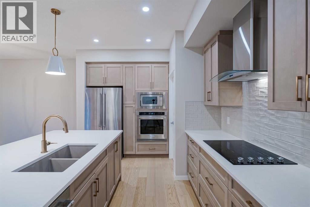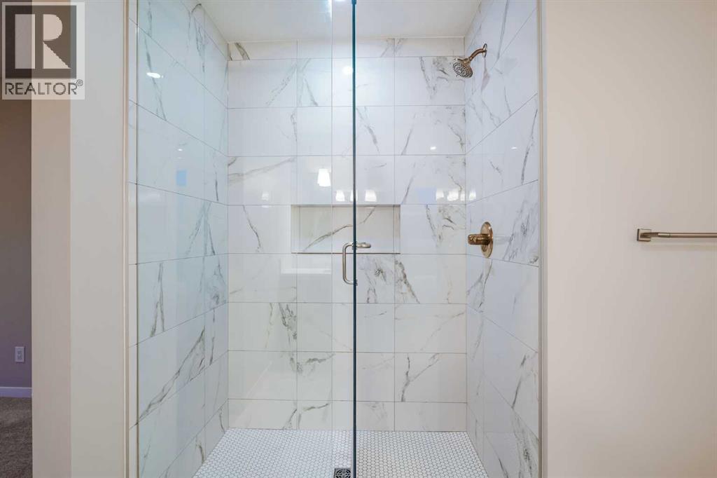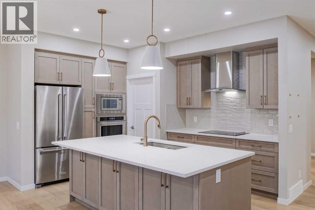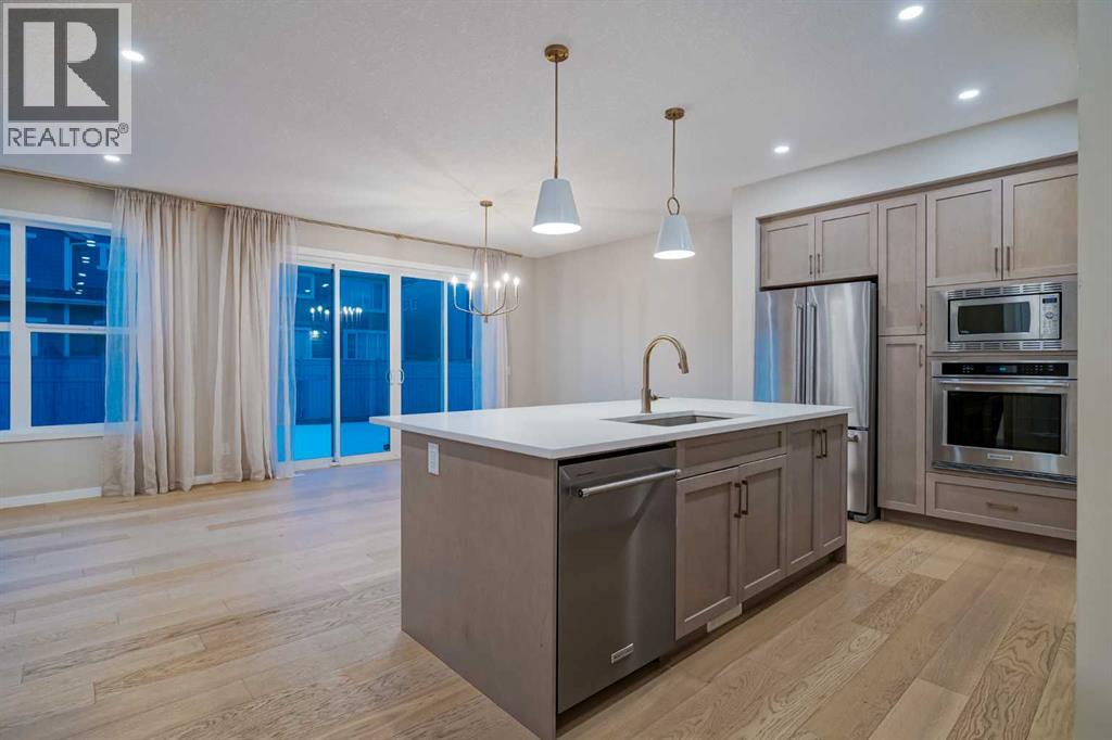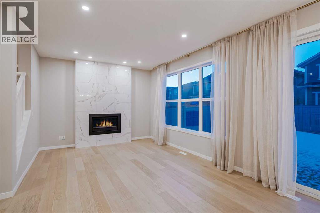 Welcome to 184 Magnolia Terrace, a former showhome where luxury, comfort, and thoughtful design come together in the most breathtaking way. This 6 bedroom masterpiece is not just a house, it is an experience. From the moment you step inside, you are greeted by rich European Oak hardwood floors stretching across the main level, beautifully contrasted by champagne gold hardware, designer lighting, and warm putty cabinetry that creates an elevated yet inviting ambiance. Every detail was carefully curated as a showhome, showcasing premium upgrades, refined finishes, and exceptional craftsmanship throughout. A versatile front flex room offers endless possibilities, whether you envision quiet mornings with coffee and a book, a stylish home office, or the perfect playroom. The heart of the home was designed to impress with an alternate kitchen layout featuring upgraded appliances, a built in oven and microwave, countertop stove, quartz counters, and a statement chimney hoodfan wrapped in timeless subway tile. The entire back wall is nearly all glass, flooding the space with natural light and creating a seamless connection to the outdoors. The dining area easily accommodates large gatherings, while sliding French patio doors extend your entertaining space outside on warm summer evenings. The living room is anchored by a dramatic floor to ceiling Carrara marble style tile fireplace, creating the perfect backdrop for cozy winter nights and elegant holiday décor. Upstairs, designer lighting and a modern wood railing lead to a stunning central bonus room with tray ceiling detail that thoughtfully separates the primary suite from the kids wing, offering both privacy and connection. The oversized primary retreat is filled with natural light and features a luxurious five piece ensuite with a freestanding tub centered between dual vanities, marble style tile, a glass shower, and elevated finishes that make every evening feel like a luxury hotel stay. The oversized walk in closet co nnects directly to the laundry room complete with sink, adding effortless convenience to everyday living. On the opposite side of the bonus room, three spacious bedrooms ensure no one is left out. The fully finished basement expands your living space even further with an oversized recreation room and two additional bedrooms, bringing the total to six and making this home perfect for guests, teenagers, or multi generational living. Imagine waking up here, hosting unforgettable gatherings, and watching your family grow in a home where every corner feels intentional and every day feels elevated. You will be proud to call 184 Magnolia Terrace home. (id:53676)