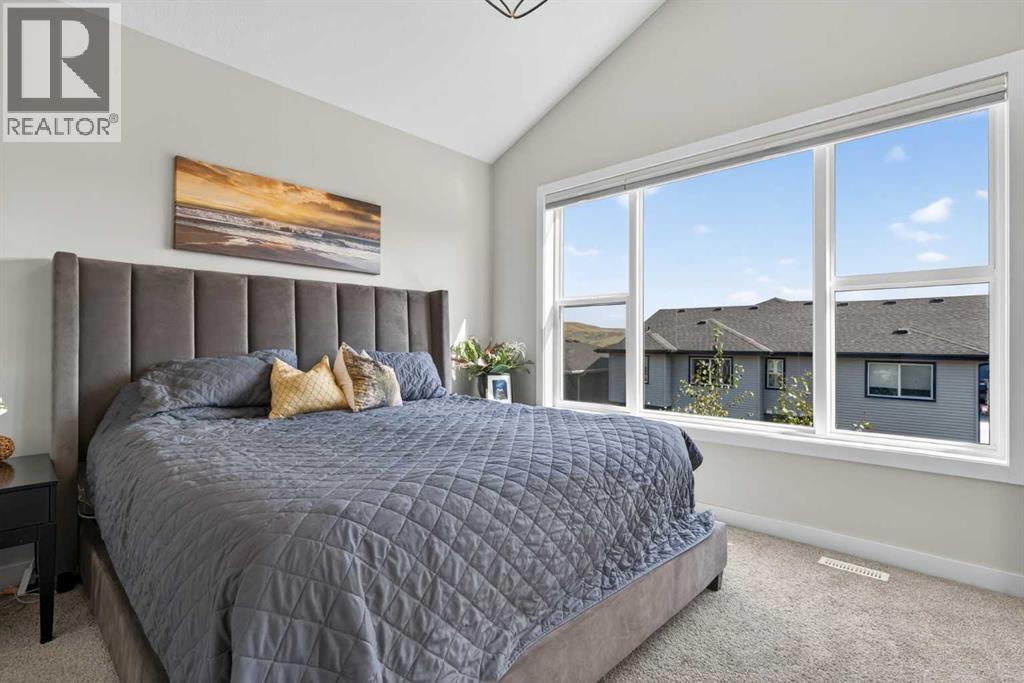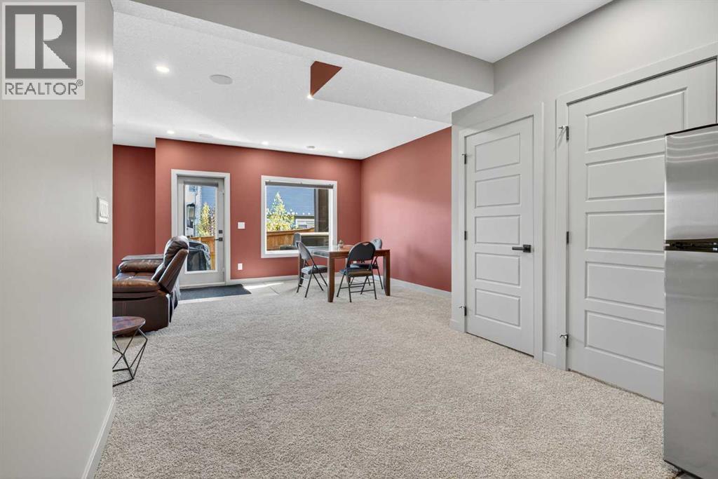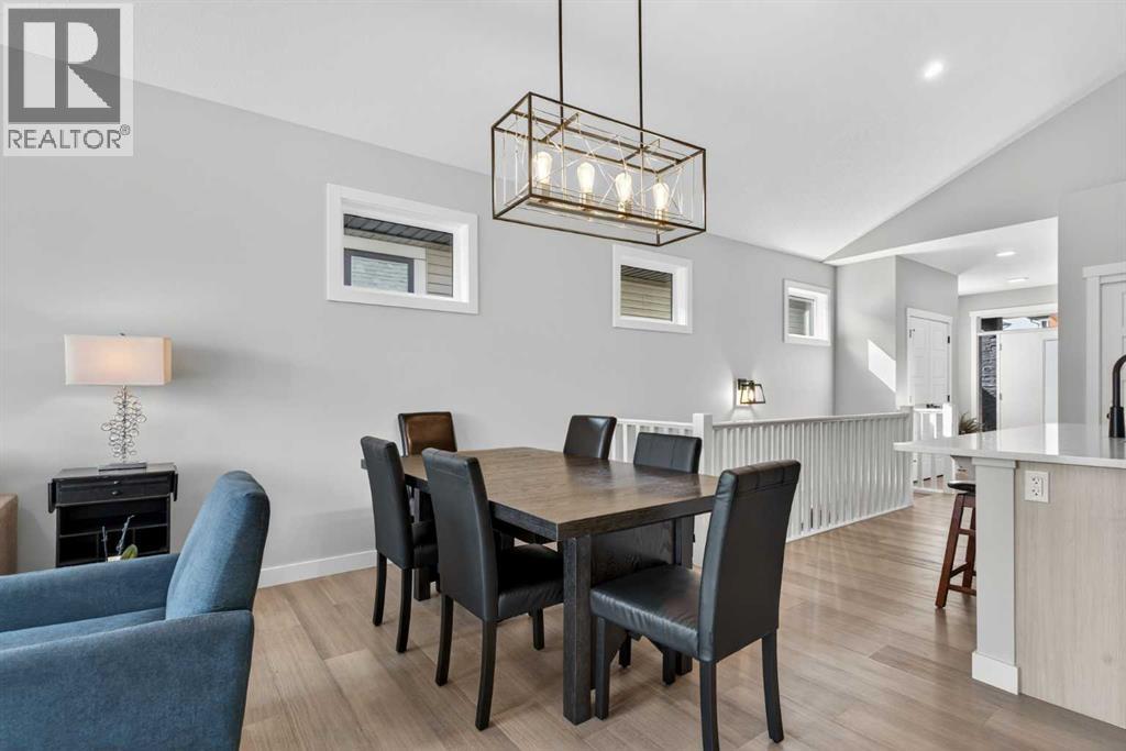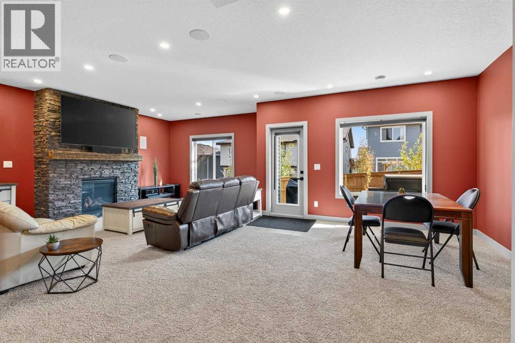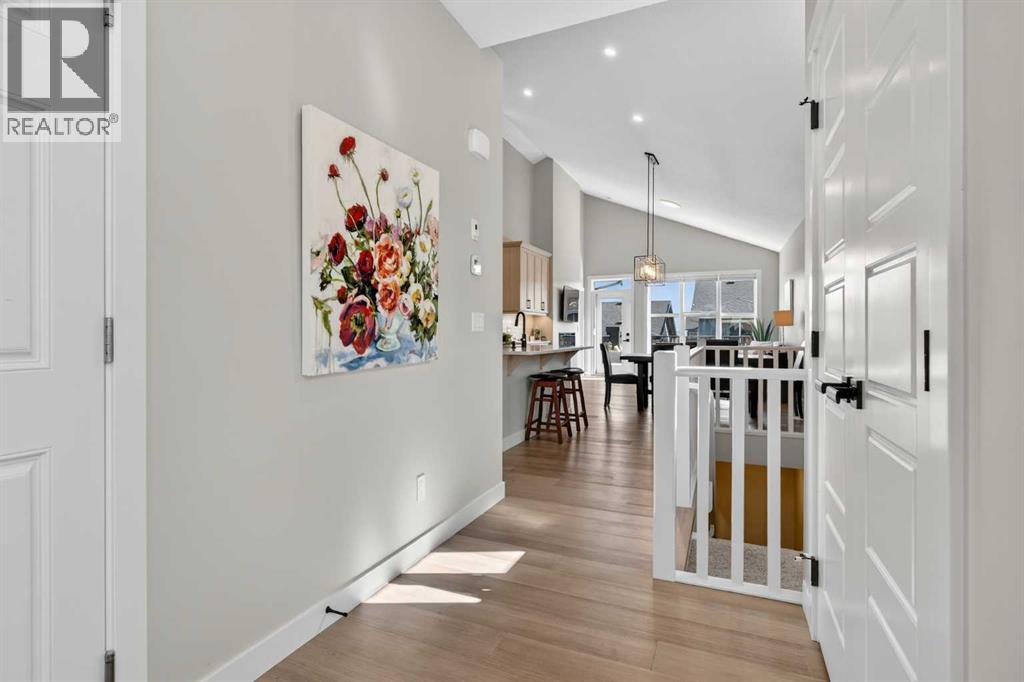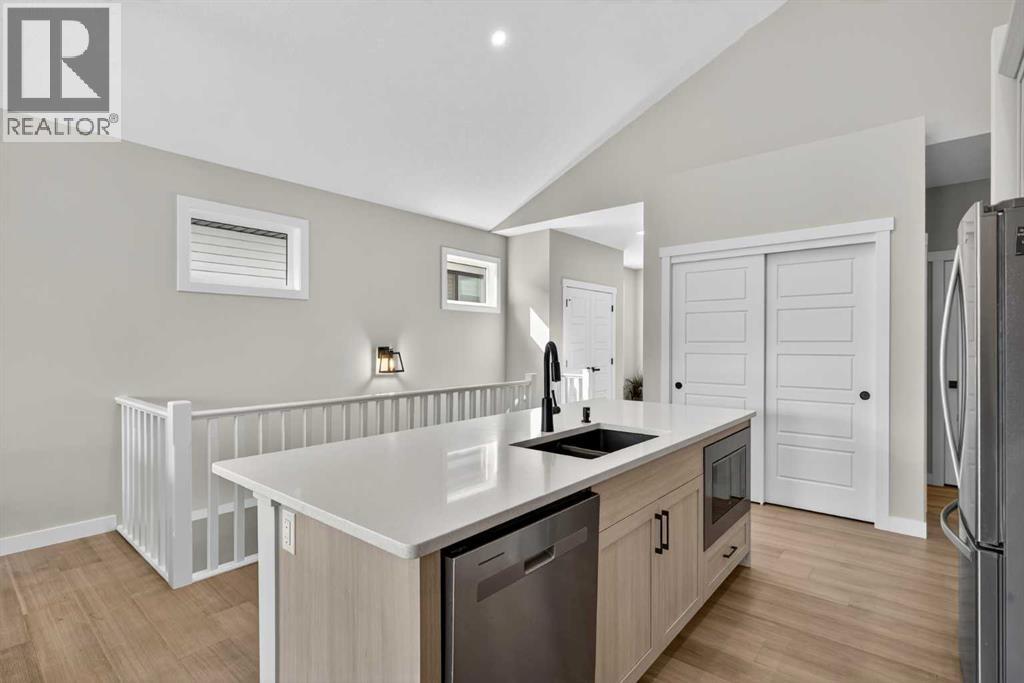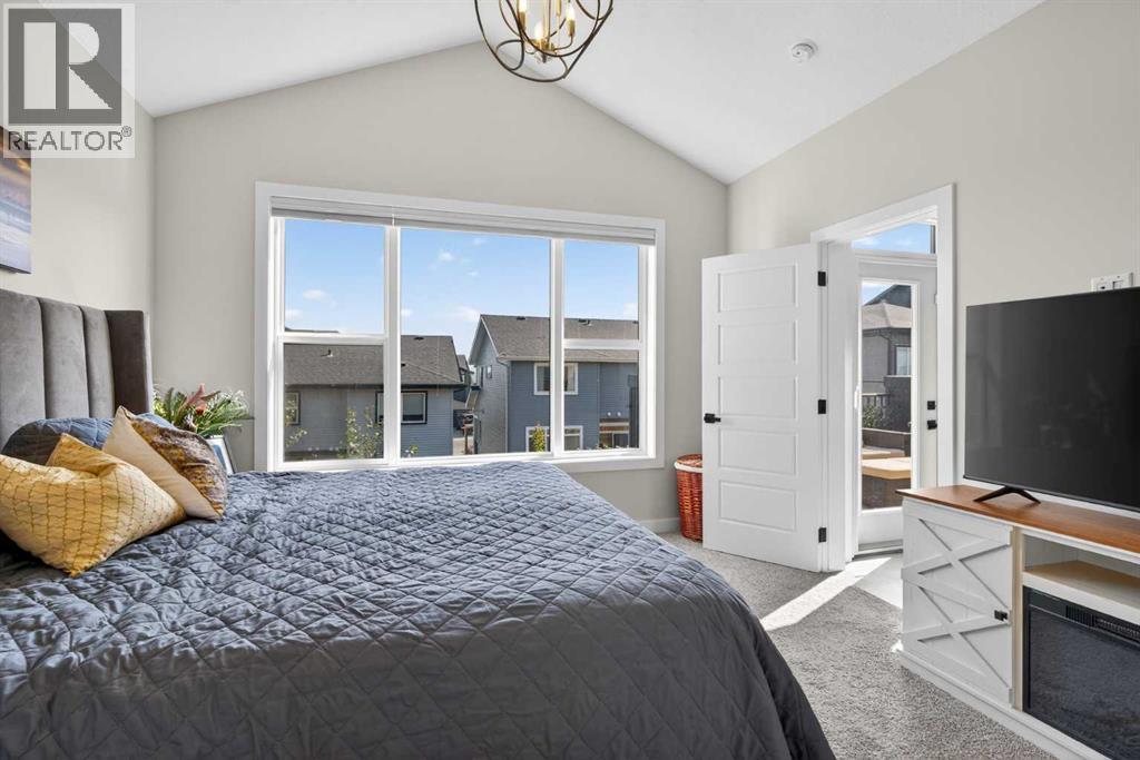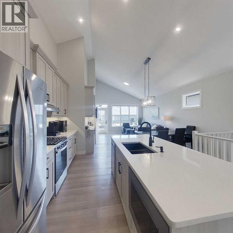 Your NEW HOME awaits.... Stunning 2024 Trico Homes Wynwood 28 Vaulted Ceiling Bungalow with finished Walkout Basement Development by Basement Builders in Scenic Precedence area. This beautifully designed bungalow combines comfort, style, and breathtaking views in one exceptional package. As you step through the front door, you are WELCOMED into the heart of the HOME greeted by soaring VAULTED CEILINGS and an open, light-filled floor plan. The kitchen is a delight to cook in with a large island, gas range, and tall cabinetry with quartz countertops, and pantry. Continuing on the main level is the dining area, and living room with electric fireplace and flatscreen TV making this the perfect space for both everyday living and entertaining. Finishing off this level is the Vaulted Primary Bedroom with 5 piece ensuite with SPECTACULAR walk in shower, walk in closet, second bedroom/office, main bathroom, and laundry room. Another added bonus off the living room is the 10 by 14 deck with gas BBQ hook-up which overlooks the landscaped backyard and North East views of the Cochrane Hills, PLUS a double attached garage with high ceilings.Head downstairs to the beautifully fully finished walkout basement offering even more living space that has been thoughtfully designed for relaxation, entertainment or a man cave. A massive family room centres around a striking floor-to-ceiling stone gas fireplace with mantle, and 75 inch big screen TV with SURROUND SOUND. There are so many added BONUSES including a large BAR area making this level perfect for hosting gatherings. Finishing off the basement you will find two additional bedrooms and 4 piece bathroom plus utility room. The walkout door leads to a covered patio with beautifully landscaped yard, extending the living space outdoors, plus electric hook up for a future hot tub area.This HOME BLENDS a thoughtful layout with high-end finishes and stunning surroundings, making this bungalow the best of both worlds! A retreat lik e setting with easy access to Cochrane’s amenities, schools, and scenic trails. Whether you are entertaining friends or enjoying quiet evenings on the deck, this home truly has it all. DO NOT WAIT... make this HOME yours TODAY! (id:53676)