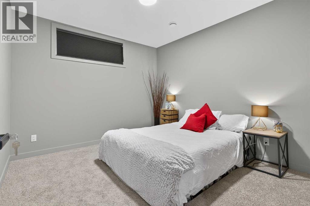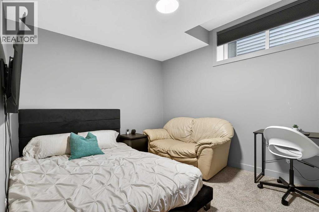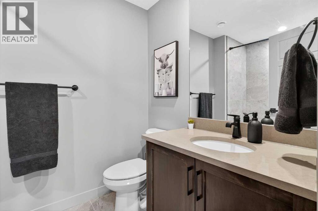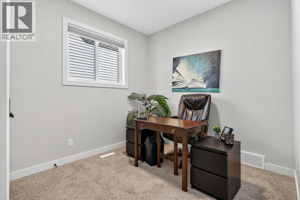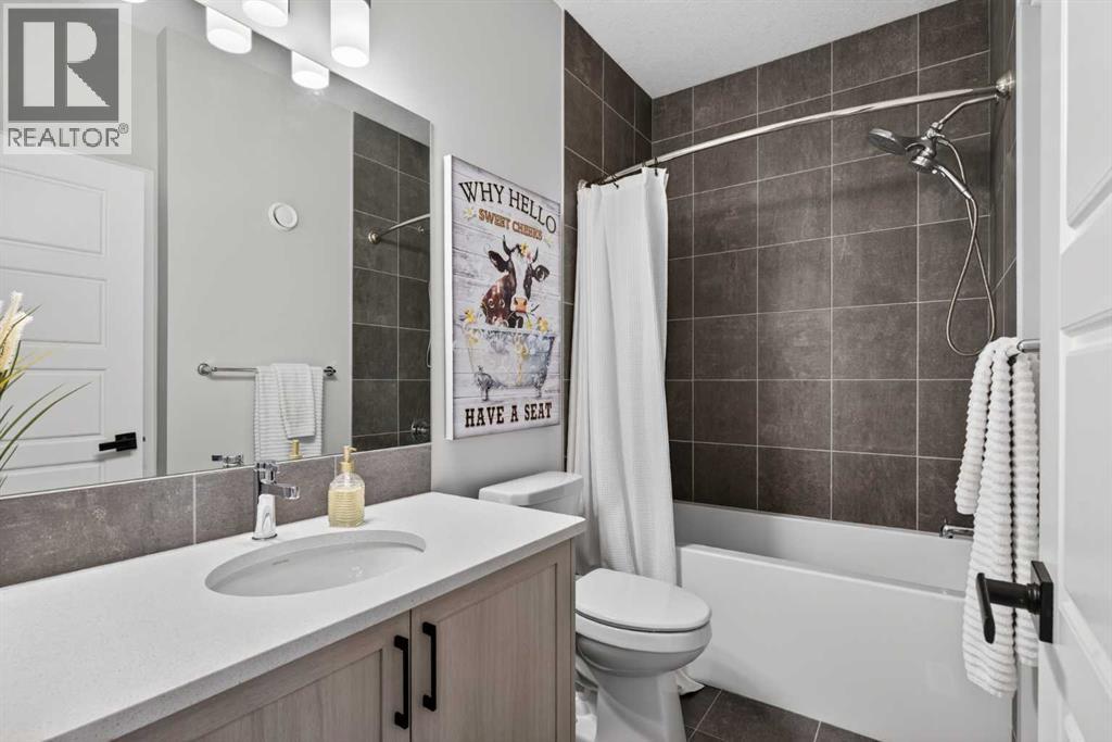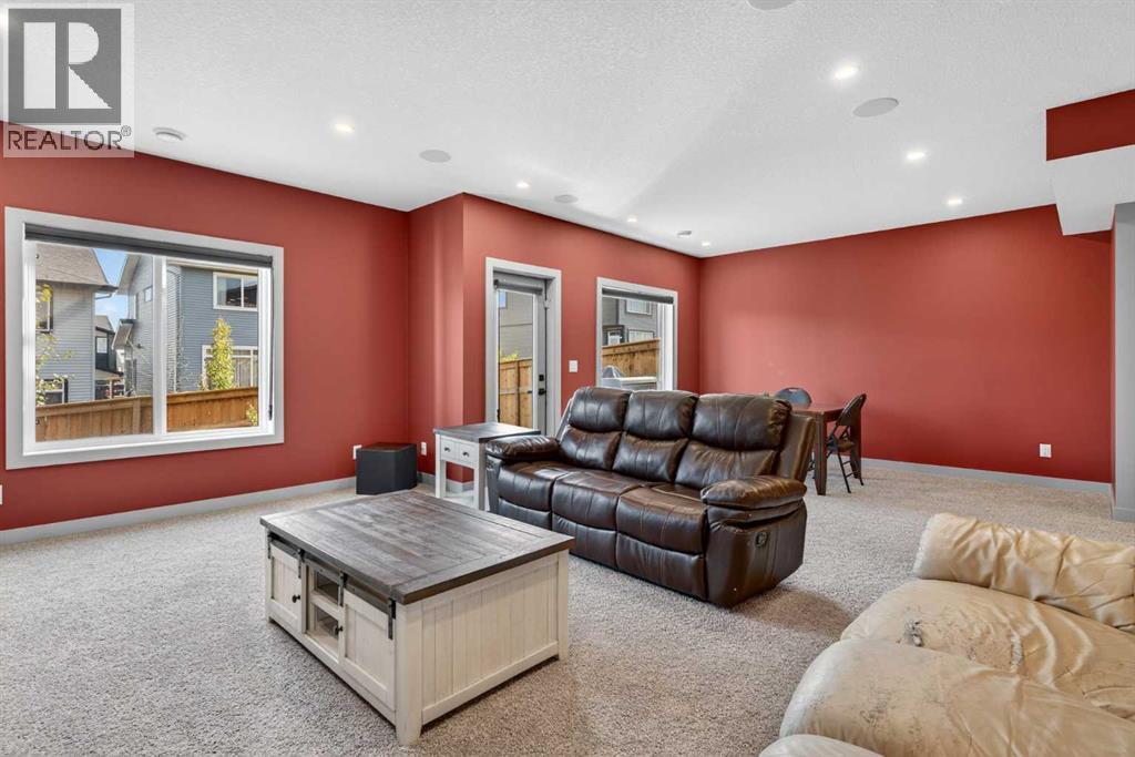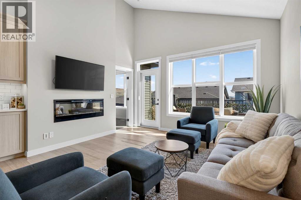Your NEW HOME awaits.... Stunning 2024 Trico Homes Wynwood 28 Vaulted Ceiling Bungalow with finished Walkout Basement Development by Basement Builders in Scenic Precedence area. This beautifully designed bungalow combines comfort, style, and breathtaking views in one exceptional package. As you step through the front door, you are WELCOMED into the heart of the HOME greeted by soaring VAULTED CEILINGS and an open, light-filled floor plan. The kitchen is a delight to cook in with a large island, gas range, and tall cabinetry with quartz countertops, and pantry. Continuing on the main level is the dining area, and living room with electric fireplace and flatscreen TV making this the perfect space for both everyday living and entertaining. Finishing off this level is the Vaulted Primary Bedroom with 5 piece ensuite with SPECTACULAR walk in shower, walk in closet, second bedroom/office, main bathroom, and laundry room. Another added bonus off the living room is the 10 by 14 deck with gas BBQ hook-up which overlooks the landscaped backyard and North East views of the Cochrane Hills, PLUS a double attached garage with high ceilings.Head downstairs to the beautifully fully finished walkout basement offering even more living space that has been thoughtfully designed for relaxation, entertainment or a man cave. A massive family room centres around a striking floor-to-ceiling stone gas fireplace with mantle, and 75 inch big screen TV with SURROUND SOUND. There are so many added BONUSES including a large BAR area making this level perfect for hosting gatherings. Finishing off the basement you will find two additional bedrooms and 4 piece bathroom plus utility room. The walkout door leads to a covered patio with beautifully landscaped yard, extending the living space outdoors, plus electric hook up for a future hot tub area.This HOME BLENDS a thoughtful layout with high-end finishes and stunning surroundings, making this bungalow the best of both worlds! A retreat lik e setting with easy access to Cochrane’s amenities, schools, and scenic trails. Whether you are entertaining friends or enjoying quiet evenings on the deck, this home truly has it all. DO NOT WAIT... make this HOME yours TODAY! (id:53676)