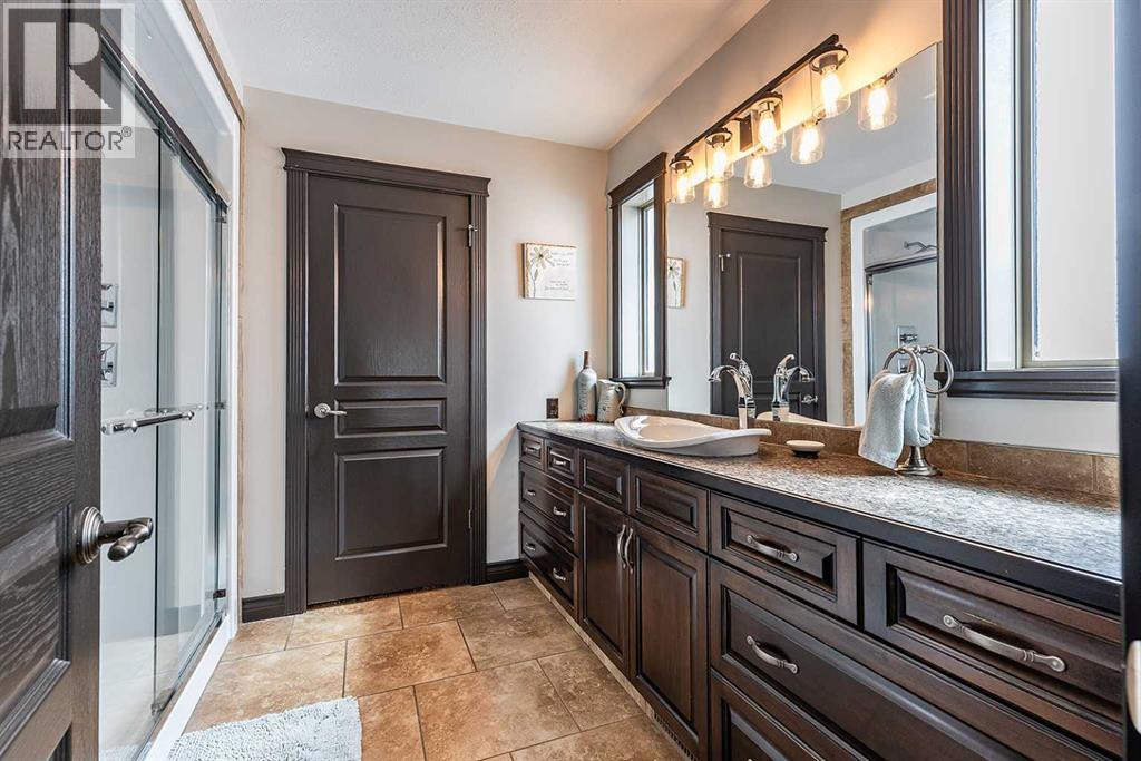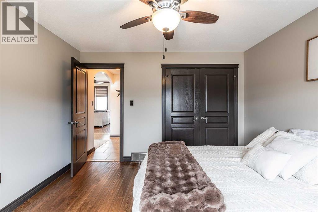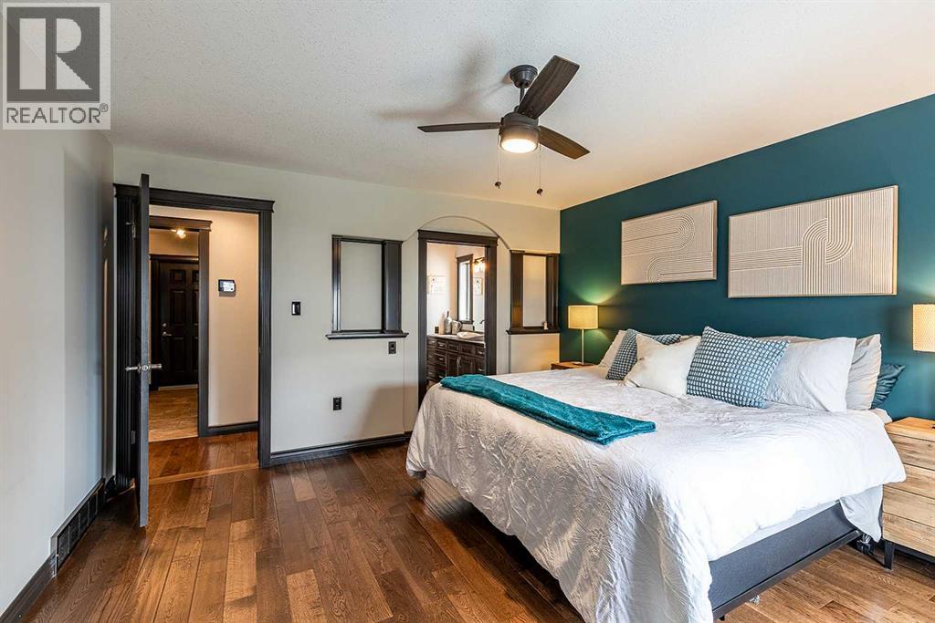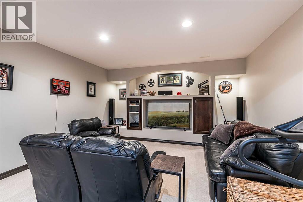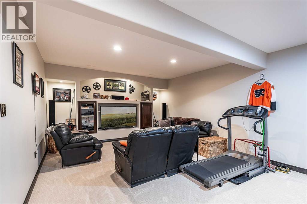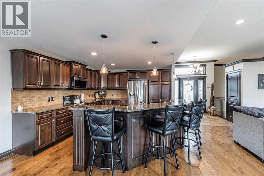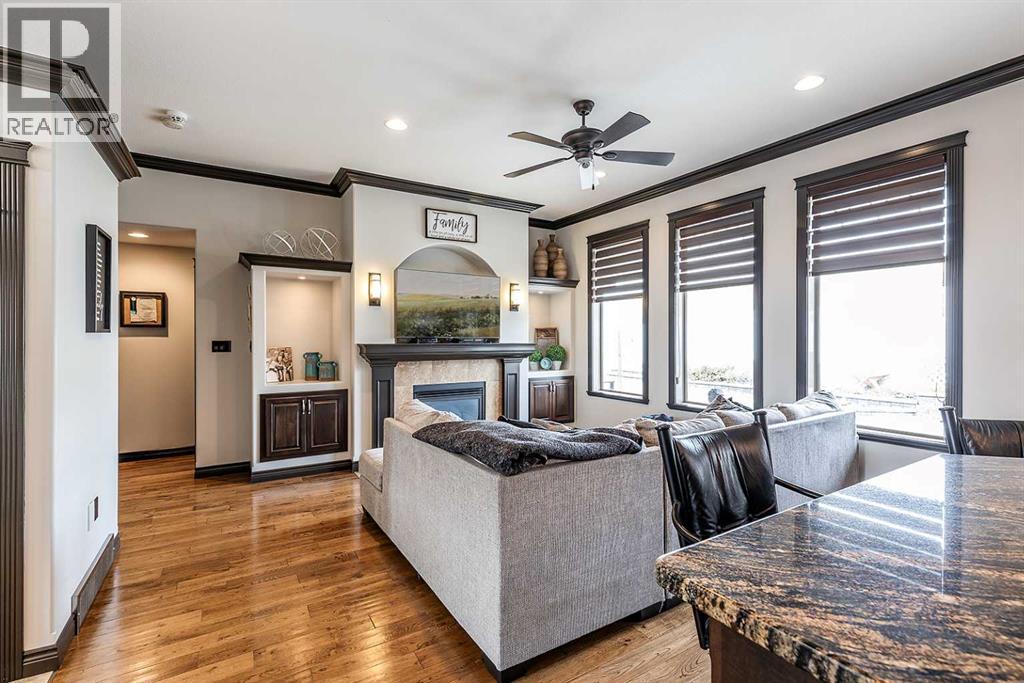 Welcome to this beautifully appointed executive bungalow showing true pride of ownership and quality throughout tucked away in the beautiful Ranchlands neighbourhood. With no neighbours behind there is exceptional privacy, and a peaceful yard to enjoy year-round. The main floor features a bright, open-concept layout with hardwood floors, large windows, a cozy gas fireplace, coved ceilings and an abundance of natural light. The spacious kitchen has loads of cabinets with granite countertops-it flows seamlessly into the dining and living areas, offering direct access to the outdoor living space. Also on the main level- a private primary suite with 3pce ensuite with a 5' shower and a walk-in closet, a second bedroom or dedicated office/den, laundry, a 4pce main bathroom. The fully developed lower level features a large recreation room with 3 generous bedrooms (two with walk-in closets), a full 4 pc bathroom. This home offers exceptional space, storage and flexibility for families or guests. Professionally landscaped yard is a dream with a gas line for BBQ, fire-pit (gas fed), pergola, and backing onto walking paths with a tall vinyl fence and concrete curbing giving great privacy. The over sized garage is finished and heated with cabinets. Surrounded by attractive custom homes, this is a rare opportunity to enjoy executive living in one of Medicine Hat’s most scenic settings. (id:53676)