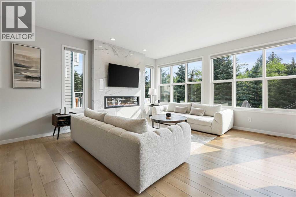 OPEN HOUSE OCT 18, 12 - 2 pm! Step into this luxurious offering in amazing West Springs! Close to trails and parks, and with a secluded, private backyard, this Cedarglen built home is a unique home that won't last long. Quartz countertops throughout, extended windows, central air conditioning, luxury vinyl plank flooring & hardieboard exterior are some key features. Walking into the home through the front door the living room/dining room combination has gorgeous views of the secluded backyard with massive extended height windows that brighten up the home. The kitchen has an island, stainless steel appliances, built-in microwave and gas stove, making it a chef’s dream! There is a walk through pantry off the kitchen and a patio door to the deck. Coming in from the garage you can take your boots off in the spacious mud room. Going upstairs you’ll find the primary bedroom on the left, overlooking the neighbouring acreage, with a well appointed 5 piece ensuite. The laundry room is conveniently located on the top floor. The large bonus room is a great place for a family hangout with a view to the north west. The basement is fully finished with a bedroom and 4 piece bathroom, and the large windows allow in lots of light. The back yard has artificial turf, and the front yard is done with rock, so the maintenance is a breeze. The exterior is finished with hardieboard, which is extremely resilient. The back deck has natural gas for your summer barbeques. The secluded private backyard is the most attractive feature of this property! (id:53676)