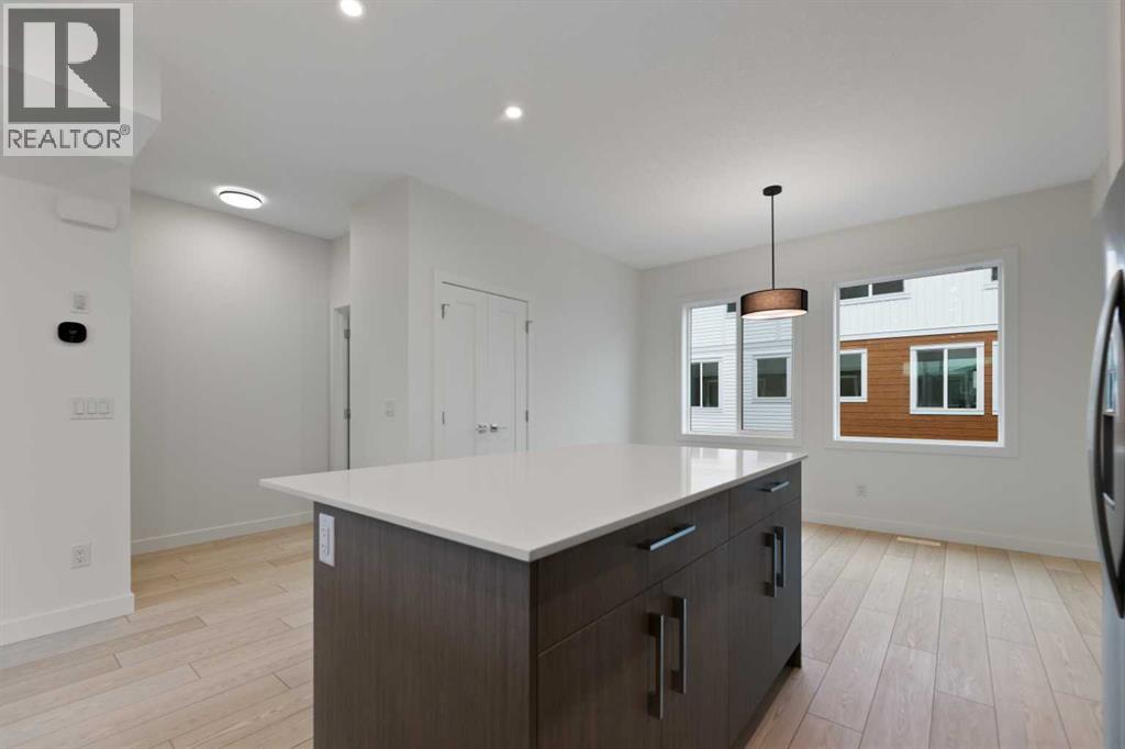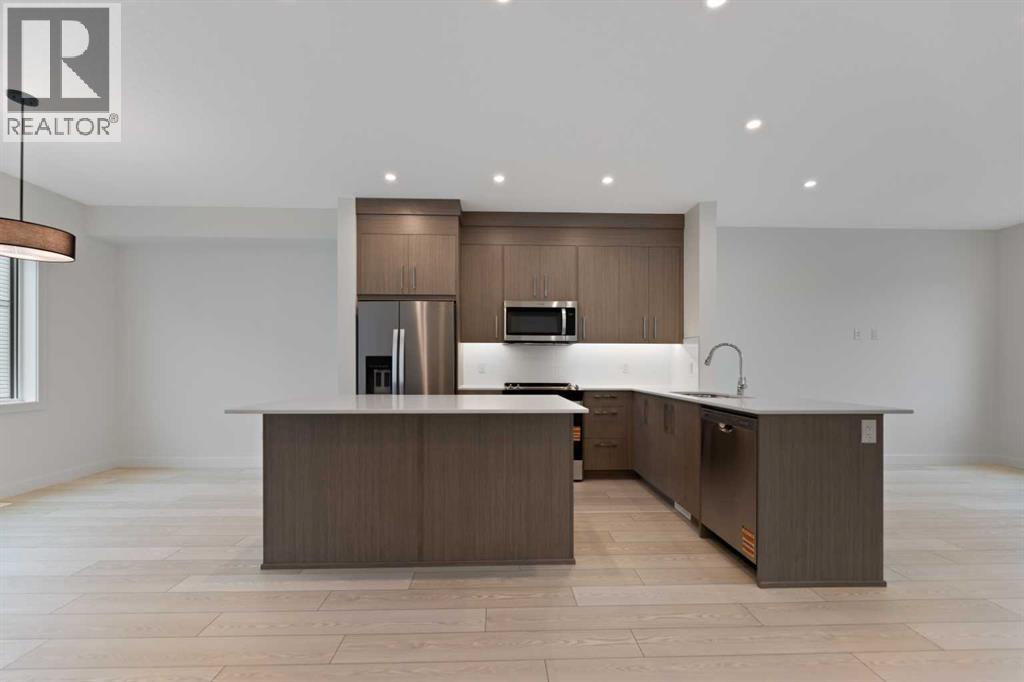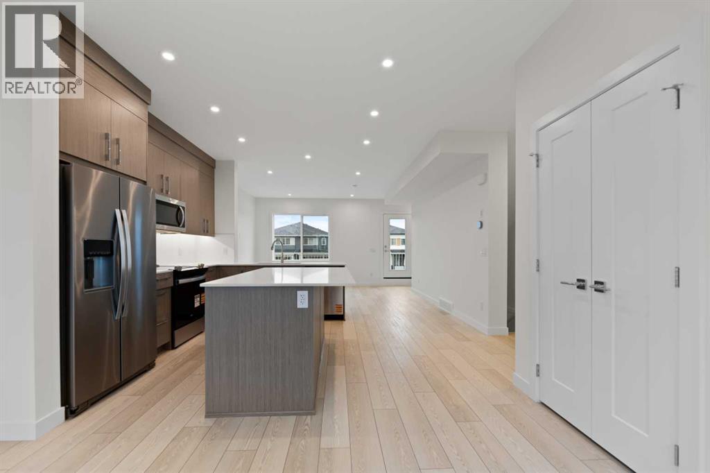 Welcome to 1870 Cornerstone Boulevard – a modern and stylish townhouse offering 4 bedrooms, 2.5 bathrooms, and an attached double heated garage. With over three thoughtfully designed levels, this home blends luxury, functionality, and convenience in one of Calgary’s most sought-after communities. Step inside to discover luxury vinyl plank flooring, soaring ceilings, and a chef-inspired kitchen featuring full-height cabinetry, elegant quartz countertops, and premium stainless-steel appliances. A flexible main-floor bedroom provides the perfect space for a home office or guest suite. On the second level, you’ll find another beautifully appointed kitchen complete with a large island for added prep space, soft-close cabinets and drawers, and access to a road-facing balcony — perfect for morning coffee or evening relaxation. The spacious adjacent dining area is ideal for entertaining, and a stylish two-piece powder room adds everyday convenience. The third floor is a private retreat, featuring a generous primary suite with a walk-in closet and a luxurious ensuite bathroom. Two additional bedrooms, a full bathroom, and a convenient upper-level laundry room complete this level. Located in the vibrant community of Cornerstone, this home offers unbeatable access to major roadways including the Airport, Stoney Trail, Metis Trail, Deerfoot Trail, and Country Hills Boulevard. Residents enjoy proximity to schools, shopping, parks, and all essential amenities. Don’t miss your chance to own this stunning, move-in-ready townhouse. (id:53676)