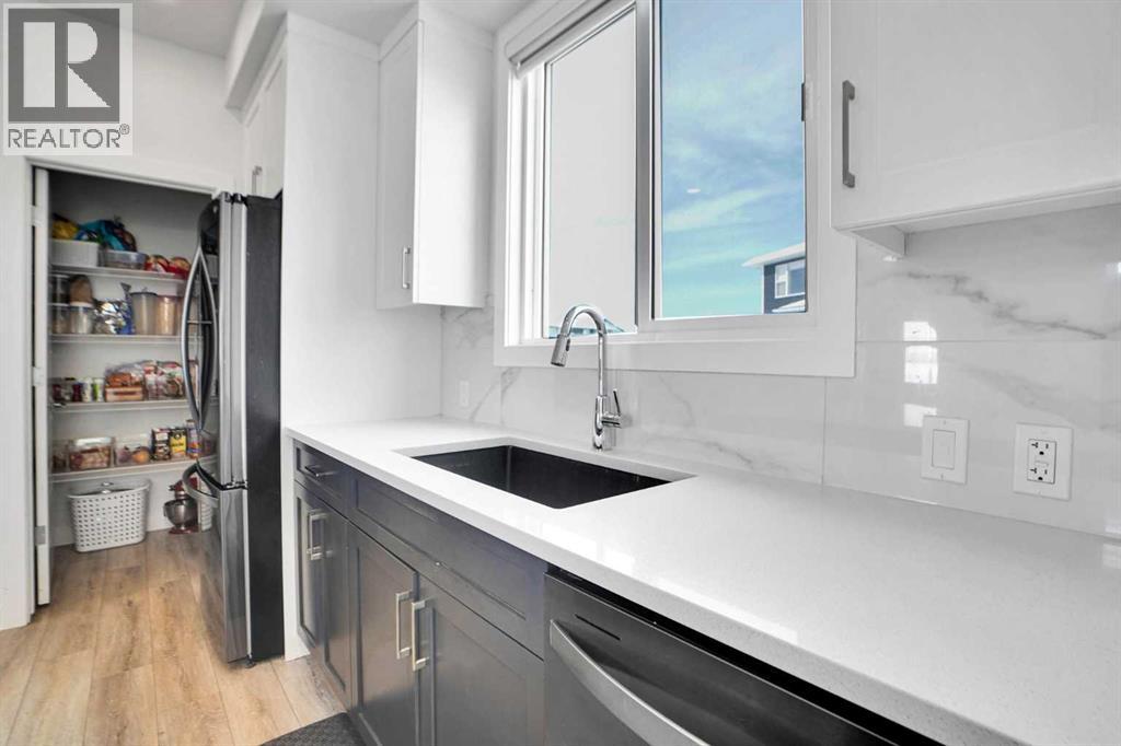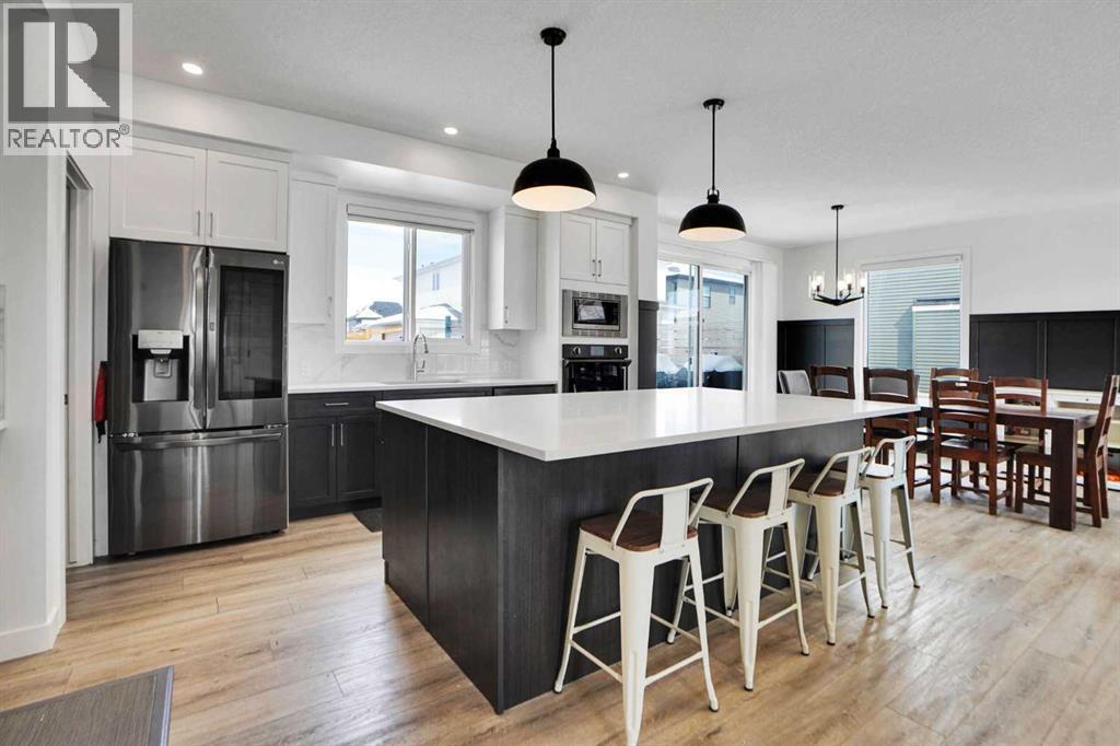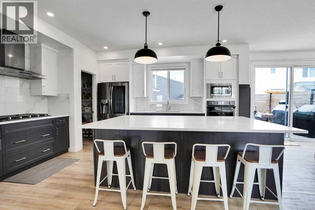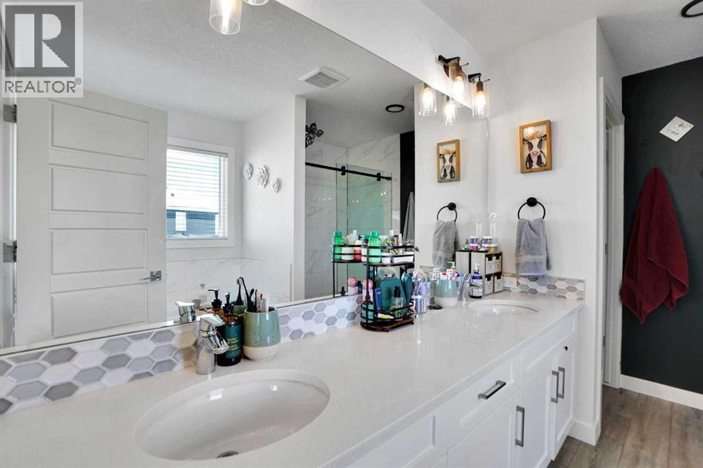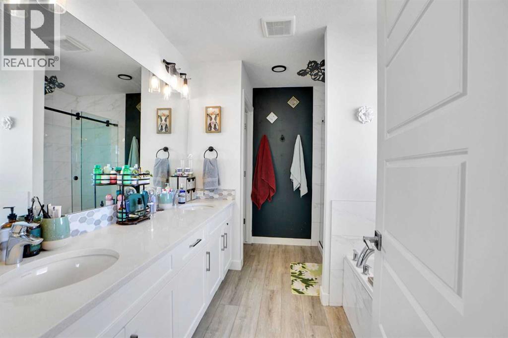 Welcome to the Hamlet of Langdon, Located just 15 minutes from Calgary this truly is the ideal place to call home! This beautifully built home features a number of upgrades and custom built features that stand out among the rest. Walk through the front foyer into the main floor to find a massive quartz counter top island, with lower cabinets. All kitchen appliances including the gas range and the sink are upgrades. Large walk in pantry with shelving is more than enough storage for all your dry food and snacks. The open and inviting dining room and living room allow for ample space for hosting, stay warm by the gas fireplace and admire the custom mantel. Off the dining room is the sliding glass door leading to not 1 but 2 composite decks, enjoy sitting out here with privacy walls built in. Or head down to the lower deck and find your access to the hot tub. Continue down to the yard to find enough space to play and spend your summer evenings with extra privacy added by a number of perfectly placed trees. Back inside through the kitchen you'll find the main floor bedroom, spacious and easily accessible this room would also be a great office or playroom. Across the hall is the main floor full 3 piece bathroom with glass shower. Easy access to the double garage with built in shelving and epoxy flooring. Walk up to the second floor to find a bonus room ideal for movie nights or a play area for the kids. The primary bedroom offers a large walk-in closet and an exquisite 5 piece en suite bathroom. Double vanities, quartz countertop, tile backsplash, floor to ceiling tiled shower and a large bathtub to make it enjoyable getting ready to start the day or winding down at the end of the day. Down the hallway leads to 3 additional bedrooms, laundry room and another full bathroom with double vanity. Down the stairs to the basement offers a beautiful and functional space including 9 foot ceilings, and a large rec room. The bedroom is the size of a primary with a walk in closet tha t includes a custom built in shelving and closet system. The Oversized bathroom offers once again another double vanity, counter to ceiling cabinet and a full tiled shower and bench. Under the stairs is a custom storage area with glass door, used as a wine room. This home has been well maintained and has had thoughtful and useful upgrades added throughout. Furnace and duct cleaning, new paint and carpets steam cleaned in March 2026. New commercial area of Painted Sky offers restaurants, gas station, grocery stores, daycare, gym and many more stores just a couple minutes walk around the corner. Langdon offers schools from k-12, chain restaurants and local establishments, don't miss out on the opportunity to make this your next home! (id:53676)