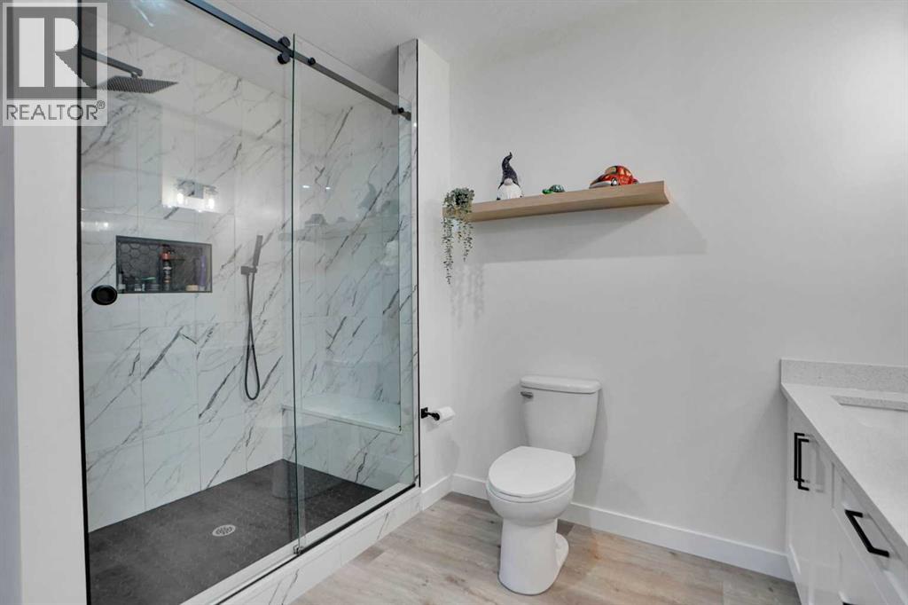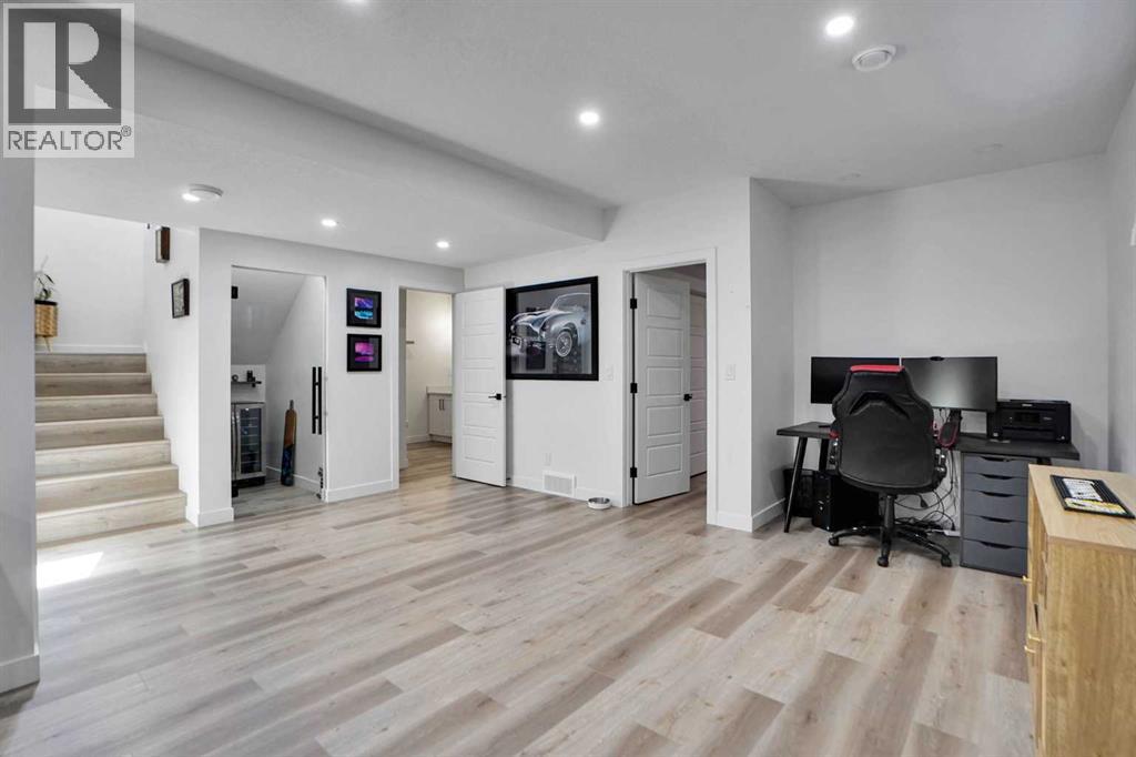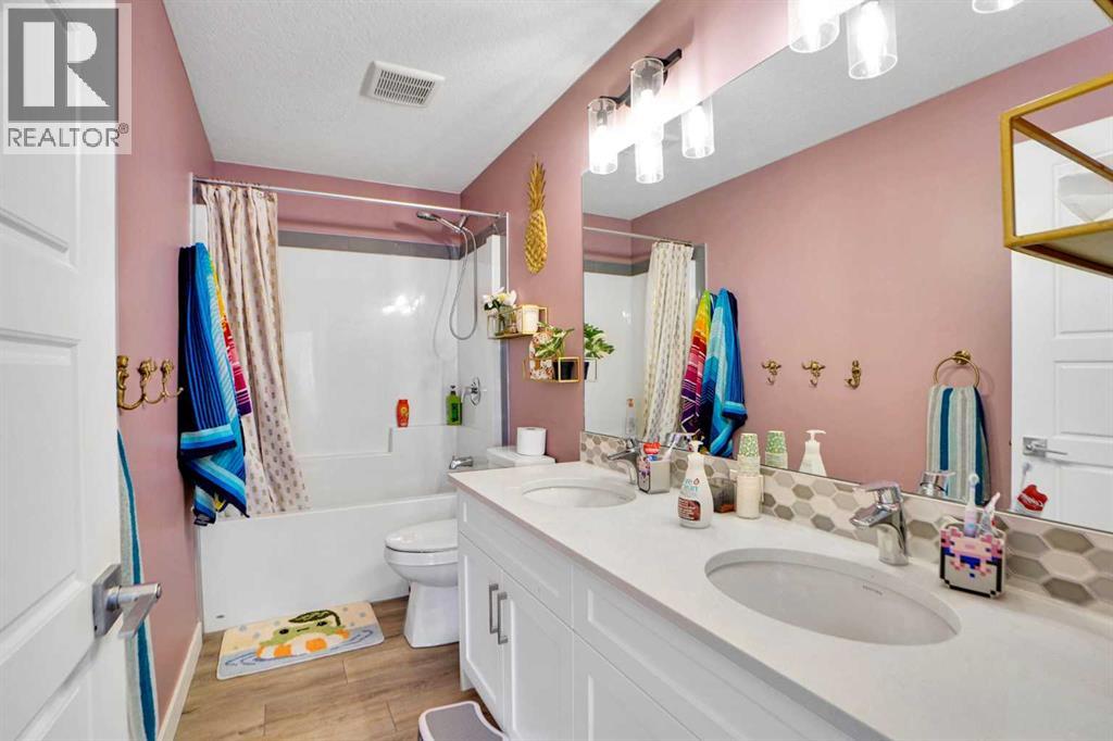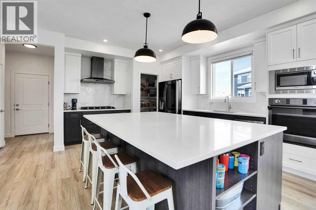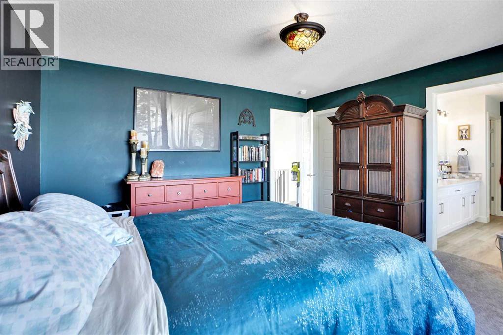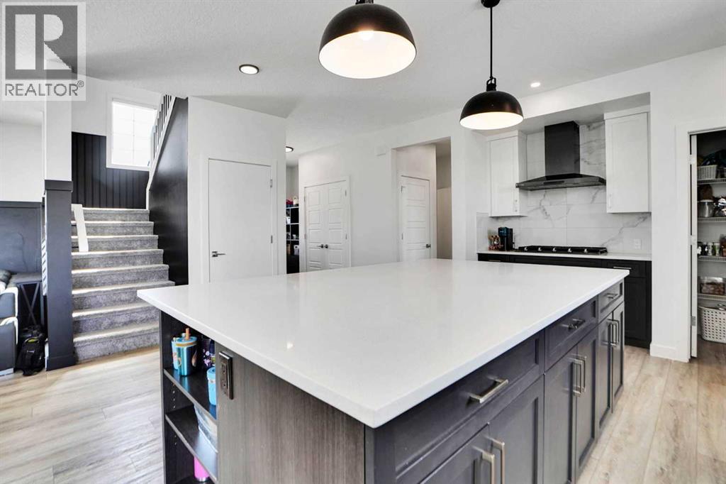 Welcome to the Hamlet of Langdon, Located just 15 minutes from Calgary this truly is the ideal place to call home! This beautifully built home features a number of upgrades and custom built features that stand out among the rest. Walk through the front foyer into the main floor to find a massive quartz counter top island, with lower cabinets. All kitchen appliances including the gas range and the sink are upgrades. Large walk in pantry with shelving is more than enough storage for all your dry food and snacks. The open and inviting dining room and living room allow for ample space for hosting, stay warm by the gas fireplace and admire the custom mantel. Off the dining room is the sliding glass door leading to not 1 but 2 composite decks, enjoy sitting out here with privacy walls built in. Or head down to the lower deck and find your access to the hot tub. Continue down to the yard to find enough space to play and spend your summer evenings with extra privacy added by a number of perfectly placed trees. Back inside through the kitchen you'll find the main floor bedroom, spacious and easily accessible this room would also be a great office or playroom. Across the hall is the main floor full 3 piece bathroom with glass shower. Easy access to the double garage with built in shelving and epoxy flooring. Walk up to the second floor to find a bonus room ideal for movie nights or a play area for the kids. The primary bedroom offers a large walk-in closet and an exquisite 5 piece en suite bathroom. Double vanities, quartz countertop, tile backsplash, floor to ceiling tiled shower and a large bathtub to make it enjoyable getting ready to start the day or winding down at the end of the day. Down the hallway leads to 3 additional bedrooms, laundry room and another full bathroom with double vanity. Down the stairs to the basement offers a beautiful and functional space including 9 foot ceilings, and a large rec room. The bedroom is the size of a primary with a walk in closet tha t includes a custom built in shelving and closet system. The Oversized bathroom offers once again another double vanity, counter to ceiling cabinet and a full tiled shower and bench. Under the stairs is a custom storage area with glass door, used as a wine room. This home has been well maintained and has had thoughtful and useful upgrades added throughout. Furnace and duct cleaning, new paint and carpets steam cleaned in March 2026. New commercial area of Painted Sky offers restaurants, gas station, grocery stores, daycare, gym and many more stores just a couple minutes walk around the corner. Langdon offers schools from k-12, chain restaurants and local establishments, don't miss out on the opportunity to make this your next home! (id:53676)