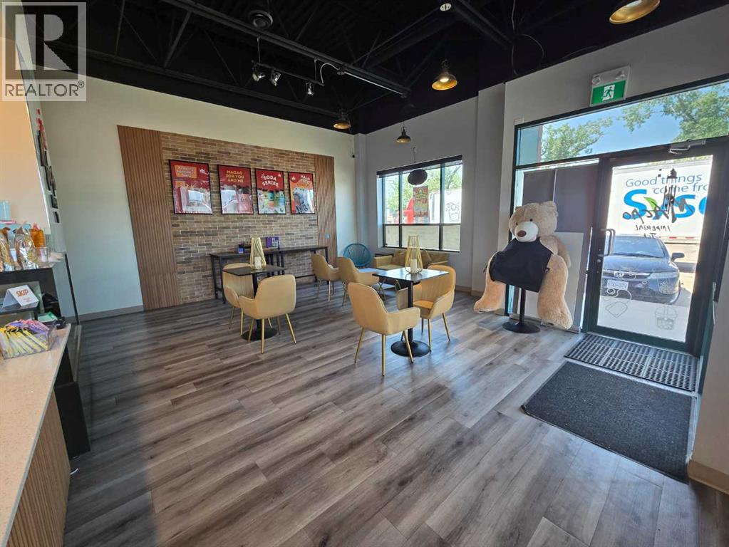 This 1,210 SF unit, located on the South Hill, is available for sub-lease. The unit features a front retail area, a built-in counter with an area behind the counter that has two sinks, one office, a back prep area with another sink, a storage room, and one washroom. This unit was built out for beverage service with high end finishing throughout, and the location offers excellent visibility from 50th (Gaetz) Avenue. Neighbouring businesses include Popeye's Supplements, Arrae Patisserie, Tribe Beauty Salon, and Papa John's. (id:53676)
