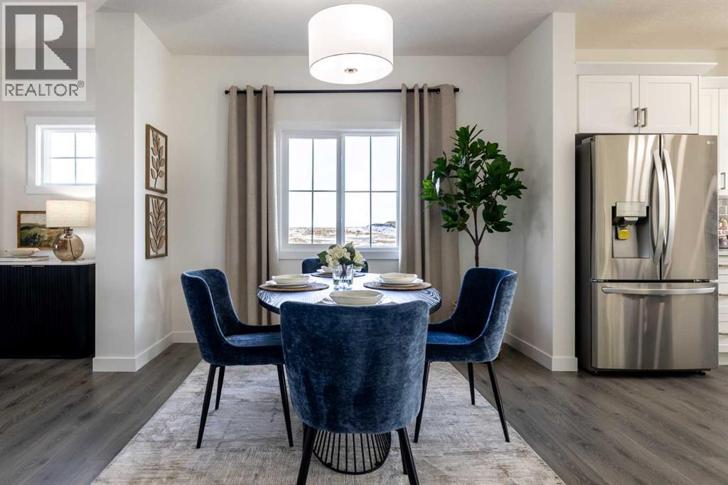 Tucked into Calgary’s scenic southwest, Pine Creek is a thoughtfully designed community that blends natural beauty with modern convenience. Surrounded by the rolling foothills and just minutes from Fish Creek Park, residents enjoy peaceful walking trails, wetlands, and mountain views right outside their doors. With quick access to Macleod Trail, Stoney Trail, and the Somerset/Bridlewood LRT station, commuting is seamless. Nearby amenities like Township Centre, Silverado Shopping Centre, and Spruce Meadows offer shopping, dining, and entertainment options. Whether you're raising a family or seeking a tranquil retreat, Pine Creek offers a balanced lifestyle rooted in nature and community. Spanning approx. 1613 SQFT, this home offers a SIDE ENTRANCE, thoughtfully designed layout and modern features. As you step inside, you'll be greeted by an inviting open concept main floor that seamlessly integrates the living, dining, and kitchen areas. Abundant natural light flowing through large windows highlights the elegant laminate and vinyl flooring, creating a warm atmosphere for daily living and entertaining. Upstairs, you'll find a bonus room + 3 bedrooms that provide comfortable retreats for the entire family. The primary bedroom is a true oasis, complete with an en-suite bathroom for added convenience. **PLEASE NOTE** PICTURES ARE OF SHOW HOME; ACTUAL HOME, PLANS, FIXTURES, AND FINISHES MAY VARY AND ARE SUBJECT TO CHANGE WITHOUT NOTICE. SOME PHOTOS ARE VIRTUALLY STAGED. (id:53676)