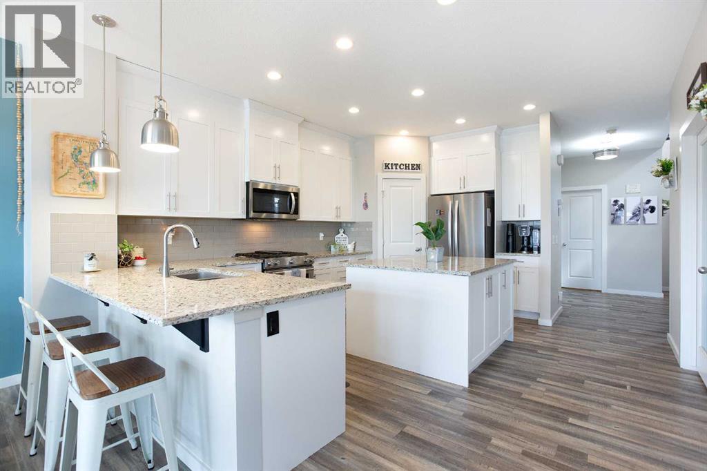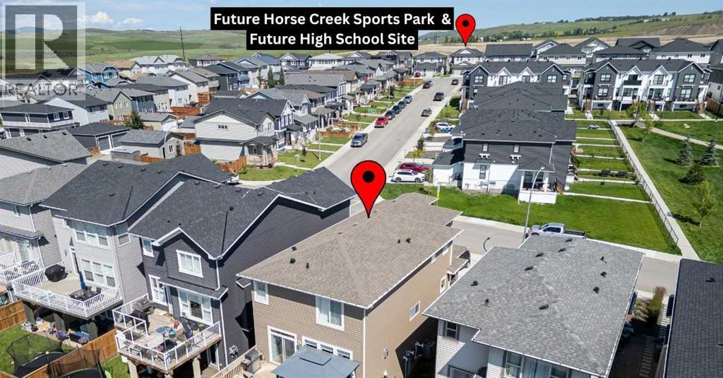 Welcome to your dream home in the sought-after community of Heritage Hills, Cochrane! This stunning front double attached garage residence offers a perfect blend of style, comfort, and breathtaking views. Ideally located across from a beautiful park, this home comes with gorgeous mountain views. Moreover, it also sits close to the Future HORSE CREEK SPORTS PARK and Future HIGH SCHOOL.Step inside and be greeted by high ceilings and an open-concept layout designed for both entertaining and everyday living. The gourmet kitchen features granite countertops, a large island and breakfast bar, seamless flow to the dining and living areas. From here, step out onto the spacious balcony—complete with GAZEBO—where you can soak in the gorgeous ROCKY MOUNTAIN VIEWS.This NORTH - FACING home backs onto a quiet back lane and offers total of 4 bedrooms, den plus a bonus room. The PRIMARY SUITE boasts a walk-in closet and a spa-inspired ensuite with spectacular mountain views from both the bedroom and bathroom windows. The bonus room overlooks the park and green space, creating a bright and relaxing retreat.The MAIN FLOOR includes a spacious den, mudroom, laundry, and powder room. The FINISHED WALKOUT BASEMENT features additional living room, rec room, full bathroom and a wet bar, making it perfect for gatherings. Additional upgrades include a HOT TUB and CENTRAL AIR CONDITIONING.Enjoy endless walking paths and QUICK ACCESS to Hwy 1A, commercial plazas with restaurants, GYM, pharmacy, gas station, DAYCARE, and more. Unlike some nearby communities, Heritage Hills is located AWAY from the train tracks so you can enjoy true PEACE and have quiet time.COME HOME to mountain views, peace, and unmatched convenience—this is Cochrane living at its finest. Book your showing today. (id:53676)