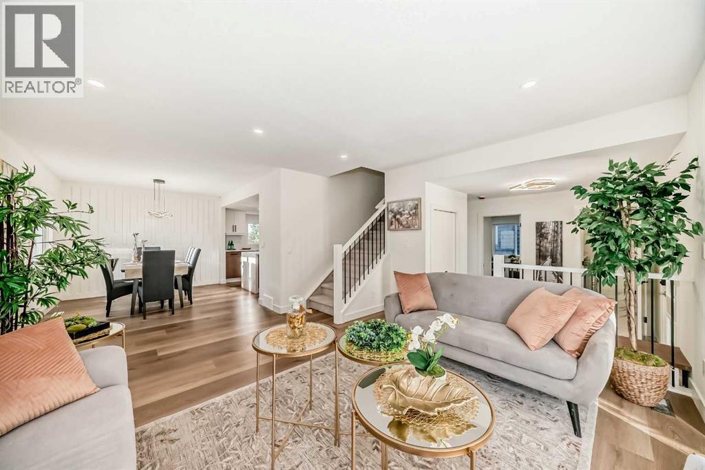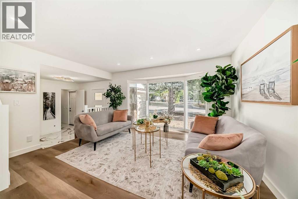 ** OPEN HOUSE: Thursday, October 9th 2:30-4:30pm and Sunday, October 12th 1-3pm ** Welcome to 19 Ranch Estates — a newly renovated home in a charming, established neighbourhood that truly offers the best of both worlds. Enjoy quiet, tree-lined streets within walking distance to parks and corner stores, with easy access to main roads for a quick commute while still tucked away from the traffic.Inside, a complete renovation combines modern style with classic warmth. The main floor features a spacious kitchen with a large island and brand-new appliances, a cozy living room with a fireplace and balcony access, plus a bedroom, half bath, and a double attached garage.Upstairs, you’ll find three bright bedrooms, including a generous primary suite with a private balcony, and beautifully updated ensuite. The two secondary bedrooms share a connecting balcony and a renovated full bathroom, making it a perfect setup for families.The fully finished walkout basement includes a separate entrance, an additional bedroom, a wet bar with bar fridge, and plenty of storage. Outside, enjoy mountain views, an apple tree, and a spacious backyard ideal for gardening or entertaining. (id:53676)