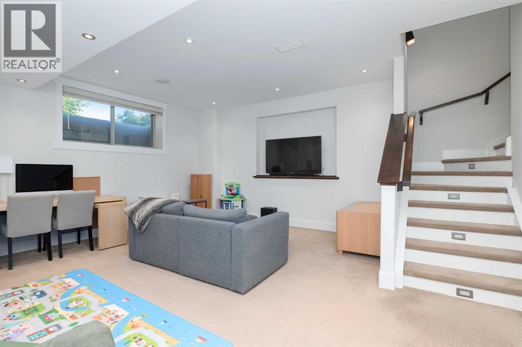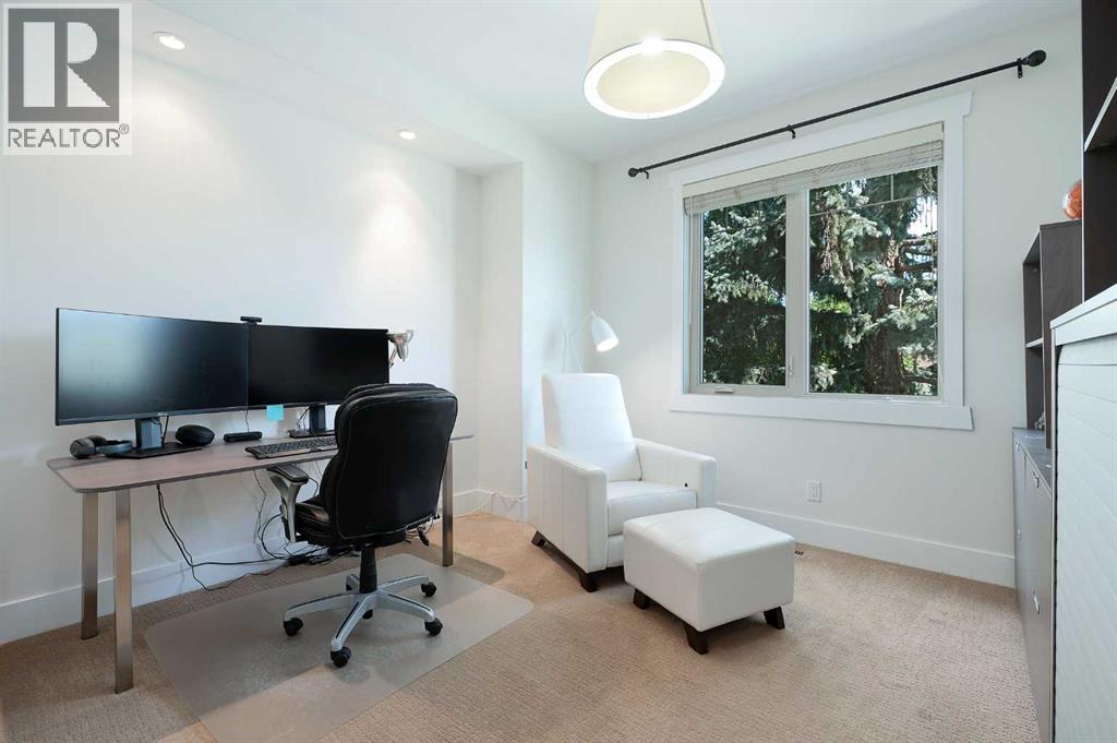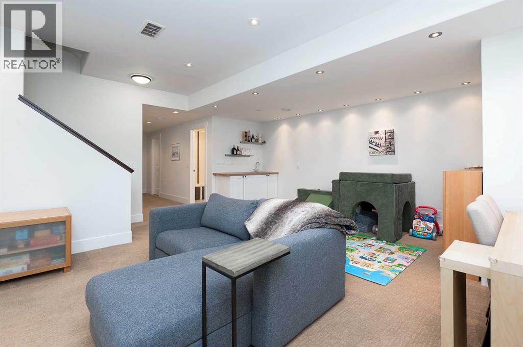Beautifully crafted and meticulously maintained 3+1 bedroom home with low maintenance SUNNY SOUTH BACK YARD in coveted South Calgary, offering over 2900 sq ft of developed living space! The open main level presents luxury vinyl plank flooring, high ceilings & stylish light fixtures, showcasing the front living room, comfortable family room with feature fireplace & kitchen that’s tastefully finished with granite counter tops, island/eating bar, dark cabinetry & stainless steel appliances, including new fridge, dishwasher, oven & microwave. A spacious dining area is open to the kitchen with ample space to host family & friends. A 2 piece powder room completes the main level. The second level hosts a casual office area, perfect for a home office setup, 3 bedrooms, a 4 piece bath & laundry room with sink plus new washer & dryer. The primary bedroom provides enough space for a cozy sitting area & boasts a walk-in closet & secluded 5 piece ensuite with heated floors, dual sinks, relaxing soaker tub & separate shower. Basement development features a large family/media room with wet bar, fourth bedroom, a 4 piece bath & good sized storage room. Other notable features include central air conditioning, new hot water tank, upgraded in-floor heating system, central vacuum system & electronic air filtration system. Outside, enjoy the attractively landscaped front yard & sunny south private back yard with stamped concrete patio, low maintenance artificial grass for extended seasonal use & access to the double detached heated garage with polyurethane coated floor & overhead storage. This charming home is located close to vibrant Marda Loop, schools, shopping, public transit & has effortless access to 26th Avenue & Crowchild Trail. (id:53676)