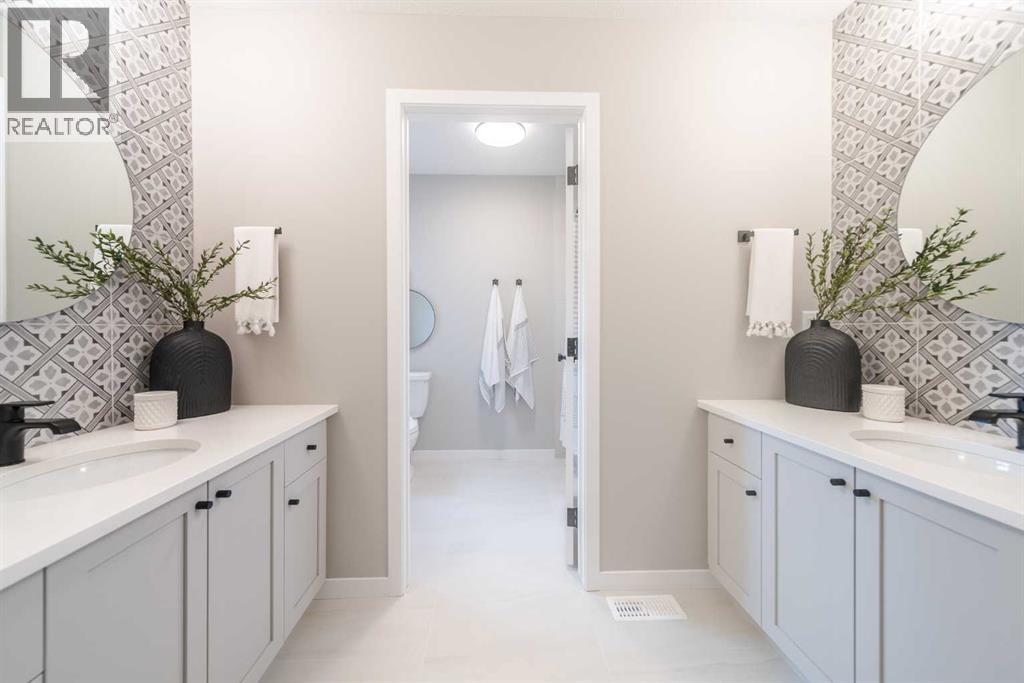 FORMER SHOW HOME ALERT | Nestled in the vibrant, family-friendly community of Livingston, this former Cedarglen Homes show home is the definition of style, function, and craftsmanship. Offering a fully developed legal basement suite, and designer upgrades at every turn, this home is truly one of a kind. Step inside and immediately feel the warmth and sophistication that define this property. The main floor features an open-concept layout with soaring 8' interior doors, glass railing, and luxury vinyl plank flooring that flows seamlessly throughout. The living room steals the spotlight with a vertical shiplap feature wall framing a tiled electric fireplace, creating the perfect blend of modern and cozy. The chef’s kitchen is both stunning and functional, showcasing quartz countertops, two-tone cabinetry, a large central island, and a full working kitchen for extra prep and storage. The dining nook opens onto your oversized deck, perfect for hosting summer BBQs or enjoying quiet mornings in the sun. A main floor bedroom and full bath offer flexibility for guests, an office, or multi-generational living. Upstairs, the design continues to impress. The primary retreat is a true sanctuary featuring a spa-inspired ensuite with a custom tiled shower, soaker tub with tile ledges, and dual sinks, all finished with quartz countertops. The walk-in closet connects directly to the laundry room, making everyday life effortless. Two additional bedrooms each feature their own walk-in closets, and a bonus room plus a built-in desk area provide the perfect spaces for work, play, or relaxation. The fully finished legal basement suite offers even more possibilities - complete with a separate kitchen, living area, bedroom, and full bathroom. This space is ideal for extended family, guests, or rental income. Every inch of this home reflects thoughtful design and quality finishes from upgraded hardware and lighting to its seamless blend of comfort and modern flair. Outside, enjoy your comp leted oversized deck, perfect for entertaining or taking in the peaceful surroundings of Livingston - one of Calgary’s most dynamic new communities. Residents here enjoy access to the Livingston Hub, a state-of-the-art community centre featuring a skating rink, splash park, gymnasium, tennis courts, and event spaces. You’ll also love the parks, pathways, and playgrounds woven throughout the neighbourhood, plus quick access to Stoney Trail and Deerfoot Trail. If you’ve been searching for a home that combines designer elegance, practical functionality, and unbeatable value, this is it. Move-in ready, meticulous craftsmanship, and absolutely stunning - this Cedarglen show home is ready to welcome its next owner. Book your private showing today and experience what life in Livingston has to offer. (id:53676)
