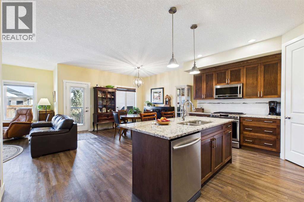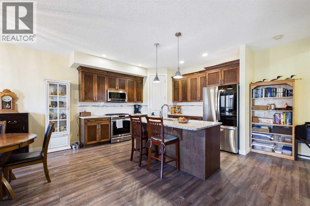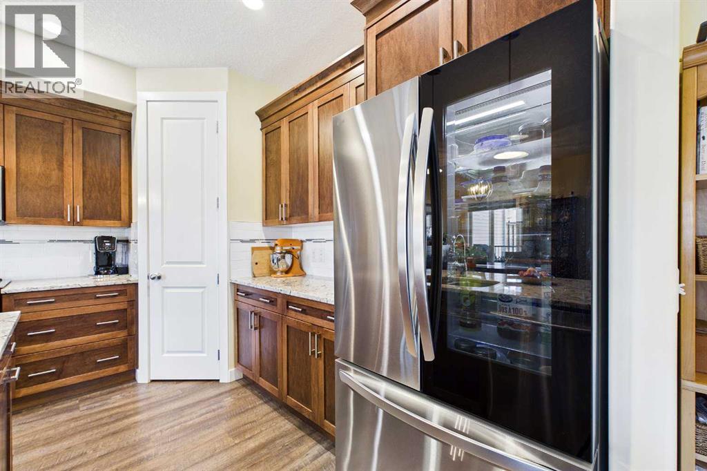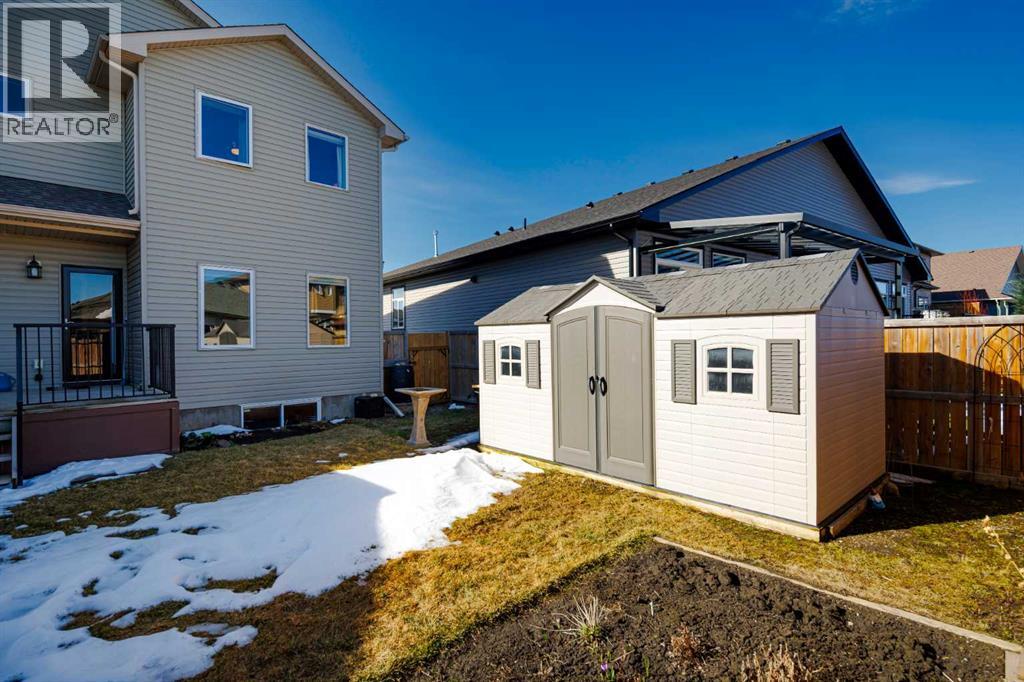 AN EXCEPTIONAL ONE OWNER SPACIOUS HOME ON A QUIET STREET IN SOUGHT AFTER HIGHWOOD VILLAGE! THIS OUTSTANDING HOME WAS BUILT IN 2016 AND NOT LOCATED IN THE FLOOD ZONE. An immaculate bright and spacious home. Large inviting foyer with sitting area and double door closet. Direct access to the two-piece bathroom and the insulated double attached garage. Stylish luxury vinyl plank flooring runs throughout this well-designed 2089 sq. ft. home with the perfect layout. The spacious living room features large windows that overlook the back yard, with an elegant black slate gas fireplace and provides clear views to the kitchen and dining area. You will love this large kitchen with upgraded stainless-steel appliances. Gas range and new L.G. French door fridge with freezer drawer. Elegant granite counters with tile backsplash, upgraded cabinets with crown mouldings, lots of drawers for storage and the large walk-in a large pantry with automated lighting. Large 81” granite island with eating bar, double sinks and dishwasher, perfect when entertaining or food prep. An additional granite counter makes the perfect coffee station. Spacious dining room is perfect for your full dining suite including room for a sideboard. Access to the raised back deck with stairs to the fenced yard, lawn and garden area with large new shed. This private deck offers a great space for relaxing and entertaining. An expansive primary retreat has room for all your bedroom furniture plus includes a large walk-in closet and a huge 13’1’x10’5” 4-piece en-suite bathroom with double granite vanities and oversize walk-in shower. Two additional bedrooms, each with two windows and large closet space. Upper level 4-piece bathroom with soaker bathtub/shower combo and double door linen /towel storage. Convenient upper floor laundry room with full size upgraded washer and dryer, granite counter, sink and lower storage cabinet, plus an additional walk-in storage area. The unfinished basement offers you a huge open s pace, egress window and roughed in plumbing - ready for your future development. A sought-after location in High River where you can walk to Notre Dame Collegiate School. High River offers golf, dining, shopping, excellent schools and the High River Hospital. You will love the Rodeo’s plus many other community events and services. Easy drive to Okotoks, Calgary and west to Kananaskis Country. * Please check out the drone video** (id:53676)