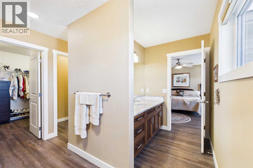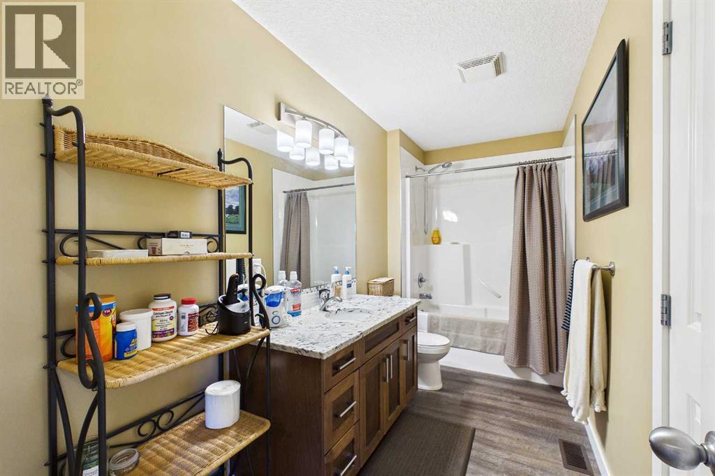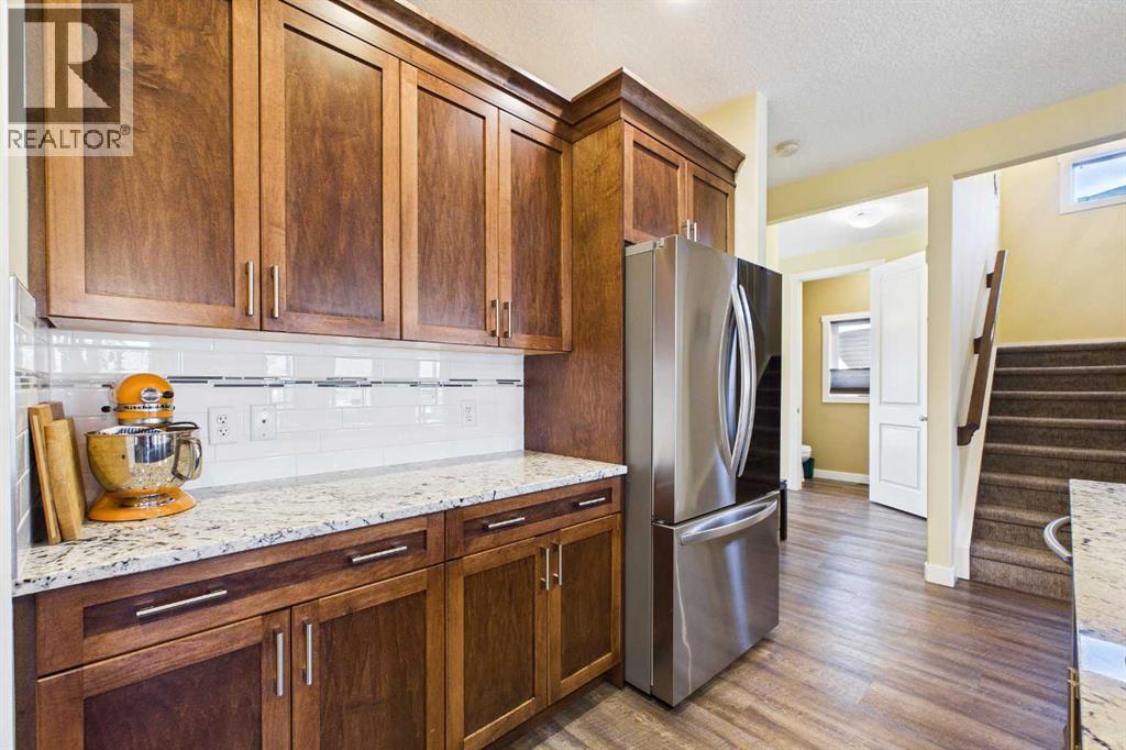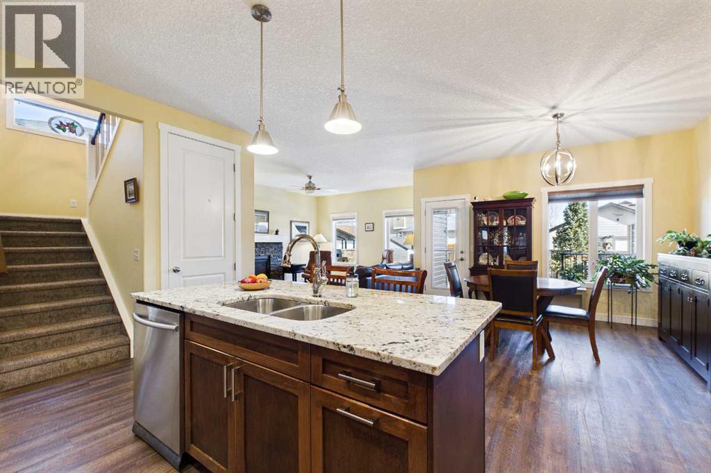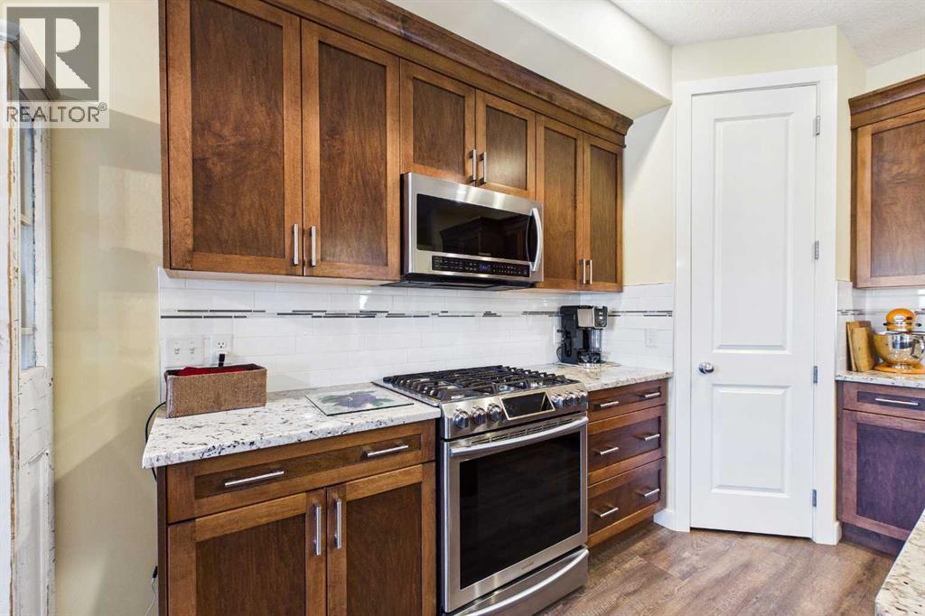 AN EXCEPTIONAL ONE OWNER SPACIOUS HOME ON A QUIET STREET IN SOUGHT AFTER HIGHWOOD VILLAGE! THIS OUTSTANDING HOME WAS BUILT IN 2016 AND NOT LOCATED IN THE FLOOD ZONE. An immaculate bright and spacious home. Large inviting foyer with sitting area and double door closet. Direct access to the two-piece bathroom and the insulated double attached garage. Stylish luxury vinyl plank flooring runs throughout this well-designed 2089 sq. ft. home with the perfect layout. The spacious living room features large windows that overlook the back yard, with an elegant black slate gas fireplace and provides clear views to the kitchen and dining area. You will love this large kitchen with upgraded stainless-steel appliances. Gas range and new L.G. French door fridge with freezer drawer. Elegant granite counters with tile backsplash, upgraded cabinets with crown mouldings, lots of drawers for storage and the large walk-in a large pantry with automated lighting. Large 81” granite island with eating bar, double sinks and dishwasher, perfect when entertaining or food prep. An additional granite counter makes the perfect coffee station. Spacious dining room is perfect for your full dining suite including room for a sideboard. Access to the raised back deck with stairs to the fenced yard, lawn and garden area with large new shed. This private deck offers a great space for relaxing and entertaining. An expansive primary retreat has room for all your bedroom furniture plus includes a large walk-in closet and a huge 13’1’x10’5” 4-piece en-suite bathroom with double granite vanities and oversize walk-in shower. Two additional bedrooms, each with two windows and large closet space. Upper level 4-piece bathroom with soaker bathtub/shower combo and double door linen /towel storage. Convenient upper floor laundry room with full size upgraded washer and dryer, granite counter, sink and lower storage cabinet, plus an additional walk-in storage area. The unfinished basement offers you a huge open s pace, egress window and roughed in plumbing - ready for your future development. A sought-after location in High River where you can walk to Notre Dame Collegiate School. High River offers golf, dining, shopping, excellent schools and the High River Hospital. You will love the Rodeo’s plus many other community events and services. Easy drive to Okotoks, Calgary and west to Kananaskis Country. * Please check out the drone video** (id:53676)