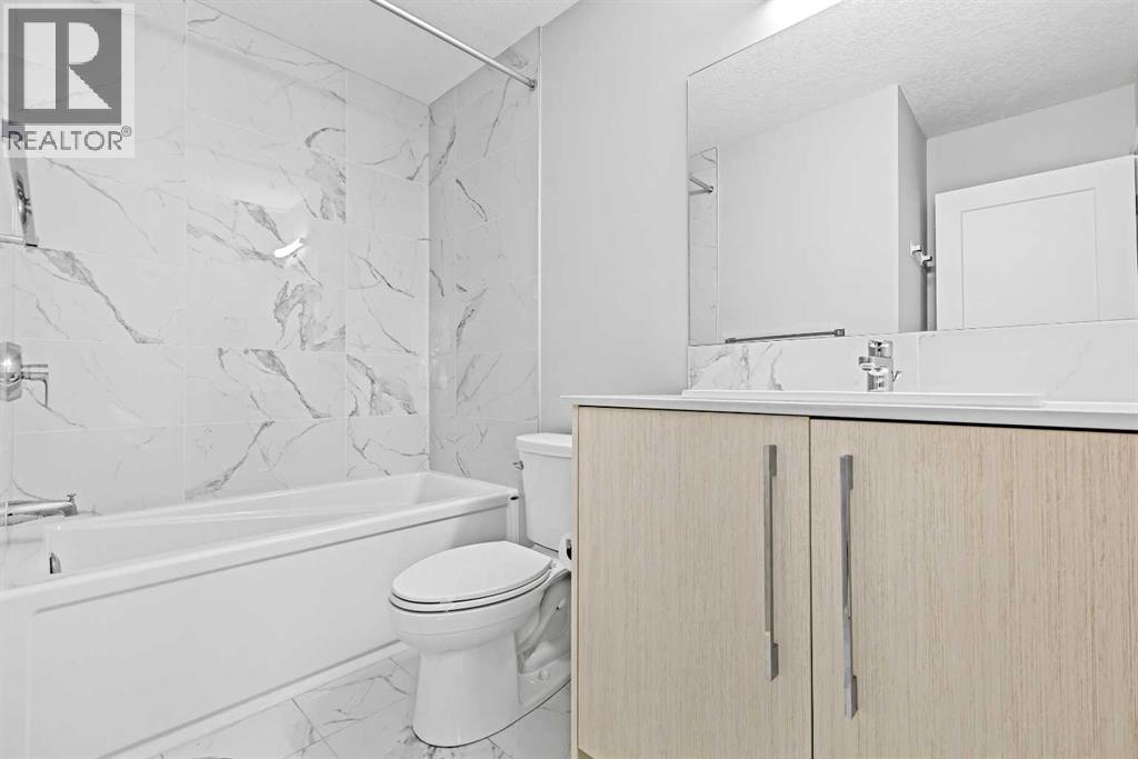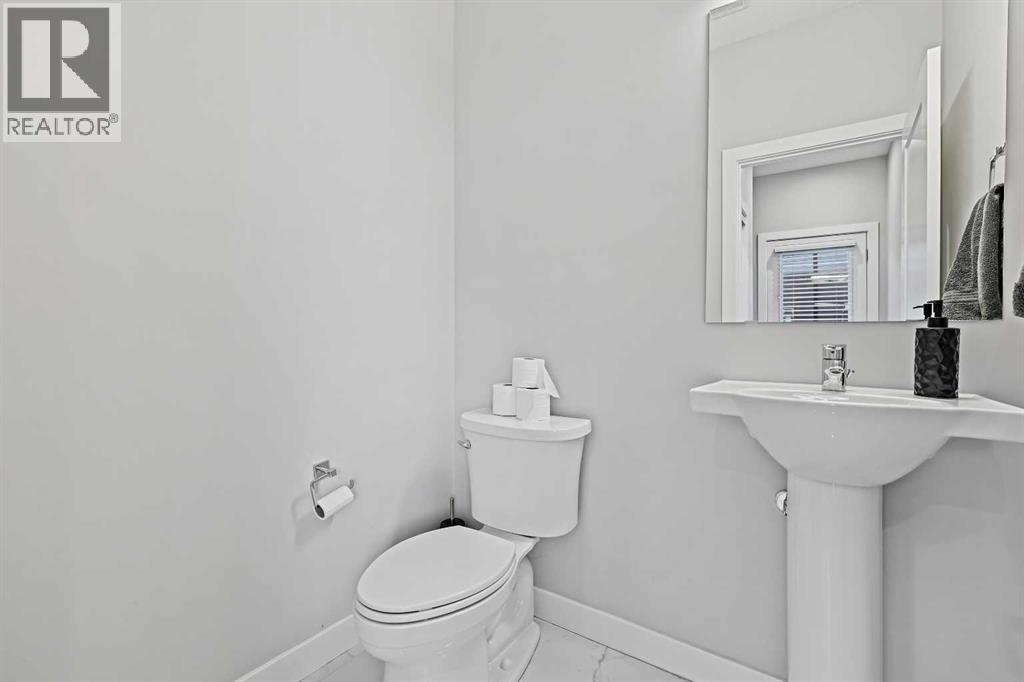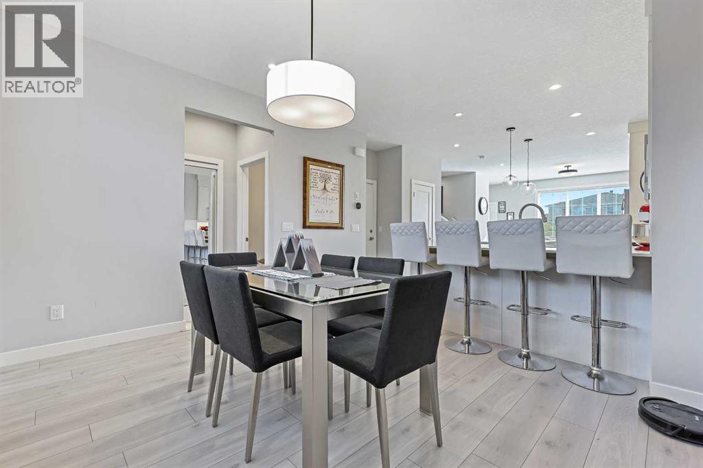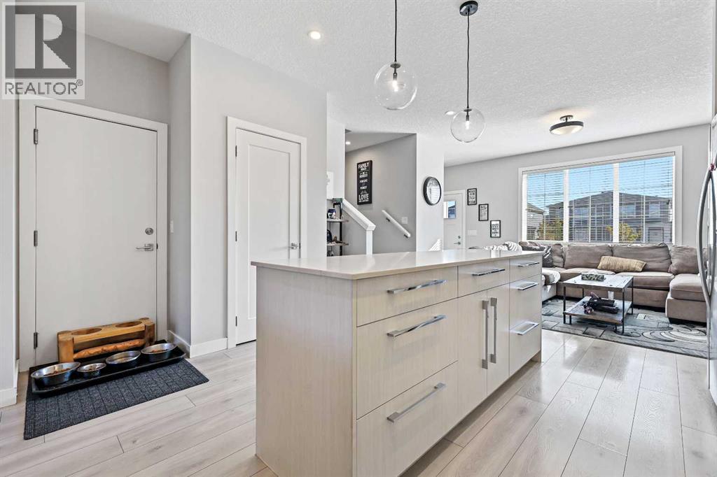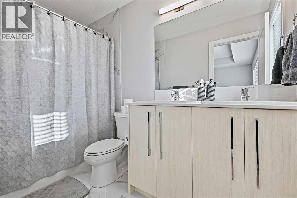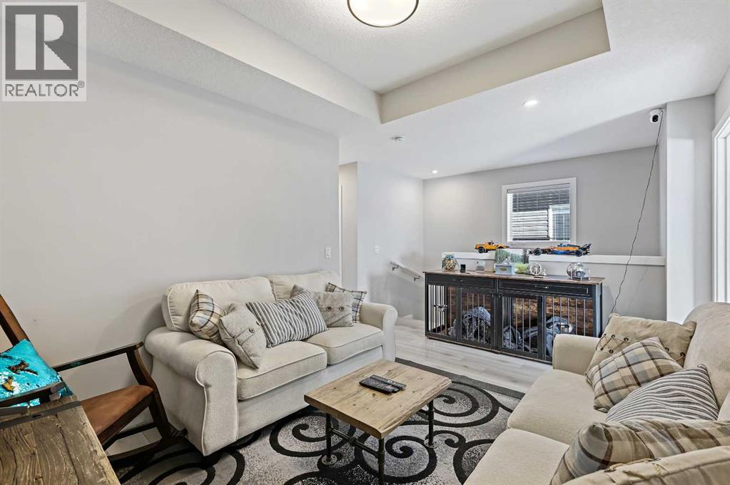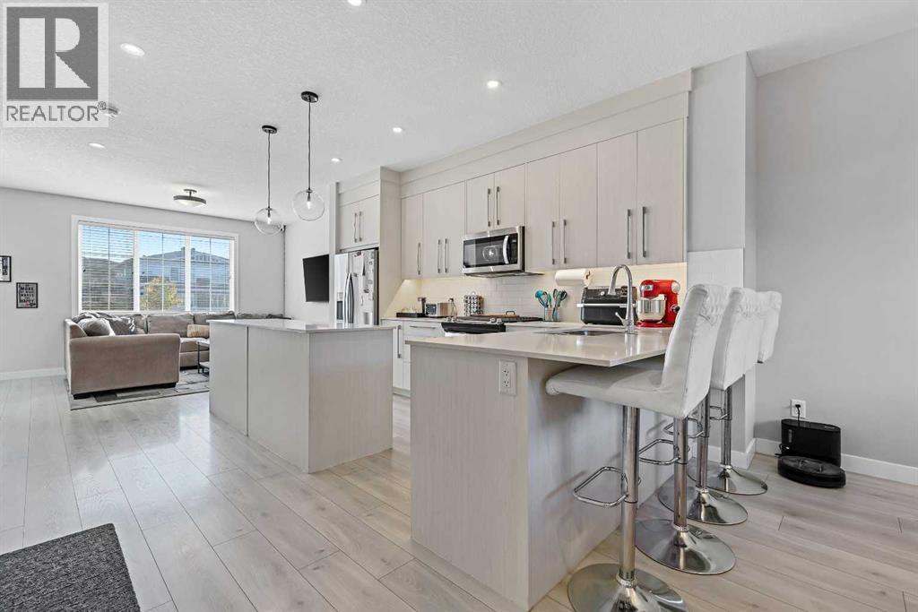 INVESTOR ALERT! Legal Suited Duplex in a prime location across from shopping center and steps to park. Instant add to your portfolio and instant rental income with upper floor tenants in place! Basement is currently vacant and move in ready! Great opportunity to live for basically free. This attached home features over 2300 sq ft of developed space and high end finishings throughout. As you enter the open concept floorplan you are greeted by luxury vinyl plank flooring throughout the large living room/dining room. Gorgeous kitchen with custom cabinetry, upgraded stainless steel appliances, tile backsplash, large center island, and access door to back deck. Head upstairs to the central bonus room which makes a great kids play area/TV room. Spacious master bedroom with walk-in closet and ensuite bathroom with tile flooring, quartz counters and walk-in shower. Good sized 2nd and 3rd bedrooms with another adjoining full 4-piece bathroom and convenient upper floor laundry complete this well laid out upper floor. Head down to the fully finished legal basement suite with vinyl plank in the living room/dining room. Another stunning kitchen finished to the same quality of the main floor! Spacious bedroom with walk-in closet, adjoining 4-piece bathroom, and separate full-size front-loading laundry. Fully fenced and landscaped backyard and a double detached garage. This great opportunity is in a location that offers quick access to parks, schools, shopping, and major roadways like Macleod Trail and Stoney Trail. A perfect blend of quality, functionality, and income potential in one of Calgary’s newest communities. (id:53676)