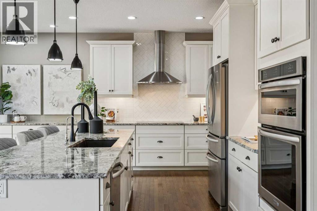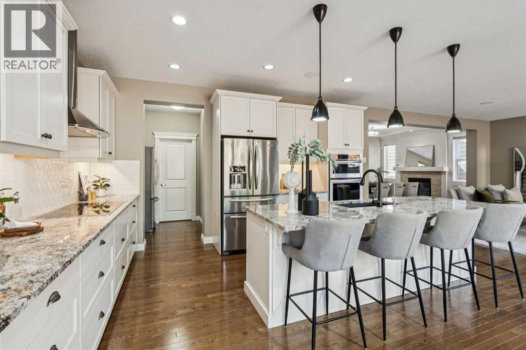Nestled in Auburn Bay, one of Calgary's best lake communities, awaits your 2893 SF move-in ready executive home. With 4 bedrooms, 3 full baths, and a quiet location - this is the perfect family home. Upon entering the expansive foyer, you are greeted by a striking CURVED STAIRCASE & gorgeous hardwood floors. The open floor plan is spacious and well designed, featuring many tasteful upgrades throughout, including a DEDICATED OFFICE SPACE, a FULL BATHROOM ON THE MAIN FLOOR, and a SPICE KITCHEN. The show stopping kitchen is truly the heart of this home, featuring classic white cabinetry, granite countertops, and an executive suite of stainless steel appliances. With a custom countertop extension along the full length of the wall and an oversized island, this is certainly a chef’s kitchen. Enjoy cozy breakfasts looking out onto the manicured backyard, and large family gatherings by the GAS FIREPLACE. Passing through to the mud room, you’ll find the spice kitchen with a SECOND FULL-SIZED FRIDGE plus an impressive WALK-IN PANTRY. Travelling up the spiral staircase, you’ll be greeted by a large, light-filled bonus room. Completing this level are two generously sized bedrooms, an UPPER FLOOR LAUNDRY ROOM, main bathroom, and the primary retreat overlooking the backyard. The primary bedroom is spacious and comes complete with a spa-like ensuite bathroom, including a soaker tub, stand up shower, and walk-in closet. The lower level features a large recreation space and a bedroom, plus a huge storage area (with plenty of space for a future bathroom). The back and front yards were carefully designed with low maintenance landscaping including turf lawn and flower beds. With a freshly painted pergola and large deck, there’s no shortage of space to entertain! You and your guests will have ample parking - with a DOUBLE ATTACHED GARAGE, full driveway, and extra street parking opposite the home. Special features include: TWO FURNACES, AIR CONDITIONING, EXTRA PLUSH CARPET, SLOW CLOSE C ABINETRY, REVERSE OSMOSIS WATER, and OUTDOOR SPEAKERS. Homeowners in Auburn Bay enjoy YEAR ROUND LAKE PRIVILEGES. Spend summer days at the sandy beach swimming and paddle boarding, and winter nights skating under the Christmas lights. The residents association hosts many fun family events and activities, fostering a sense of belonging and community. Move in and start making memories! Auburn Bay is a smart area to invest in with excellent access to all amenities in Seton, and close proximity to the South Health Campus. Call your Realtor for a private viewing! (id:53676)