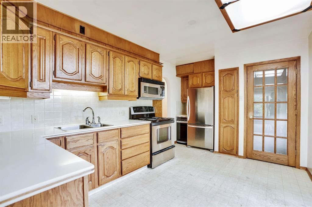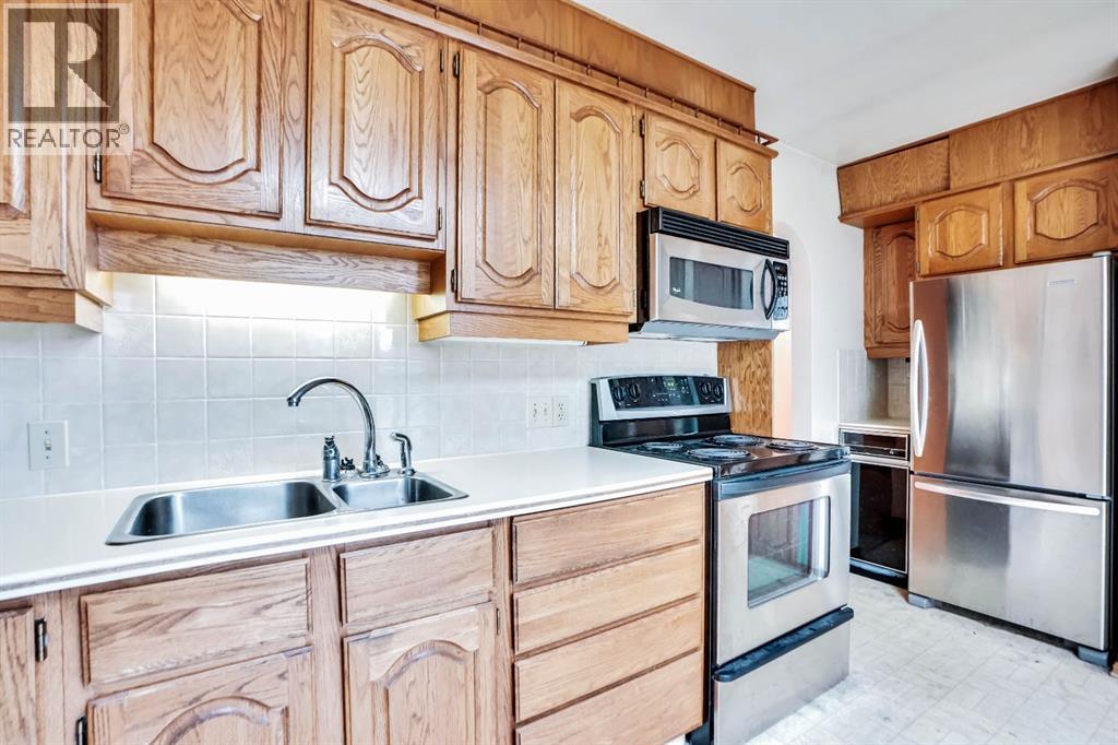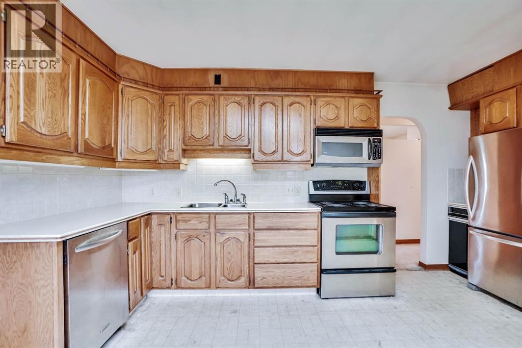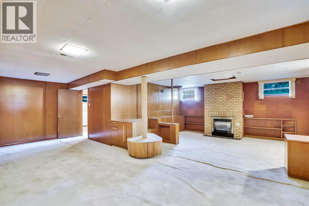 Nestled in the well-established community of Glendale and set on a generous 7,179 sq ft corner lot, this beautifully maintained 1950's bungalow offers incredible potential to become your ideal family home. Originally a 3-bedroom layout, one bedroom has been thoughtfully converted into a cozy den or home office. The main floor features spacious living and dining areas, a bright kitchen with stainless steel appliances, two comfortable bedrooms, and a charming 3-piece bathroom with classic 1950s retro tile. The fully developed basement includes a large family room with a fireplace, a versatile den/flex room, a 4-piece bathroom, and a dedicated laundry area. Outside, you'll love the mature trees in the front yard and the expansive backyard with a patio, perfect for outdoor gatherings, plus a double detached garage for added convenience. Ideally located near parks, schools, shopping, public transit, and offering easy access to both 17th Avenue and Sarcee Trail. (id:53676)