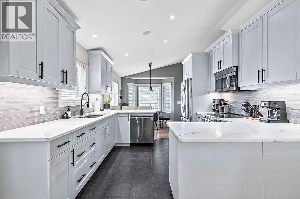 Luxury Living with Exceptional Versatility – A Rare OpportunityWelcome to this beautifully appointed bungalow, where style, comfort, and functionality come together in perfect harmony. Designed to impress, this spacious home offers elegant living on the main level and a thoughtfully designed illegal suite in the walk-out basement — ideal for multigenerational living, guests, or supplementary income. Main Floor Elegance: vaulted ceilings and a stunning gas fireplace anchor the sophisticated family room. Open-concept kitchen and dining area with seamless access to a large, elevated deck complete with a gas BBQ hookup. The chef’s kitchen is a standout feature, complete with professionally painted cabinetry, newer upgraded stainless steel appliances, rich quartz countertops, under-cabinet lighting, a large peninsula with seating, and direct access to the expansive deck with a gas BBQ hookup perfect for indoor/outdoor living. Three generously sized bedrooms offering comfort and privacy, Main floor laundry for added convenience, Integrated surround sound system throughout , Central air conditioning for year-round comfort Outdoor Excellence: Impressive 28' x 26' heated double garage with hot water in-floor heating, 220V power, built-in shelving, and cabinetry. A dream for hobbyists or car enthusiasts. Additional parking beside the garage, perfect for an RV, boat, or multiple vehicles Private yard with direct access from the deck, ideal for entertaining or relaxing in peace. Lumenox custom exterior lighting enhances both curb appeal and security. Walk-Out Lower Level: Large family room that can serve as part of the main home or be closed off for suite privacy. Beautifully finished illegal one-bedroom suite with private access from both inside and outside. Full kitchen, open-concept living and dining area, spacious bedroom, modern bathroom, and private laundry. Enjoy the comfort of hot water in-floor heating throughout the basement. Noteworthy Upgrades: New furnace and HRV unit (2023). New hot water tank (2025). Water softener system. This is more than a home — it's a lifestyle. With premium finishes, extensive upgrades, and a flexible layout tailored for modern families or those seeking a luxurious investment opportunity, this property truly stands out. (id:53676)