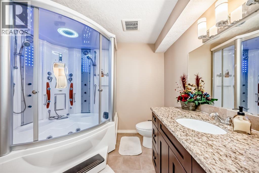 Find Your Dream Home in the Sought-After Community of Rainbow Falls, Chestermere!Located on a quiet, family-friendly street just steps from parks and green spaces, this beautifully maintained CORNER-LOT home offers the perfect blend of space, style, and functionality. Boasting OVER 3000 sq ft of developed living space, this 5-BEDROOM 3.5-bathroom home with a massive 21x28 insulated TRIPLE GARAGE is move-in ready and ideal for modern family living. From the moment you step inside, you’ll be greeted by the sunny open-concept living area and warm hardwood floors. The main level includes a versatile FLEX ROOM, perfect for a home office, playroom, or creative studio - ideal for remote workers or busy households needing flexible space. Moving forward, you'll find the living room, kitchen, and dining nook which come together seamlessly to create a cozy and welcoming environment. The spacious living room is anchored by a GAS FIREPLACE - the perfect place to gather with family or curl up with a good book. The heart of the home is the chef-inspired kitchen complete with a granite island and spacious pantry. Laundry room is conveniently located on the main floor too. Upstairs, the spacious primary suite features a generous walk-in closet and a luxurious 5-piece ensuite complete with dual vanities, a deep soaker tub, and a separate shower. You’ll also find THREE ADDITIONAL BEDROOMS and a finished full bathroom, perfect for growing families.The fully developed basement offers a LARGE RECREATION ROOM—ideal as a home theatre or games area—plus a FIFTH BEDROOM and a stylish 3-piece bathroom providing a comfortable and private space for guests, teenagers, or extended family. This floor also features a MASSIVE MULTIFUNCTIONAL JET SHOWER and a storage spaceStep outside to enjoy the sun-drenched backyard, ideal for outdoor dining, summer barbecues, or simply relaxing in the sun. The covered FRONT VERANDA adds charm and curb appeal—a perfect spot for your morning coffee or e vening unwind.STUCCO SIDING, NEWER WATER TANK (2019) AND FURNACE (2023)Don’t miss your chance to see this exceptional property—book your showing today! (id:53676)