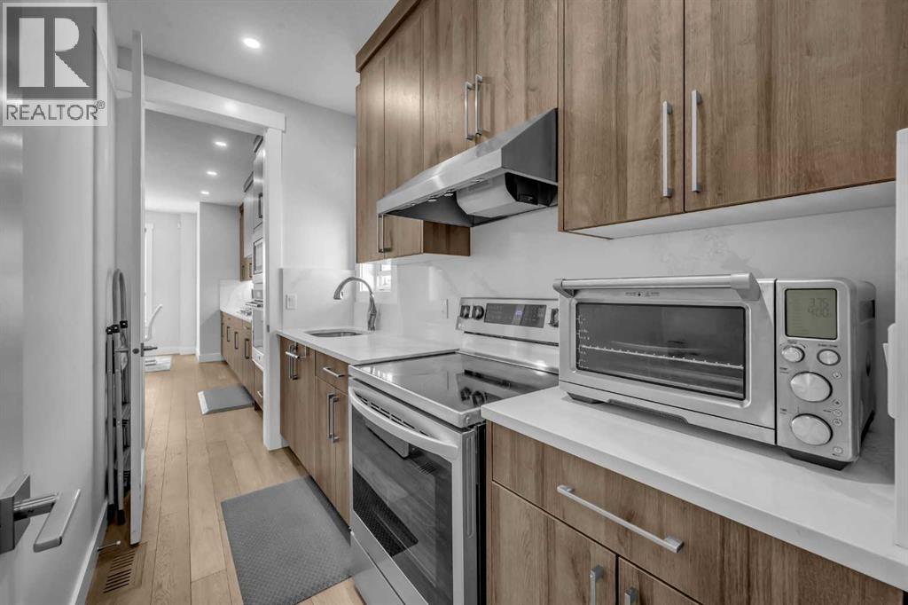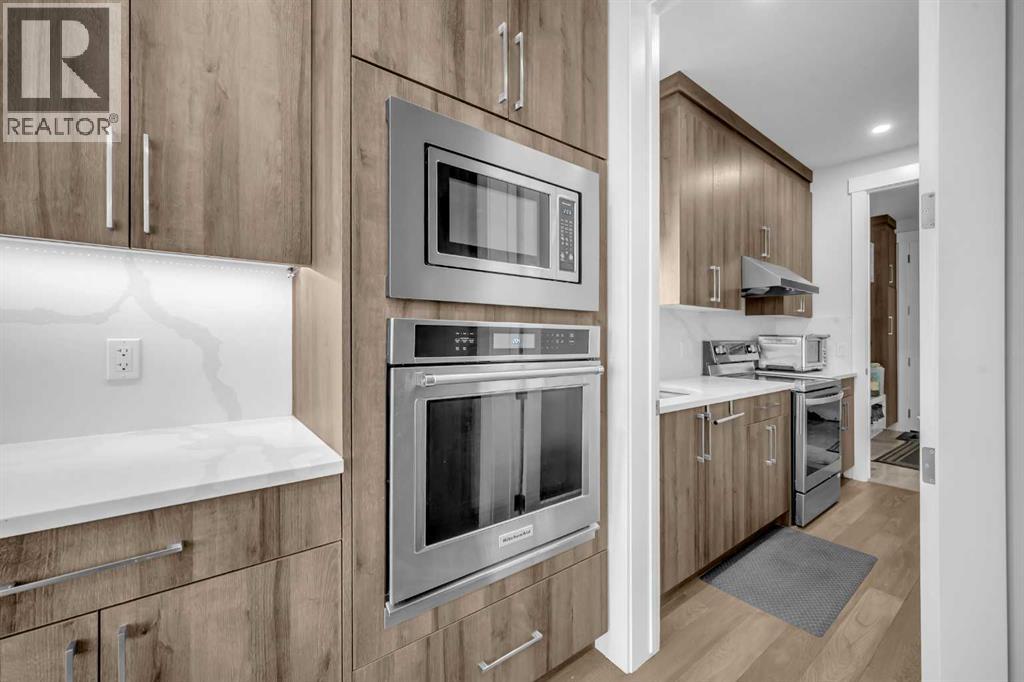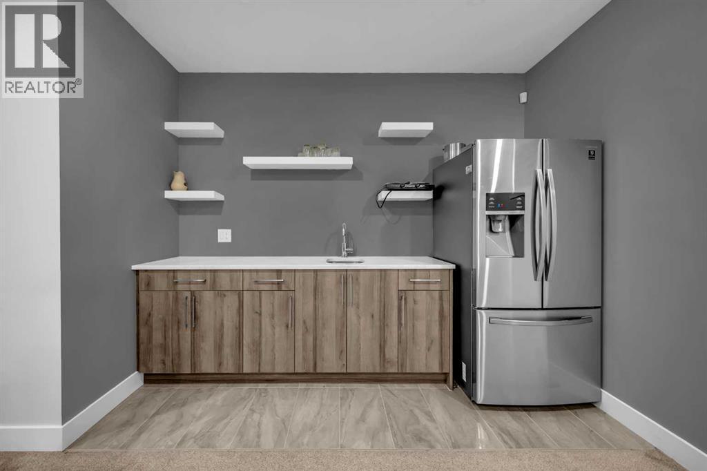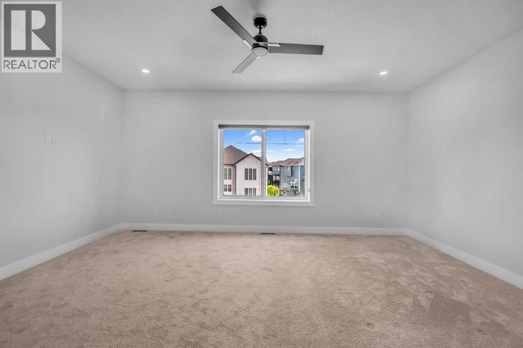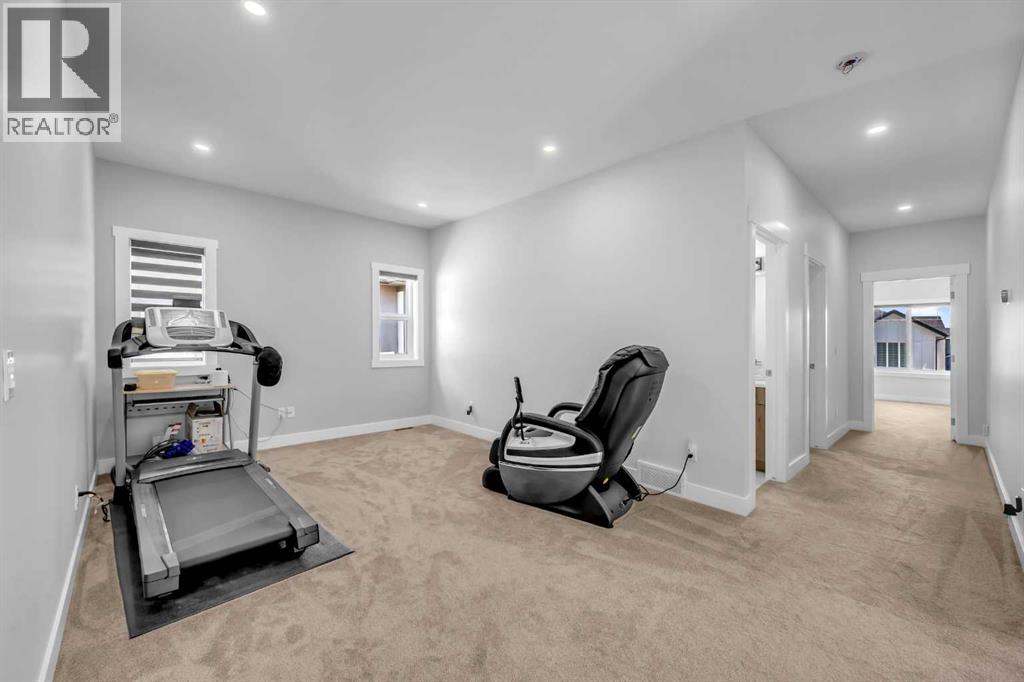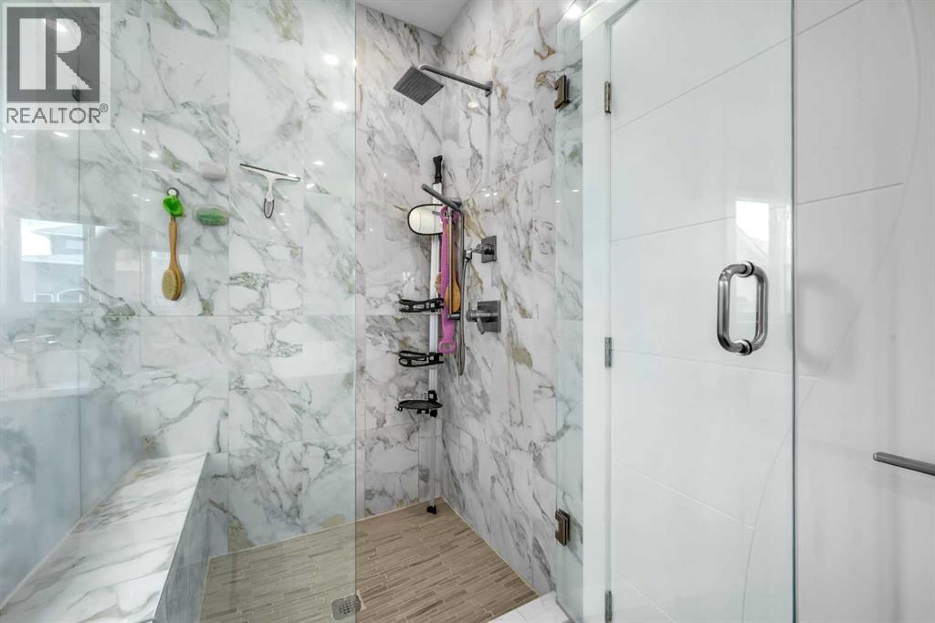 Welcome to this exceptional luxury estate nestled in the highly sought-after Kinniburgh community of Chestermere. This meticulously crafted home offers the perfect blend of sophistication, comfort, and modern convenience, making it the ideal retreat for discerning buyers. With 9ft ceilings on every floor, this home exudes a sense of spaciousness throughout. From the moment you arrive, you'll be captivated by the striking stucco exterior that exudes timeless elegance. The attached triple garage provides ample space for vehicles and additional storage. The property is fully landscaped both front and back, creating an inviting and picturesque setting. The backyard is a true oasis, featuring an exposed concrete patio, perfect for outdoor entertaining, barbecues, or simply enjoying the tranquility of your private retreat. Step through the grand entrance and be greeted by a spacious living room, enhanced by the soaring 9ft ceilings. The seamless flow takes you into the formal dining room, an ideal space for hosting family gatherings and dinner parties. The heart of the home is the expansive family room, where a beautifully centered fireplace serves as the focal point, flanked by custom-made shelving. The gourmet kitchen is a chef’s dream, featuring cabinetry that extends to the ceiling, offering abundant storage space. High-end built-in appliances, including a gas stove, ensure that cooking is both a pleasure and an art. Adjacent to the main kitchen is a fully equipped spice kitchen, perfect for preparing more aromatic or intricate dishes. The spice kitchen leads directly into the mudroom, providing a practical transition space when coming in from the garage. For added convenience, the main level includes a well-appointed 2-piece bathroom. However, if desired, this space can easily be converted into a 3-piece bathroom by extending into the mudroom. Upper level you’ll find four generously sized bedrooms, each thoughtfully designed to provide a peaceful retreat. The 9ft ce ilings continue on this level, enhancing the sense of openness and luxury. The bonus room offers additional living space, perfect for a play area, home office, or media room. Two of the bedrooms are exquisite primary suites, each offering its own private ensuite bathroom. The larger of the two primary suites is a true sanctuary, featuring a spa-like 5-piece ensuite with a luxurious jetted tub, a glass-enclosed standing shower, and dual vanities, creating the perfect setting for relaxation. The second primary suite is equally impressive, offering a 3-piece ensuite with a sleek glass shower. The fully finished basement offers even more living space for your family and guests. With 9ft ceilings, the basement feels open and airy, creating a welcoming environment. Separate side entrance the basement includes a vast recreation room, perfect for hosting gatherings, movie nights, or a home gym.The wet bar adds a touch of luxury, making entertaining a breeze. Additionally features two spacious bedrooms and 4pc. (id:53676)