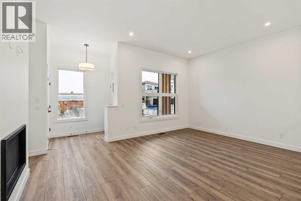 The beautiful York built by Brookfield Residential offers Bungalow living with countless upgrades throughout in the sought-after community of Seton. Featuring 3 bedrooms, 3.5 bathrooms and nearly 2,000 square feet living space over two levels, this home is the perfect fit for those looking to downsize without compromise. The bright and open main living area is designed with entertaining in mind. The soaring 10' ceilings create a bright and inviting space all year round. The expansive ~19'x12' front great room has windows overlooking the front yard and has a central gas fireplace for cozy winter nights. The gourmet kitchen has been upgraded to include a chimney hood fan, gas cooktop, and a built-in oven & microwave for added convenience to everyday living. The kitchen has a wall of pantry storage with ample space for food and appliances. A large primary suite, spanning nearly 12'x13' is complete with a large ensuite that has dual sinks, a tiled walk-in shower, soaker tub and a walk-in closet. The 2pc guest bathroom, laundry space and mud room complete the main level of this home. Upgraded iron spindle railing leads to the lower level which is fully developed and includes a large rec room, 2 bedrooms with walk-in closets and a full bathroom. The central living area is the perfect rec room and separates the two guest bedrooms. The backyard is the optimal space to capture sunshine and entertain all summer long. This beautiful brand new bungalow offers peace of mind with builder warranty + Alberta New Home Warranty. Move in this summer and start enjoying single level living in one of Calgary's most desired communities with countless amenities just steps away! (id:53676)