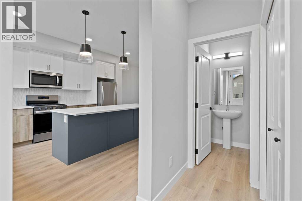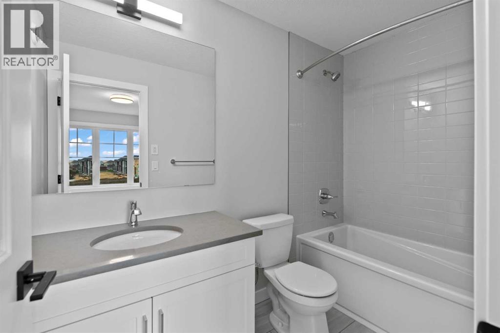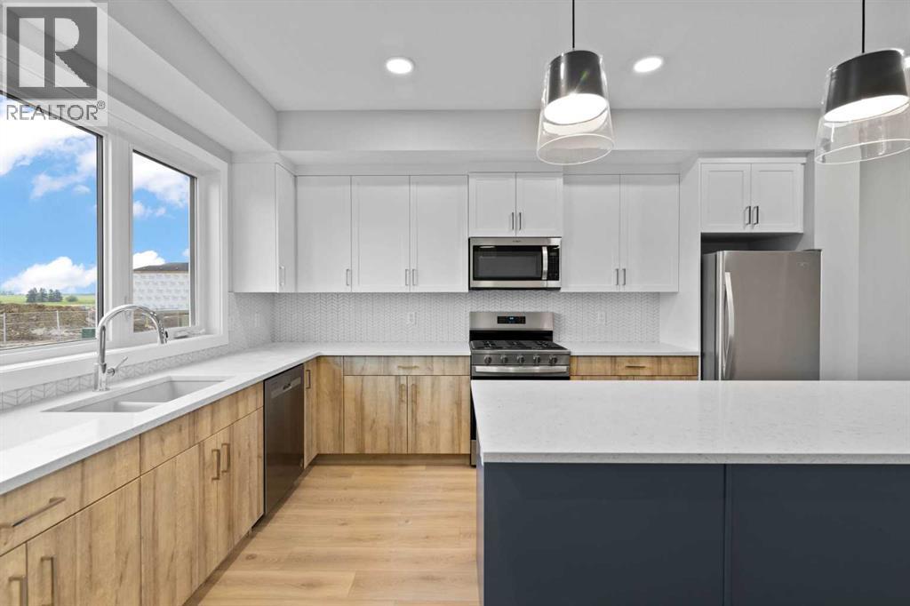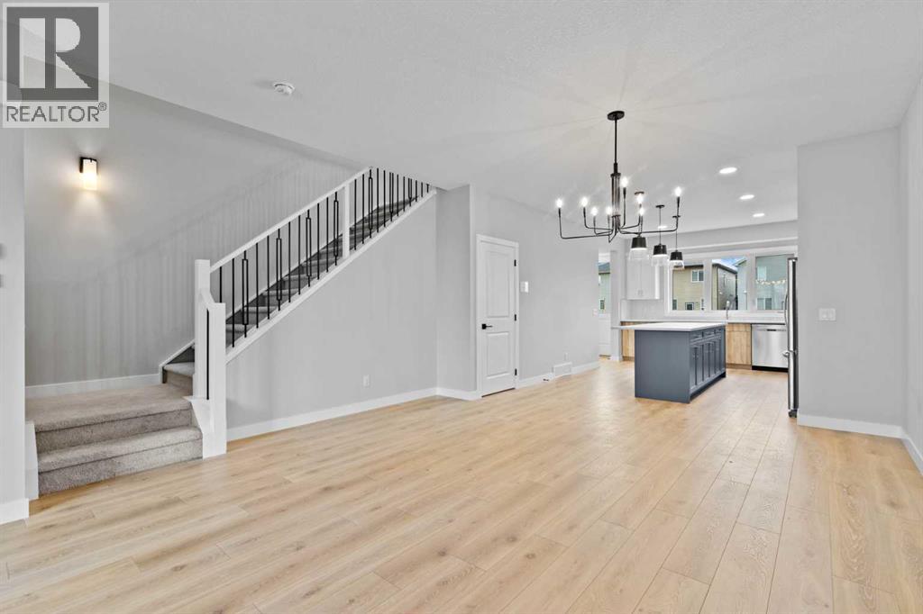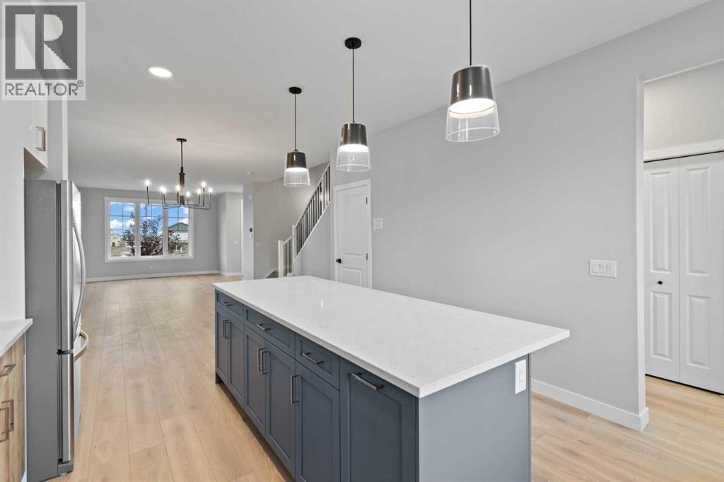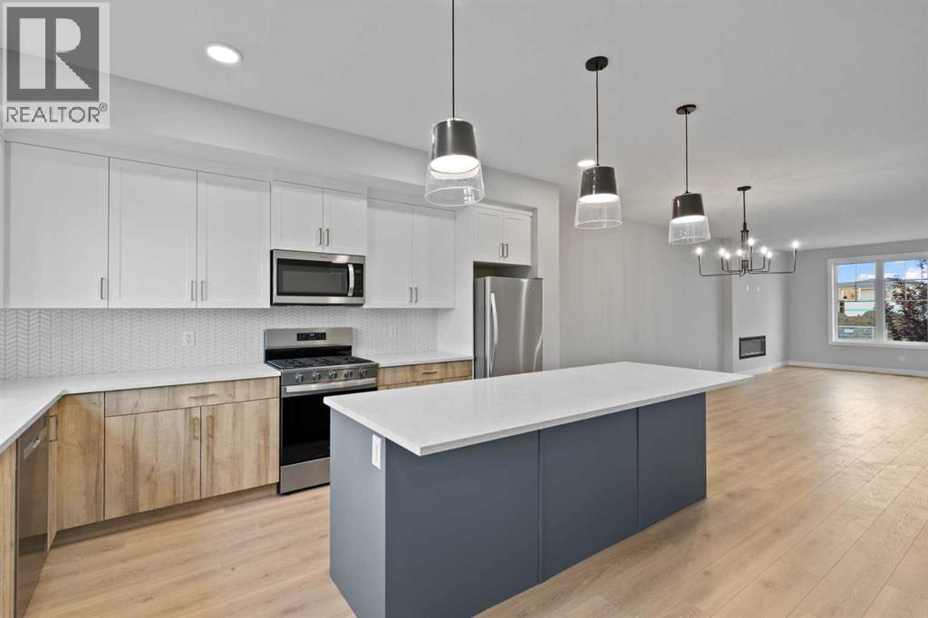 IMMEDIATE POSSESSION | 1,804 SQ.FT. | 3-BED | 2.5-BATH | SEPARATE SIDE ENTRANCE | 9' BASEMENT | UPGRADED KITCHEN | FRONT LANDSCAPING | This stylish NEW HOME by Crystal Creek Homes offers an OPEN MAIN FLOOR with 9-foot ceilings and a stunning rear kitchen designed for everyday function and entertaining. Full-height cabinets, quartz countertops, a GAS RANGE, and a large island provide plenty of space for cooking and storage. The great room, complete with an electric FIREPLACE, feels bright and welcoming. Upstairs are three bedrooms, a main bath, and an extra LARGE LAUNDRY ROOM. The primary bedroom includes a modern ensuite with thoughtful finishes. The 9' BASEMENT and separate SIDE ENTRANCE allow for future legal suite potential (subject to City approval and permitting). Set on a quiet street near a future school and soccer field, this home features durable HARDIE BOARD SIDING and quick access to Stoney Trail, East Hills shopping, and downtown Calgary. Book your showing today or visit the Crystal Creek sales centre at 272 Belvedere Drive SE, open Monday to Thursday 2–8 pm and weekends and holidays 12–5 pm. (id:53676)