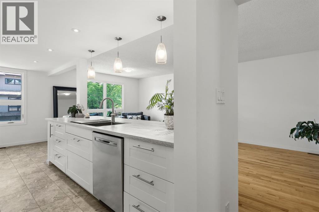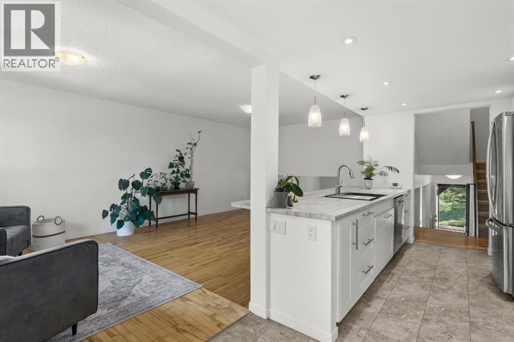 Welcome to 2 Canterbury Gardens—a beautifully updated townhouse nestled in the heart of Canyon Meadows. Offering over 2,000 square feet of well-designed and flexible living space, this home blends comfort, style and arguably unmatched functionality spread across five levels in one of the city’s most established and sought after neighbourhoods. Step inside and be immediately impressed by the bright and thoughtful renovations. The new kitchen, with its massive island, provides for an open concept living space but, the tiered architecture ensures that the integrity of the defined spaces are maintained. With four spacious bedrooms, there’s room for the whole family, guests, or a home office setup. Stay cool all summer long with central air conditioning, and enjoy the convenience of an attached garage and a private, fenced yard—ideal for pets, children, or relaxed evenings outdoors. This home is part of a well-managed strata, offering peace of mind and a sense of shared pride in ownership. And for 2000 square feet of living space, the condo fees are remarkably low.The neighbourhood itself is rich with mature trees, parks, ponds and pathway systems, its steps to Fish Creek, established schools, and everyday conveniences are just moments away. If you're looking for space, style, and a strong sense of community, 2 Canterbury Gardens is ready to welcome you home. (id:53676)