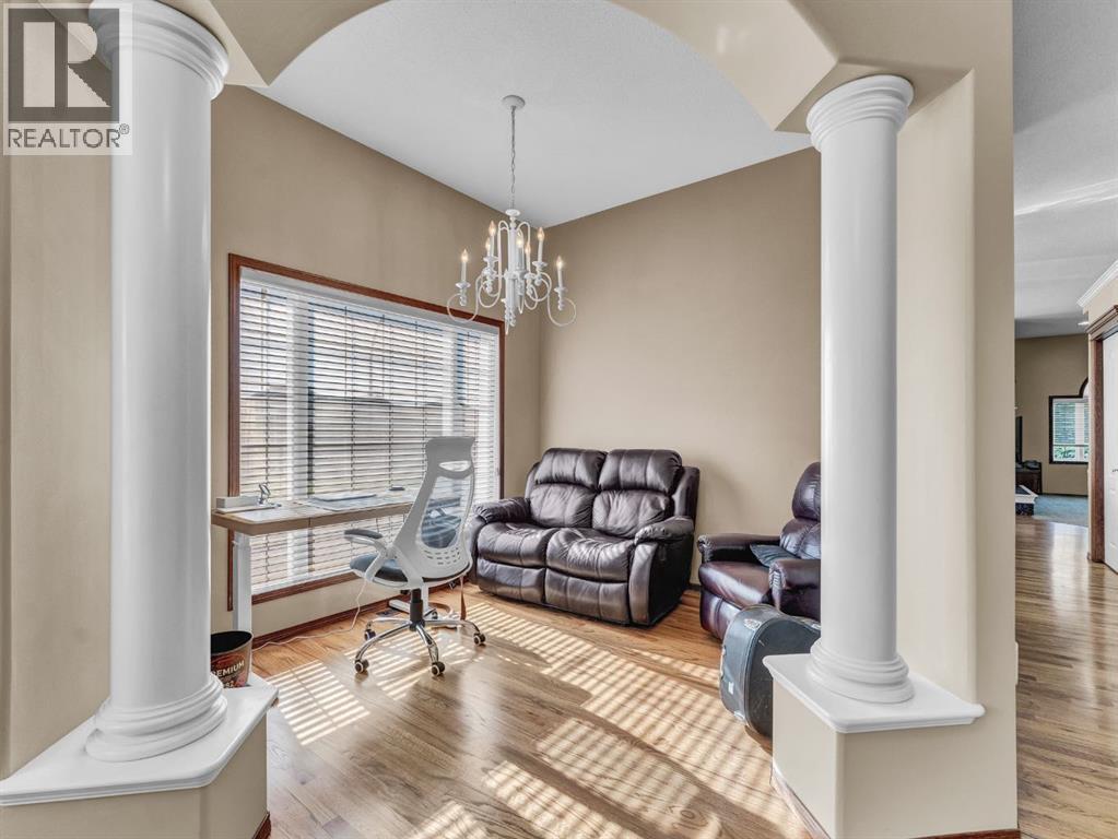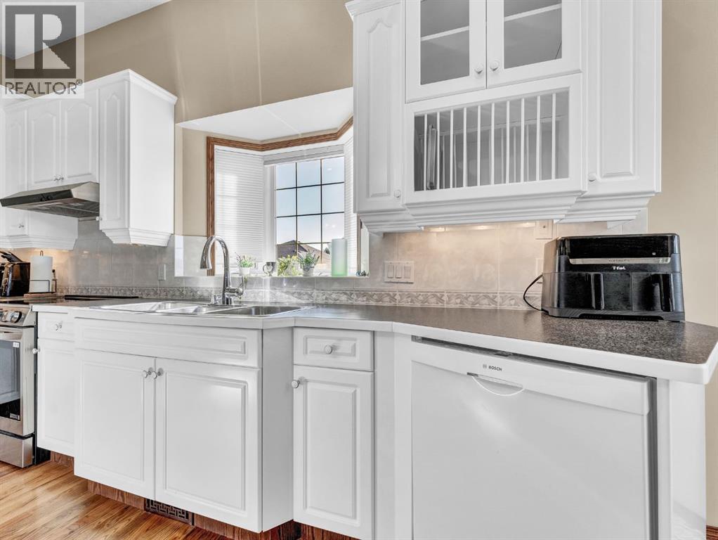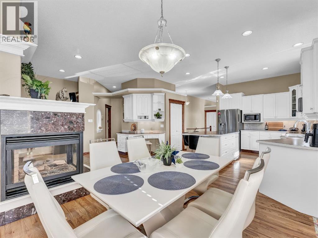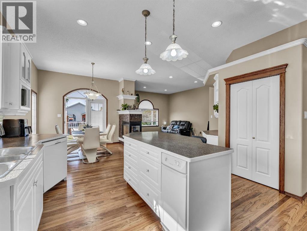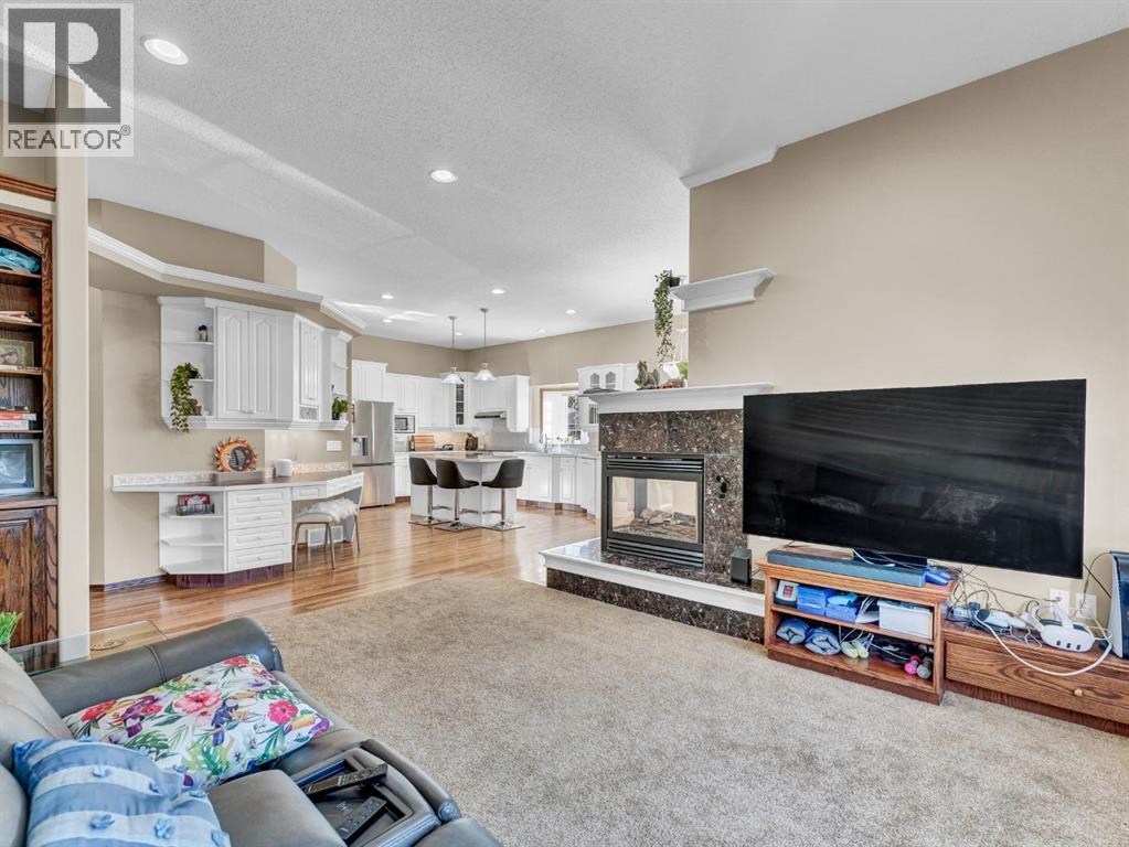 Executive Walkout Bungalow: Luxury, Light, and Limitless PossibilitiesWelcome to this stunning executive walkout bungalow—where pride of ownership shines in every detail. Step into a spacious entry filled with natural light from oversized windows, highlighting an open, inviting layout. Rich hardwood floors and 9’ ceilings set the stage for an atmosphere that’s both elegant and welcoming.Near the entrance, you’ll find two versatile bonus spaces—perfect for a home office, cozy reading nook, hobby room, or even an extra bedroom to suit your family’s needs.The bright, thoughtfully designed kitchen features an island and abundant cabinetry for all your storage needs. A striking three-sided gas fireplace serves as a charming focal point, seamlessly connecting the kitchen, dining, and living areas—ideal for entertaining or relaxing evenings at home.A practical mudroom off the main floor laundry offers extra storage, an additional fridge for hosting large gatherings, and the flexibility to convert it into the pantry of your dreams.Retreat to the peaceful primary suite with balcony access overlooking tranquil green space—your own private sanctuary. The luxurious 4-piece ensuite boasts a soaker tub and a generous walk-in closet, providing the perfect escape at the end of the day.The walkout lower level is designed for family living and entertaining, featuring a spacious family room, four generous bedrooms, and two full bathrooms—including a convenient Jack-and-Jill setup. Built-ins, ample closet space, and plenty of storage ensure a place for everything.Enjoy the outdoors with large windows and direct access to a covered patio, seamlessly extending your living space. The fully landscaped yard, complete with underground sprinklers, backs onto beautiful green space and walking paths—perfect for morning strolls or evening relaxation.Additional highlights include:Updated exterior for fresh curb appealSome new appliances for added convenience24x26 attached garageExpan sive drive-thru driveway for easy parking and guest accessOutdoor storage tucked under the back deckRecent updates: newer shingles, high-efficiency zoned furnace, hot water tank, central air conditioning, and fresh paintNestled in a quiet, established neighborhood in Medicine Hat, close to all amenities, this home blends elegance, comfort, and practicality—making it truly turn-key and ready for cherished family memories.Don’t miss your chance to make this exceptional property your forever home! Contact your REALTOR® to schedule your private showing today. (id:53676)
