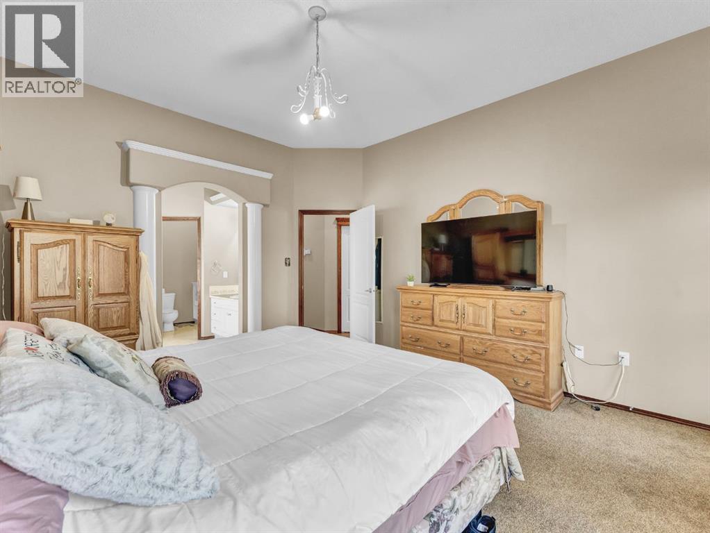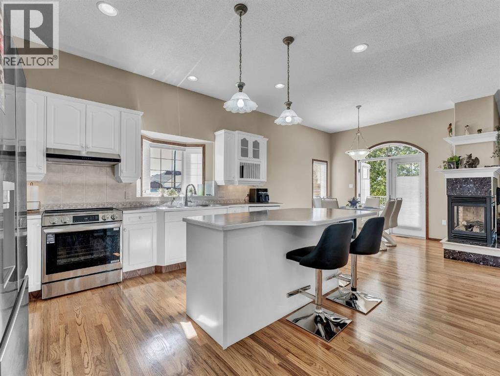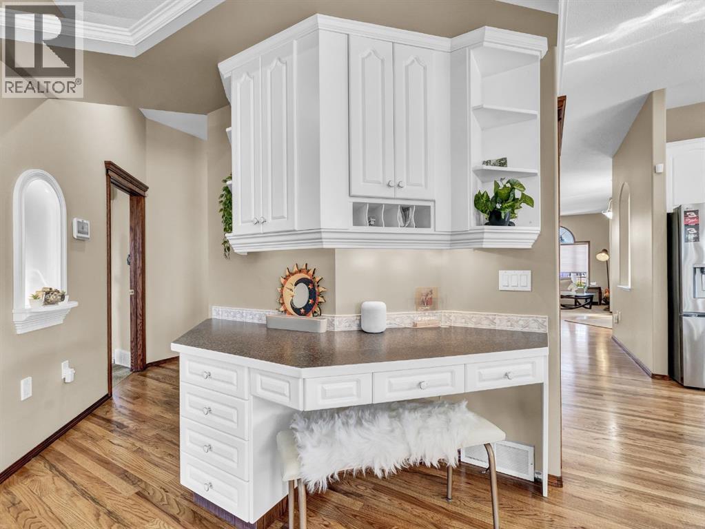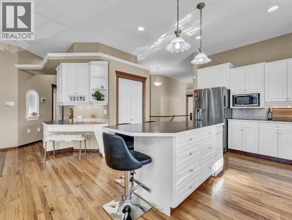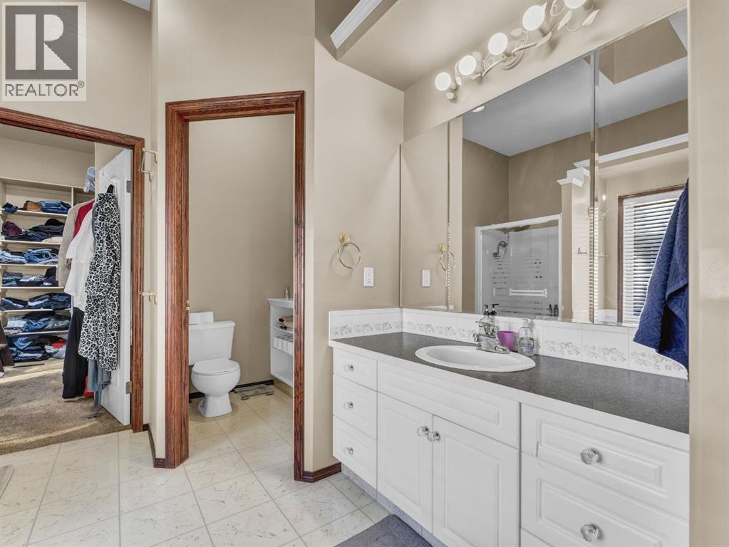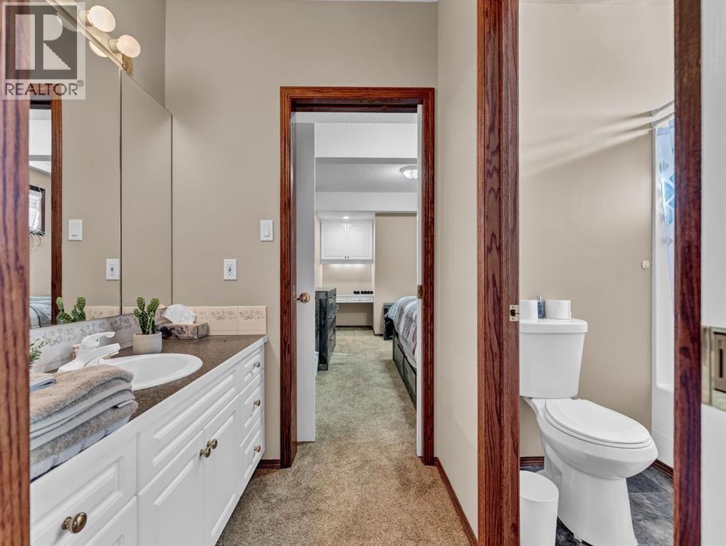 Executive Walkout Bungalow: Luxury, Light, and Limitless PossibilitiesWelcome to this stunning executive walkout bungalow—where pride of ownership shines in every detail. Step into a spacious entry filled with natural light from oversized windows, highlighting an open, inviting layout. Rich hardwood floors and 9’ ceilings set the stage for an atmosphere that’s both elegant and welcoming.Near the entrance, you’ll find two versatile bonus spaces—perfect for a home office, cozy reading nook, hobby room, or even an extra bedroom to suit your family’s needs.The bright, thoughtfully designed kitchen features an island and abundant cabinetry for all your storage needs. A striking three-sided gas fireplace serves as a charming focal point, seamlessly connecting the kitchen, dining, and living areas—ideal for entertaining or relaxing evenings at home.A practical mudroom off the main floor laundry offers extra storage, an additional fridge for hosting large gatherings, and the flexibility to convert it into the pantry of your dreams.Retreat to the peaceful primary suite with balcony access overlooking tranquil green space—your own private sanctuary. The luxurious 4-piece ensuite boasts a soaker tub and a generous walk-in closet, providing the perfect escape at the end of the day.The walkout lower level is designed for family living and entertaining, featuring a spacious family room, four generous bedrooms, and two full bathrooms—including a convenient Jack-and-Jill setup. Built-ins, ample closet space, and plenty of storage ensure a place for everything.Enjoy the outdoors with large windows and direct access to a covered patio, seamlessly extending your living space. The fully landscaped yard, complete with underground sprinklers, backs onto beautiful green space and walking paths—perfect for morning strolls or evening relaxation.Additional highlights include:Updated exterior for fresh curb appealSome new appliances for added convenience24x26 attached garageExpan sive drive-thru driveway for easy parking and guest accessOutdoor storage tucked under the back deckRecent updates: newer shingles, high-efficiency zoned furnace, hot water tank, central air conditioning, and fresh paintNestled in a quiet, established neighborhood in Medicine Hat, close to all amenities, this home blends elegance, comfort, and practicality—making it truly turn-key and ready for cherished family memories.Don’t miss your chance to make this exceptional property your forever home! Contact your REALTOR® to schedule your private showing today. (id:53676)