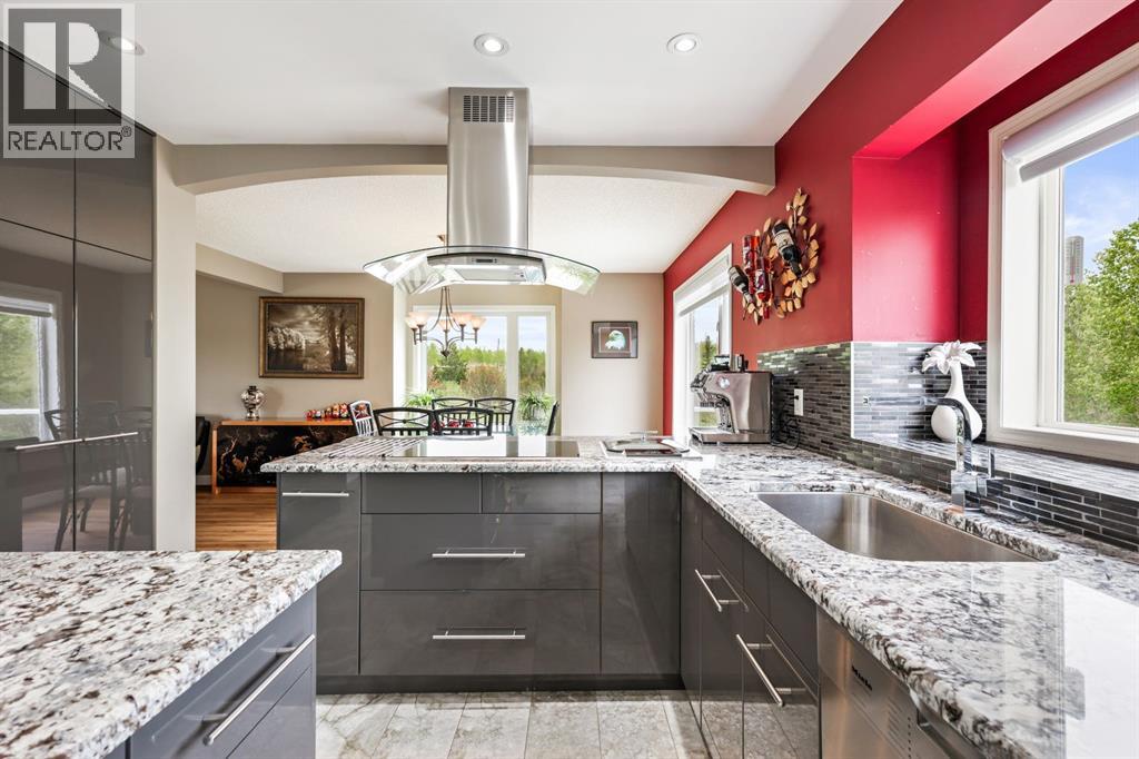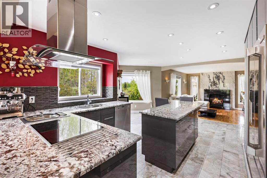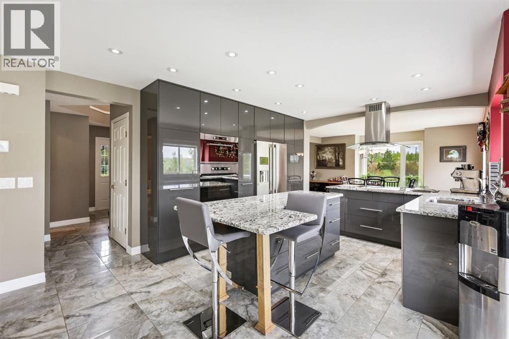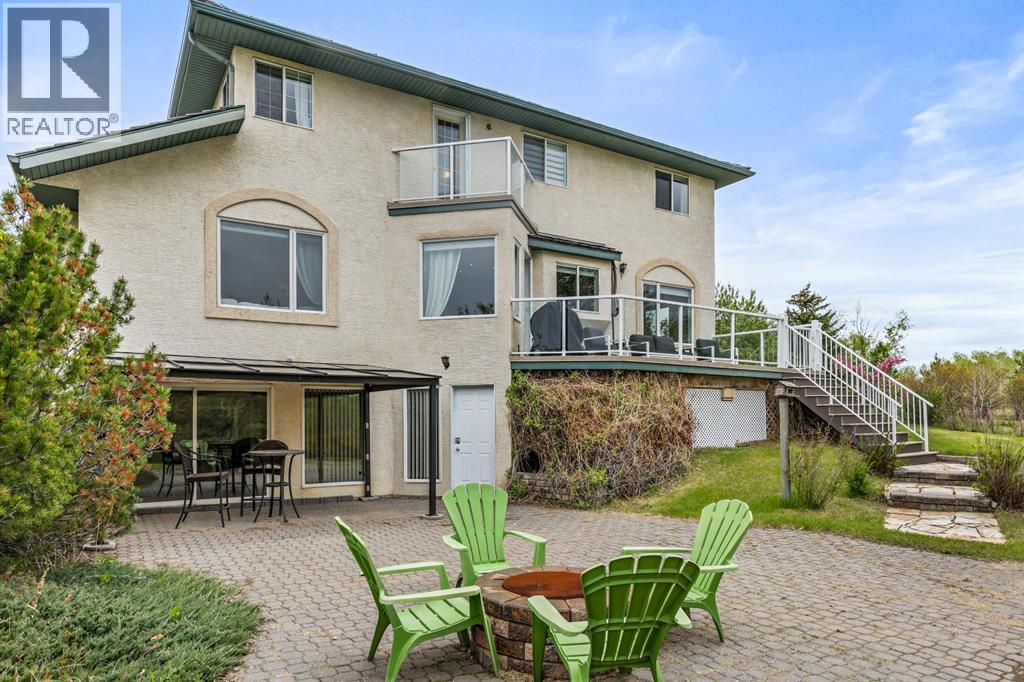 Discover the perfect blend of luxurious country living and city convenience with this exceptional two storey walkout home with over 2830 square feet of livable space, nestled on 5 immaculate acres just 5 minutes from Calgary’s southern city limits, a truly rare opportunity.Thoughtfully designed for both everyday living and upscale entertaining, the home features a sunlit, modern gourmet kitchen with stylish cabinetry a spacious dining nook, granite countertops, stove, drop down hood fan, and dishwasher. Host in style in the elegant formal living and dining rooms, or relax in the cozy family room, complete with rich high quality vinyl plank floors and a gas fireplace.Escape to the luxurious master retreat, where a spa-inspired ensuite with a jacuzzi tub, heated floor, walk-in closet, and private balcony awaits, all overlooking your expansive estate.The fully developed walkout lower level offers incredible flexibility, perfect for an entertainment haven, guest suite, or private space for extended family. Recent upgrades include fresh paint, new vinyl plank flooring, modern light fixtures, and stylish window coverings throughout.Enjoy year-round comfort with premium features such as in-floor heating on the lower level, dual hot water tanks, a water softener, water filtration system, and built-in Vacuum system.Outdoors, the beauty continues with professional landscaping that includes stamped concrete front porch, rock gardens, winding brick pathways, and a tranquil seasonal pond. The south-facing backyard fills the home with natural light, while the stucco exterior and durable shake roof offer long lasting peace of mind.The entire property is fully fenced with a gated entrance and includes a separate pasture — ideal for horses or pets. A 1,410 sq/ft insulated shop with bright halogen lighting, a large overhead door, 220V power, and an oversized double attached garage add even more functionality for hobbies, business, or storage.All the upgrades are compl ete — just move in and embrace your dream rural lifestyle, with all the convenience of the city just minutes away. (id:53676)