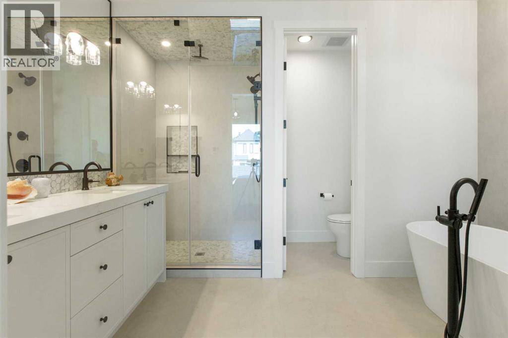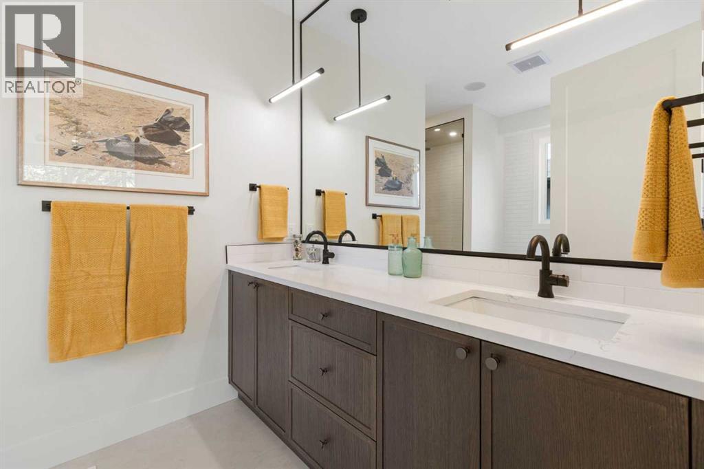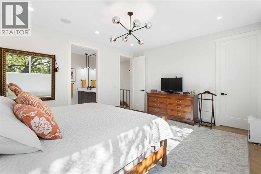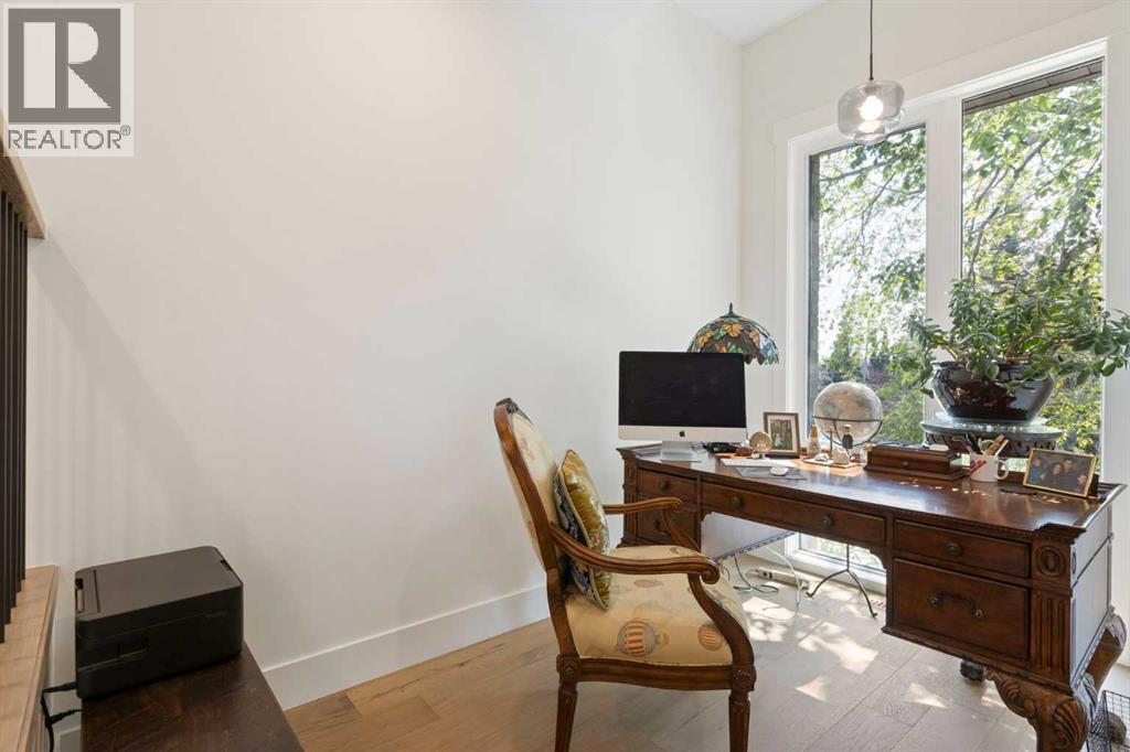OPEN HOUSE - SAT - SEP 27, 2-4 PM -Tucked into one of Altadore’s most established tree-lined streets, this modern, four-level residence delivers a rare combination: refined design, spatial flexibility, and thoughtful separation of private and shared spaces—ideal for growing families with teens or multigenerational needs. Clean architectural lines, a low-maintenance exterior, and a brick-framed entry hint at the interior’s elevated material palette and intentional flow. Inside, the main level opens into a bright, linear layout anchored by a sculptural quartz island, ceiling-height custom millwork, and professional-grade appliances, perfect for weekday function or weekend entertaining. Oversized sliding doors connect the interior seamlessly to a private backyard, while warm oak tones and minimalist detailing carry throughout. Up one level, the second floor offers two well-separated bedrooms, a charming open library or study nook, and a fully equipped laundry room with brand new washer and dryer. This layout creates just the right balance of privacy and proximity for teens or visiting family. The third floor is a true architectural moment—a full-floor owner's suite with a private terrace with stunning views, wet bar, and a luxuriously understated ensuite featuring a glass-enclosed steam shower, freestanding tub, radiant in-floor heat, and daylit walk-in closet. The separation from the other bedrooms gives this level a rare sense of retreat. The fully developed lower level includes a fourth bedroom with walk-in closet, a full bath, home gym or office space, and a flexible media room with integrated wet bar—ideal for movie nights, gaming, or hosting. Additional highlights include roughed in A/C, a finished, insulated double garage, and excellent walkability to River Park, local schools, Marda Loop amenities, transit routes, and off-leash trails. Commuting downtown is a breeze, and weekend escapes west are equally accessible. This is not just another new build—it’s a ho me that understands family rhythms, honors personal space, and elevates the way you live, gather, and grow. (id:53676)