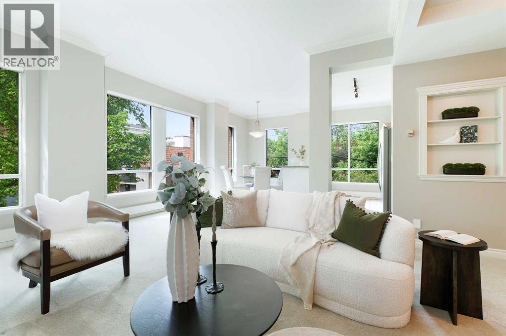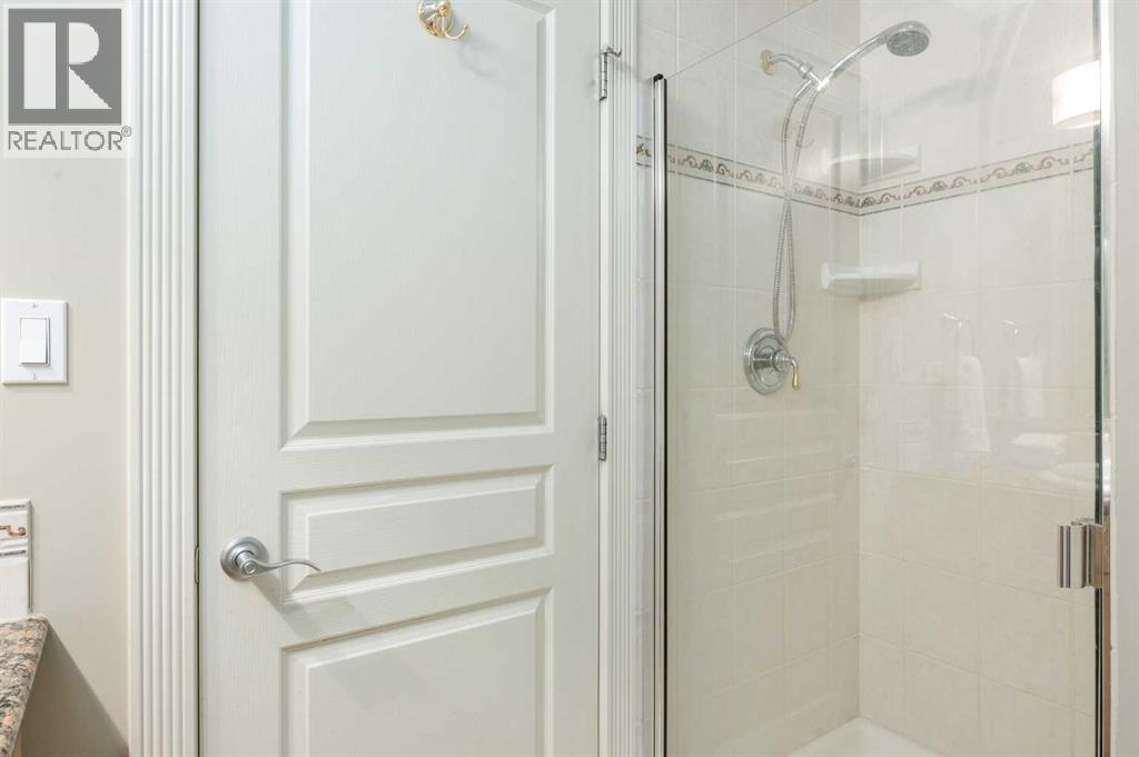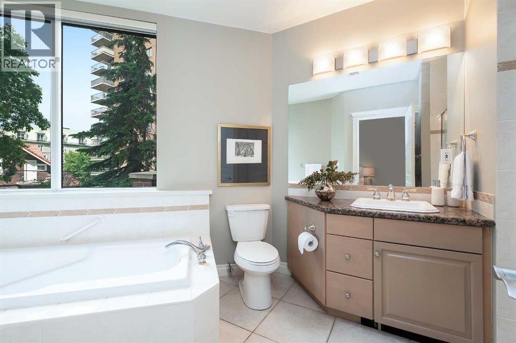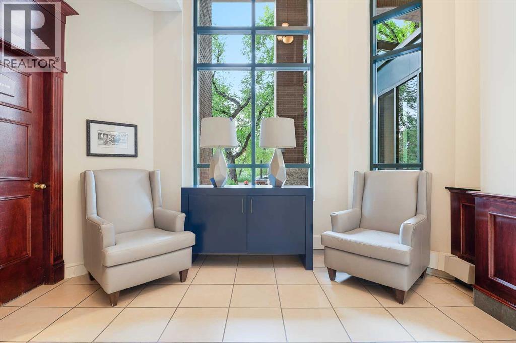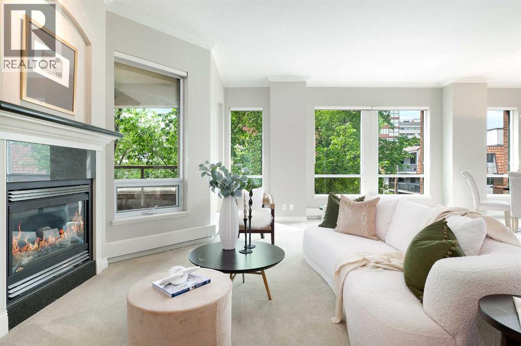Bright & spacious 2 bedroom, 2 bath corner unit in the prestigious Grandview building, offering partial river views & nearly 1300 sq ft of living space! The open, airy plan with 10’ ceilings is perfect for entertaining & presents a living room anchored by a feature fireplace, casual dining area & kitchen that’s tastefully finished with granite counter tops & plenty of storage space. The primary bedroom features a large walk-in closet & private 4 piece ensuite with relaxing soaker tub & separate shower. The second bedroom (or den) & 3 piece bath are ideal for guests. Other notable features include convenient in-suite laundry, private balcony with river views, one assigned parking stall & one assigned storage locker. The Grandview also provides superb amenities including a party room with full kitchen & outdoor courtyard with BBQ’s – both are great for hosting larger gatherings. Other amenities comprise of 24/7 concierge service, 2 guest suites, visitor parking & car wash. The location is incredibly convenient, steps from Elbow River pathways, walking distance to 4th Street shops, restaurants & cafes & close to MNP Community & Sport Centre, Stampede Park, schools, shopping, public transit & walking distance to downtown. (id:53676)